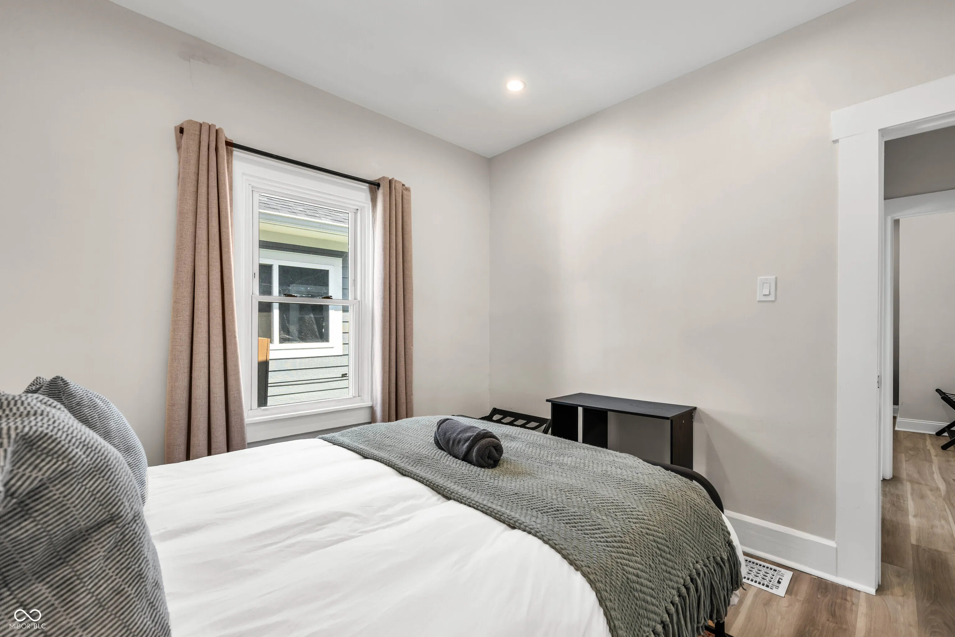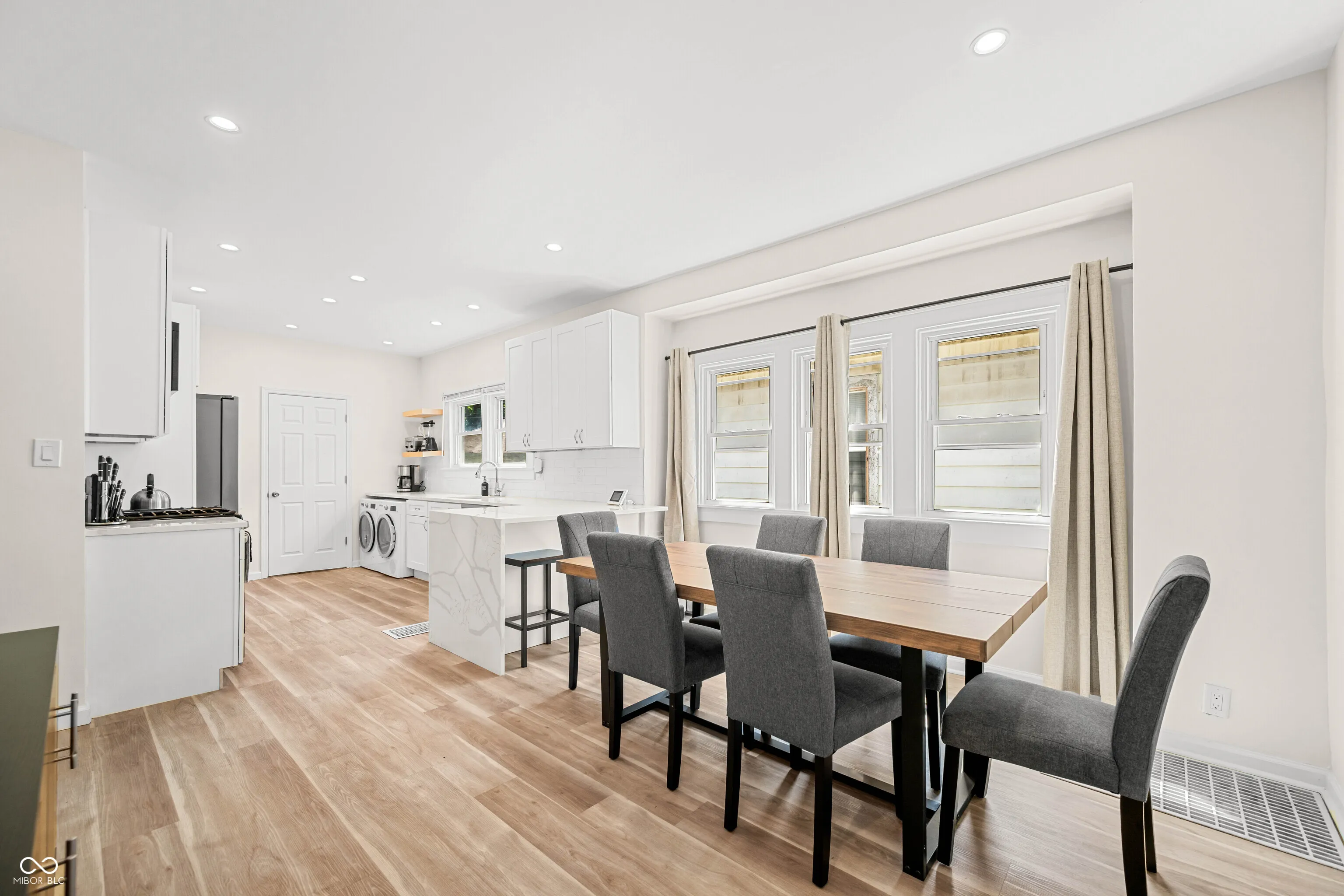 1215 N Warman AVE, INDIANAPOLIS, IN, this single-family residence presents an attractive property in great condition, ready to welcome you. The heart of this home resides in its beautifully appointed kitchen; imagine creating culinary masterpieces surrounded by the elegant shaker cabinets and sleek stone countertops, complete with a stylish backsplash and a convenient kitchen peninsula. The property features a charming porch, perfect for enjoying the residential area, while the fenced backyard offers privacy and space for outdoor activities, complemented by a delightful deck. With three bedrooms and one full bathroom within its 1190 square feet of living area, this single-story home, built in 1920 on a 4182 square feet lot, offers a comfortable and inviting living experience. Being currently used as a mid term rental, this residence represents a unique opportunity to own a piece of Indianapolis history, updated for modern living. Furnishings negotiable