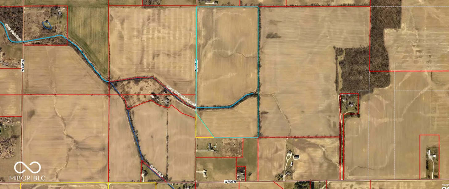 40 acre agricultural parcel in rural Henry County, Indiana. Located on CR 400 W just north of CR 400 N on east side of road.( Nearest address is 4092 N CR 400 W for GPS reference.) Property ends on the south before the modular home. Listing includes a 39 acre parcel and a 1.1875 parcel located at the southwest corner to encompass 40 acres. Currently in beans. Farmer reserves harvest. Honey Creek West Branch does run through the property. Located near Middletown, Sulphur Springs, Indiana. Easy commute to New Castle, Muncie, Anderson. See remarks.