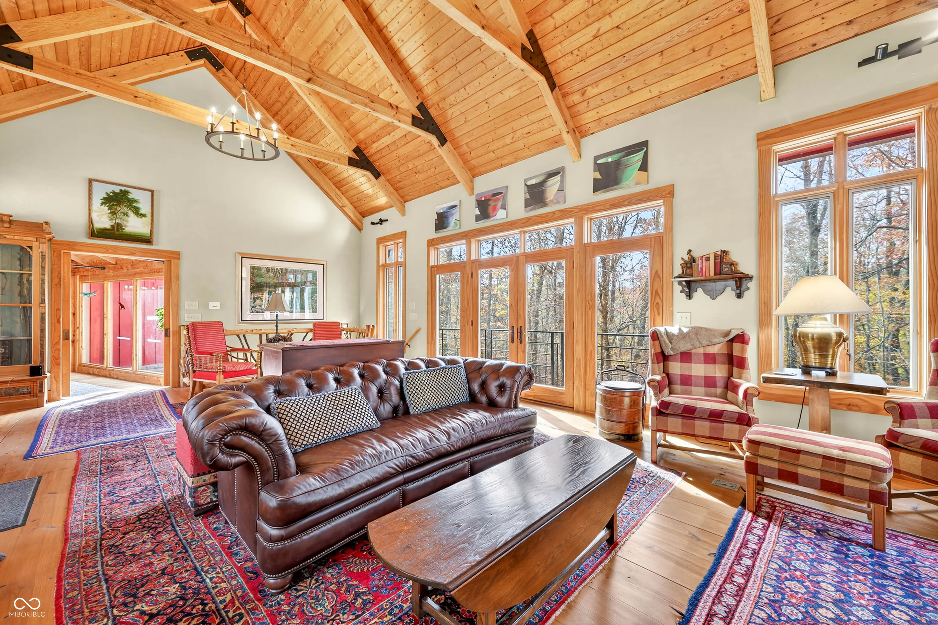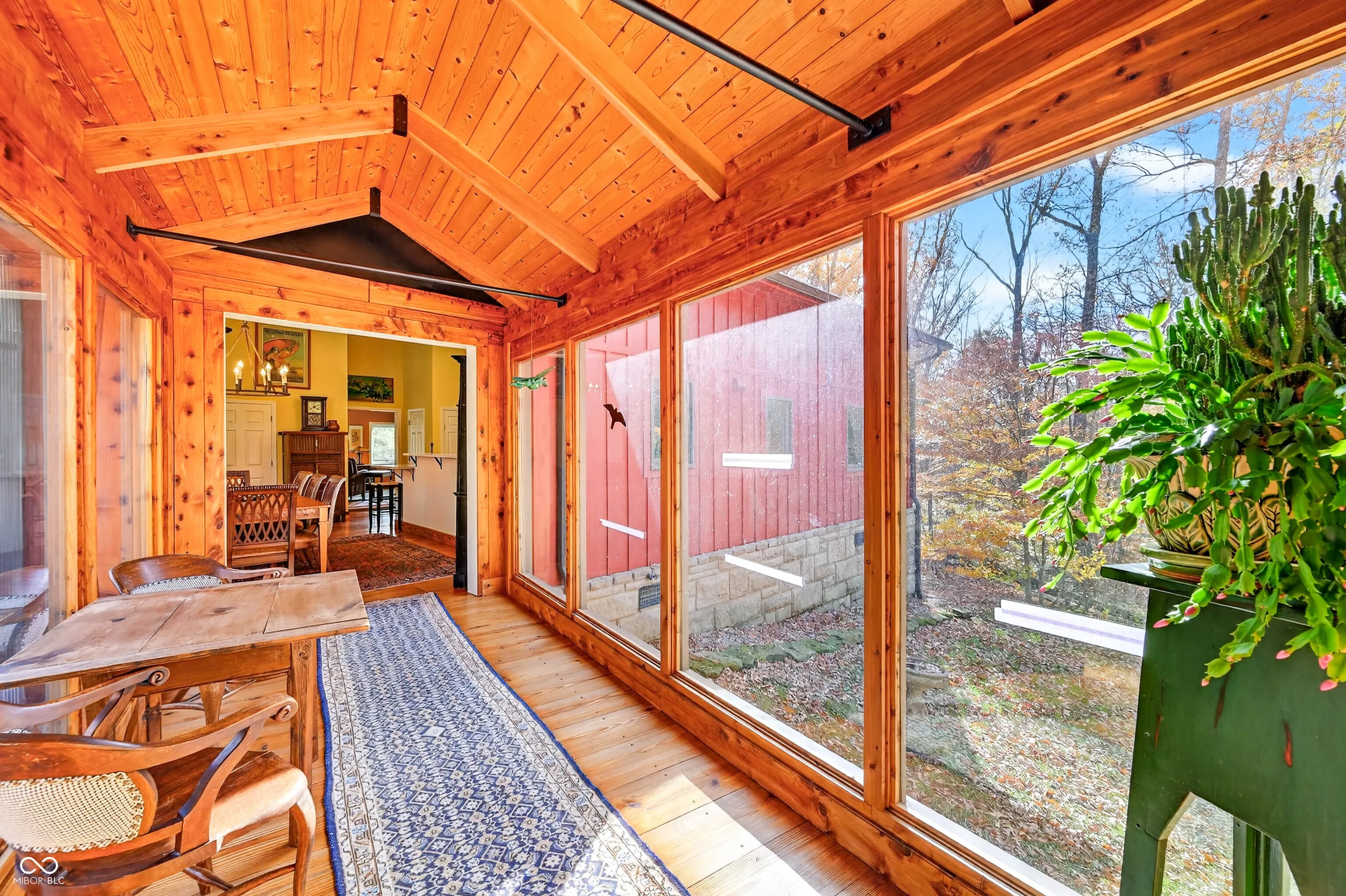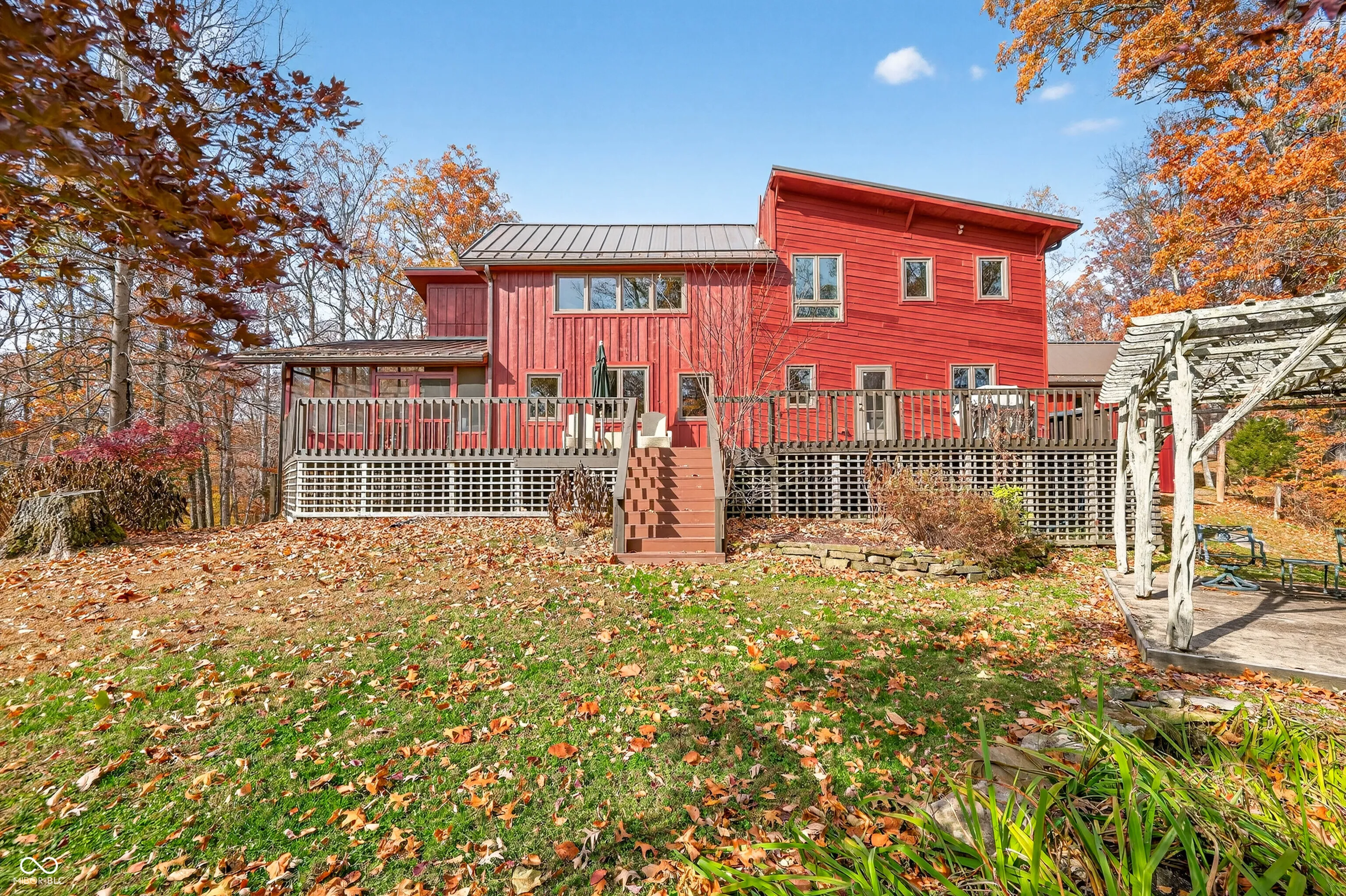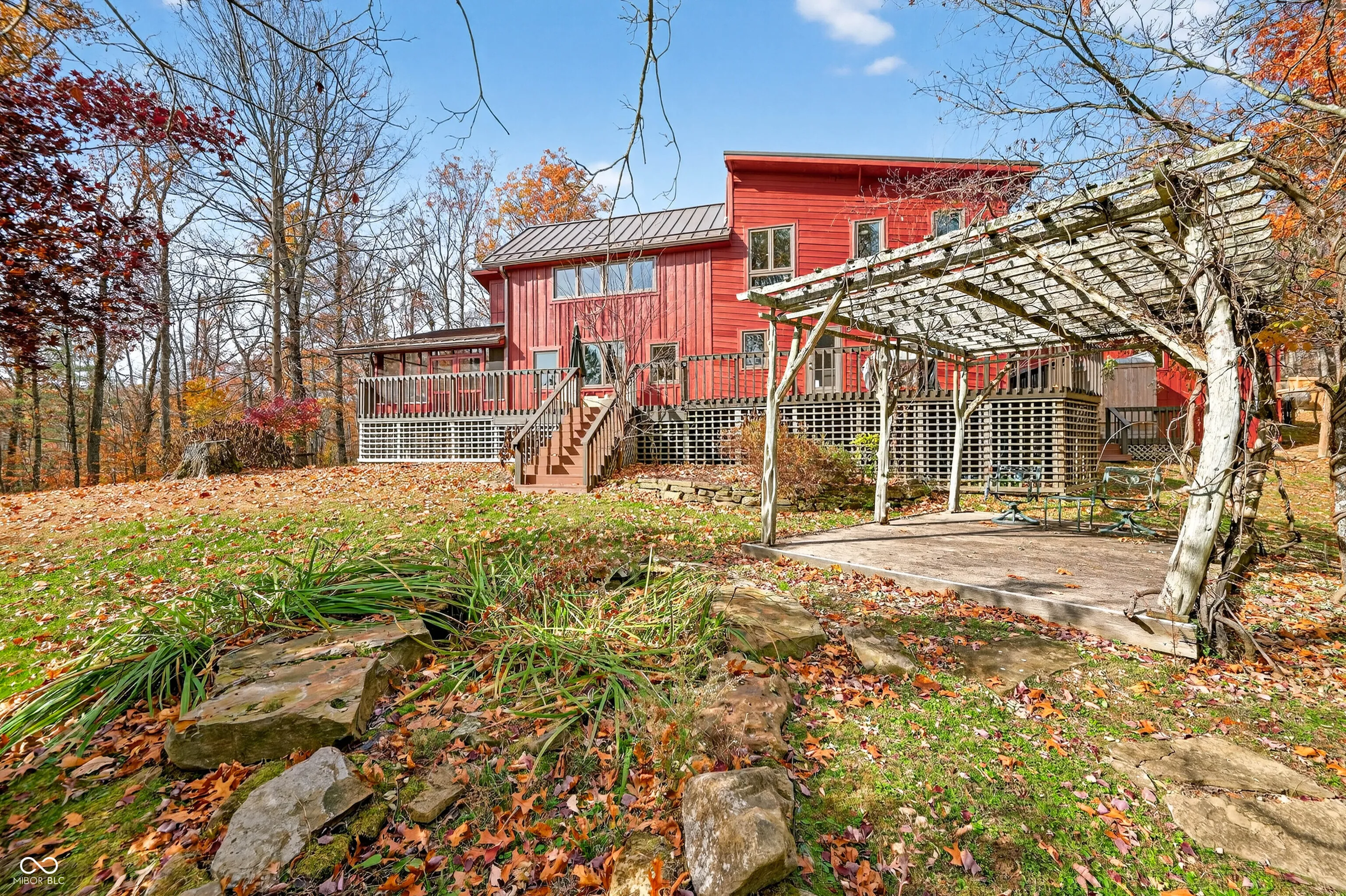 Southern Brown County at its finest! A long winding driveway meanders through Hoosier National Forest opening up to this beautiful, spacious, and rustic charmer. The front door enters into the great room with wide-plank pine floors and stone fireplace. A separate living room with access to a large, screened porch and wraparound deck offer spaces for gatherings. 4 bedrooms and 4 full baths provide room for everyone to have their own private retreats. Rooms are easily adaptable for multiple uses with a murphy bed in one, and direct access to a deck from two of them. The home could easily be 5-6 bedrooms. The lower-level walkout suite has a soaking tub with a large window looking out into the forest. There’s an abundance of storage throughout the home. This home has been thoughtfully updated with high-quality materials, professional installations, and long-term warranties-creating a home that is exceptionally low-maintenance and built for lasting comfort. Some of the recent upscale improvements include a standing-seam metal roof by Amish Roofers (2022) with a lifetime warranty, RhinoSheild Lifetime exterior paint in October 2025 with 20 year workmanship transferable warranty. Renewal by Anderson replacement windows in September of 2025 with 20 year warranty. There’s an outdoor hot water shower just off the wraparound deck on the backside of the detached 2-C garage and a concrete patio with pergola. This property is close to historic Story, IN, Browning Mountain, Brown County State Park and so much more for outdoor enthusiasts. This property meets the distance requirements for tourist rental use subject to zoning approval.