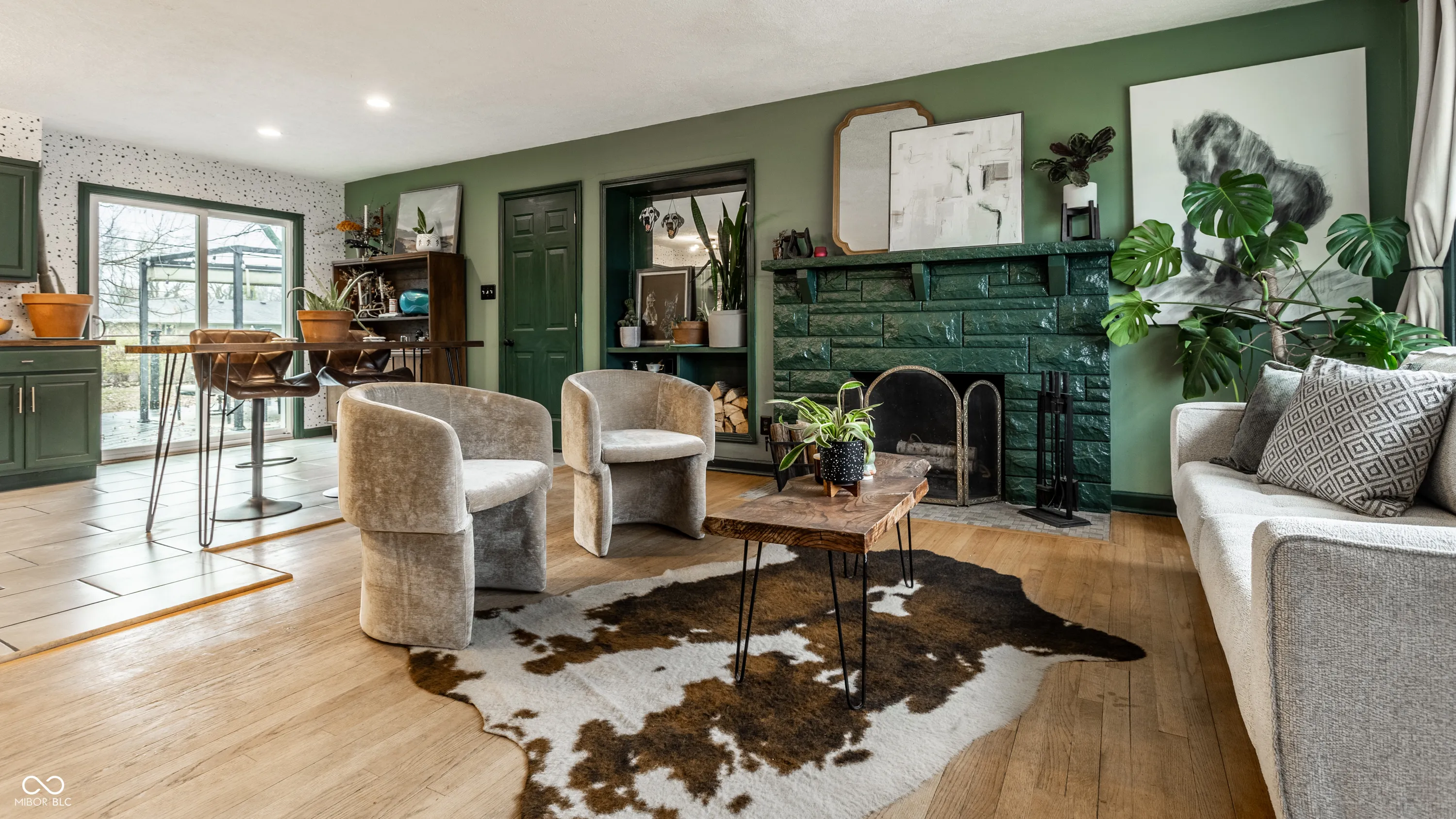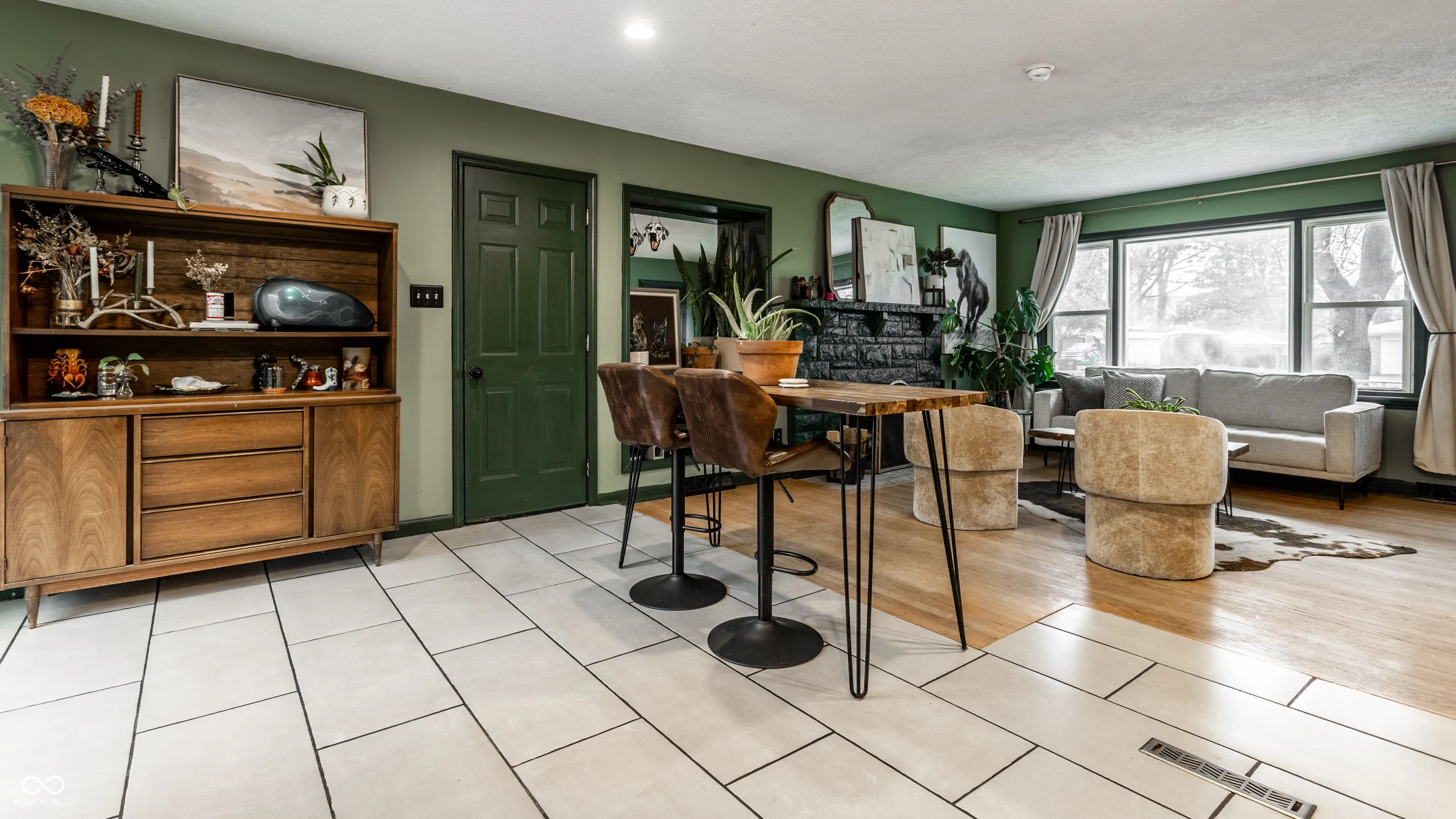 Welcome to your new home! Over 8 years of love has been poured into making this Mid Century Modest Ranch into a cozy paradise. You won’t find boring white or millennial grey here, but you will find 3 bedroom, 1 bathroom, and an open floor plan on hardwood floors, seamlessly opening up to a large deck and (fully fenced) back yard, perfect for entertaining- think of the winter dinner parties around the fireplace and fun summer deck parties that await! From the generously sized primary bedroom, to the cozy 3rd bedroom, currently utilized as a home bar, that could also make a wonderful office, or nursery, or be easily converted back to a bedroom with the addition of a closet door, this home is full of color and charm. Rest easy- the roof and HVAC were replaced in 2024 for your peace of mind. A 2 car HEATED garage awaits you for winter projects, a toasty place to exercise, or do laundry. Large mature trees bring shade and color throughout the seasons, easy access to 465 makes everything within a short drive. Enjoy all the nature that Fort Benjamin Harrison has to offer, and then be downtown for dinner in 20 minutes.