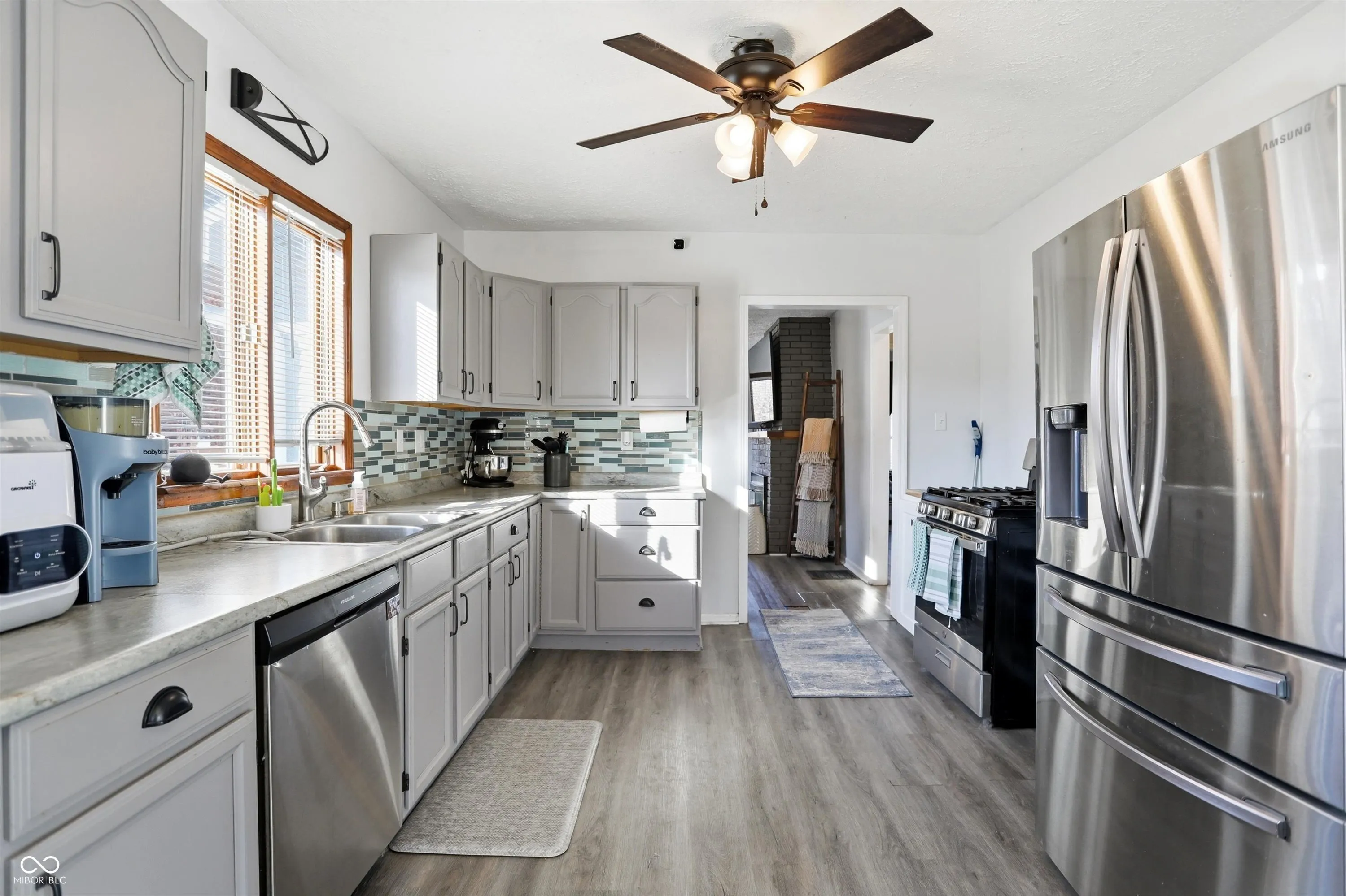 Nestled in a residential area of Indianapolis, this updated bungalow offers an inviting home, ready for you to move in. Imagine evenings spent in the living room, the fireplace casting a warm glow across the space, creating a cozy atmosphere for relaxation and reflection. The beautiful and large kitchen with new shaker cabinets and stainless steel appliances provide both style and functionality, complemented beautifully by the backsplash, which adds a touch of elegance to the heart of the home. The dry basement has large laundry area and a room for a third bedroom, home office or storage. HVAC has been updated. The fenced backyard offers a private oasis for outdoor enjoyment, complete with a patio and an outdoor dining area, which is perfectly suited for entertaining or simply savoring peaceful moments in the fresh air. Extra parking next to the garage for additional cars. With over 1200 square feet of total space, on a large lot, this beautiful home awaits your personal touch. Close to plenty of restaurants and great retail shopping and just minutes from downtown.