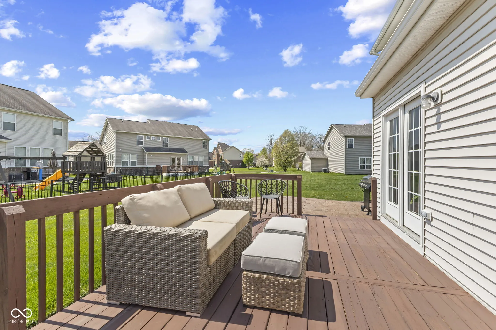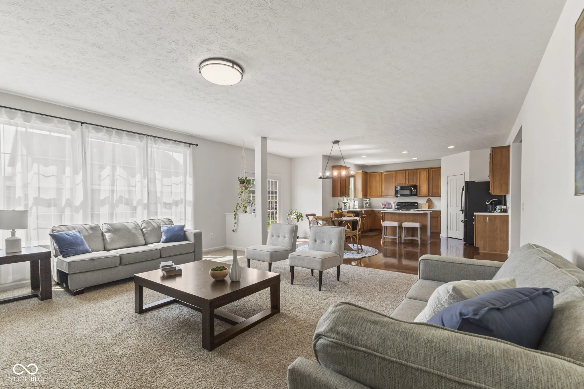 This beautifully updated 5 bedroom home with a basement offers the perfect balance of space, comfort, and modern living in one of Hendricks County’s most desirable communities. From the moment you step inside, you will notice the fresh interior paint, brand new carpet, and rich engineered hardwood floors that give the home a clean, updated feel. Full Home Warranty The open concept design creates a seamless flow between the kitchen and living areas, making everyday living and entertaining effortless. The kitchen is truly the heart of the home, featuring classic shaker cabinets, a large center island, and generous countertop space for cooking, entertaining, and gathering. It opens directly to the inviting living room where a cozy fireplace creates the perfect setting for relaxing evenings or hosting family and friends. This home offers flexibility with five spacious bedrooms, including a main level bedroom that works perfectly as a guest room, home office, or private retreat. Upstairs, the primary suite provides a peaceful escape with a tray ceiling, walk in closet, and a private ensuite bath featuring double vanities and a tiled walk in shower. The conveniently located upper level laundry room makes everyday routines even easier. The basement adds valuable additional living space and storage, giving buyers flexibility for a future recreation room, home gym, media space, or hobby area. Step outside and enjoy the outdoor living spaces featuring a deck and large concrete patio, perfect for summer cookouts, relaxing evenings, and entertaining guests. The backyard sits on a generous 11,761 square foot lot, offering plenty of room for pets, play, and outdoor enjoyment. Residents of this neighborhood also enjoy access to a community pool, creating the perfect place to cool off during Indiana summers and connect with neighbors. Oversized garage. This home offers convenient access to Downtown Indianapolis, I-465, Avon, Indianapolis International Airport