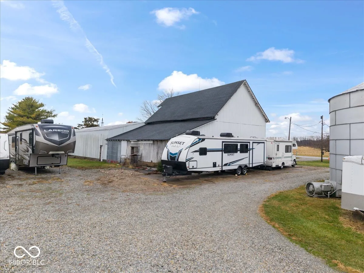 Discover the charm of this 4-bedroom farmhouse-a true diamond in the rough with incredible potential for the right buyer. Full of character and classic details, this home is ready for someone with vision to bring it back to life. With a prime Hamilton County location on 10 acres and several outbuildings and storage areas, this is the perfect canvas for restoration, renovation, or a full custom transformation. Inside, you’ll find spacious rooms, original features, and natural light throughout, offering countless opportunities to reimagine the layout or preserve its vintage appeal. While the home needs some TLC, its timeless farmhouse style and generous footprint make it well worth the investment. Property is features a 10 acre lot with nearly 7 acres of tillable ground, a large 76×48 pole barn with electricity, 48×41 livestock barn with stalls & electricity with attached 73×30 lean-to, 5 empty grain bins, a detached 1 car garage with 2 car attached garage to the home and an additional storage shed all with newly installed shingle roofs. Set on a peaceful rural lot, the property provides room to grow-gardens, outdoor living spaces, hobby farming, or future additions. Whether you’re dreaming of a cozy countryside retreat or a project with big upside, the possibilities here are truly endless.