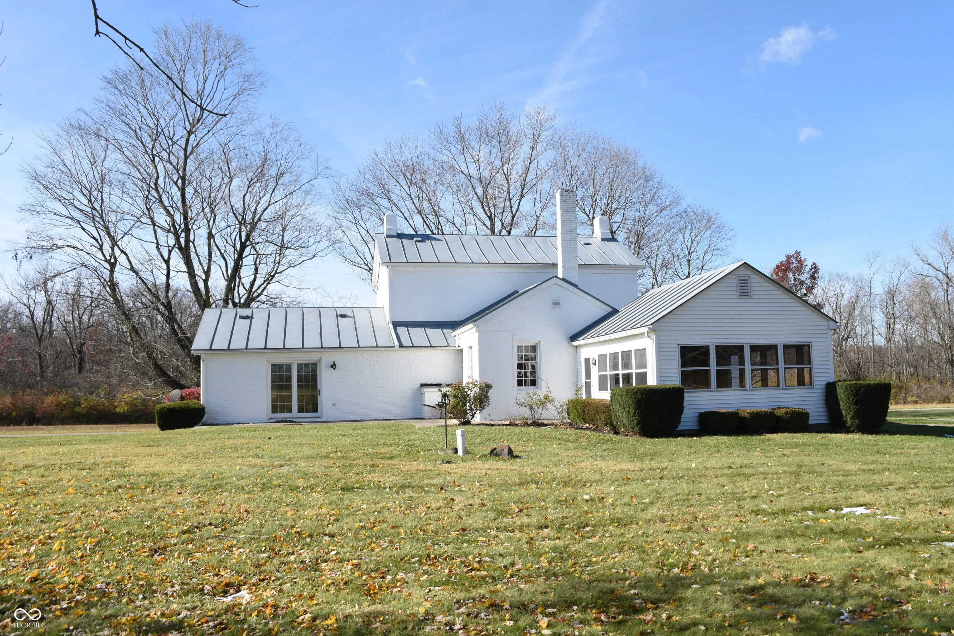 Historic home masterfully constructed in 1860 from local farm timbers with over 41 acres of scenic land including woods, pastures, and private Mississinewa river access equal to over 2000 feet of riverfront. Up to half of the property is wooded and adjacent to the river and part of the south parcel crosses the river. The property includes outbuildings including a barn and oversized 4 car garage. Inside, the home features high ceilings, original hardwood floors, built-in presses, and multiple fireplaces along with a wood-burning stove. A newly installed electric HVAC system provides modern comfort. The layout includes a spiral staircase leading to the second level, where you’ll find large bedrooms and a spacious walk-in closet. Additional highlights include a library, a large glass enclosed porch and a generous laundry/mud room. Combining historic character with farm living, this property offers ample living space indoors and out in a lovely private setting. Amazing use as farm, equestrian, or recreation property.