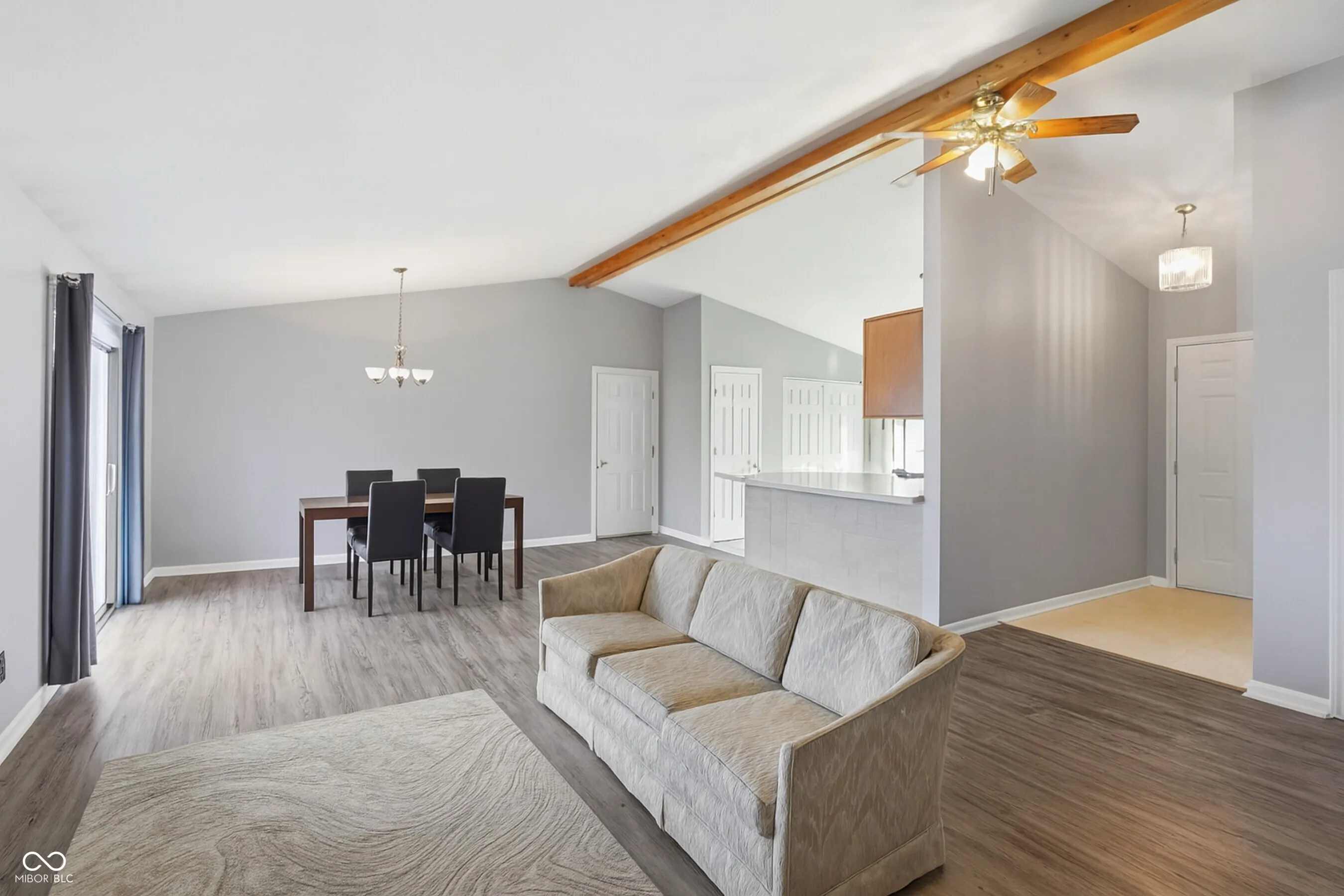 MUST SEE beautifully maintained 3-bedroom, 2-bath brick ranch in the desirable Division Estates neighborhood with NO HOA! Situated on a spacious 0.61-acre cul-de-sac lot, with a privacy fence and no neighbors in back. This 1,577 sq ft Brick Ranch home offers a peaceful setting with modern comfort and convenient access to US 31. The spacious open concept living and dining area features vaulted ceilings and a stunning centerpiece gas log fireplace with brick masonry. There is abundant natural light and luxury vinyl hardwood floors creating a warm and welcoming atmosphere. The spacious eat-in kitchen includes a pantry, breakfast bar, ample cabinet space, Energy Star appliances and convenient laundry with washer and dryer included. The large primary bedroom also boasts two walk-in closets, en suite bathroom with linen closet, as well as a tub/shower combo. Step outside to enjoy the covered front porch, a large back deck, full privacy fence with no neighbors in sight, and a charming outdoor fire pit perfect for relaxing or entertaining. A large 2 car attached garage provides generous parking and storage options. This move-in ready home is the perfect blend of modern convenience while maintaining a rural feel with nearly 2/3 of an acre, NO HOA, and a privacy fenced in backyard with no neighbors in sight! Schedule your showing today for the chance to make this HOME yours!