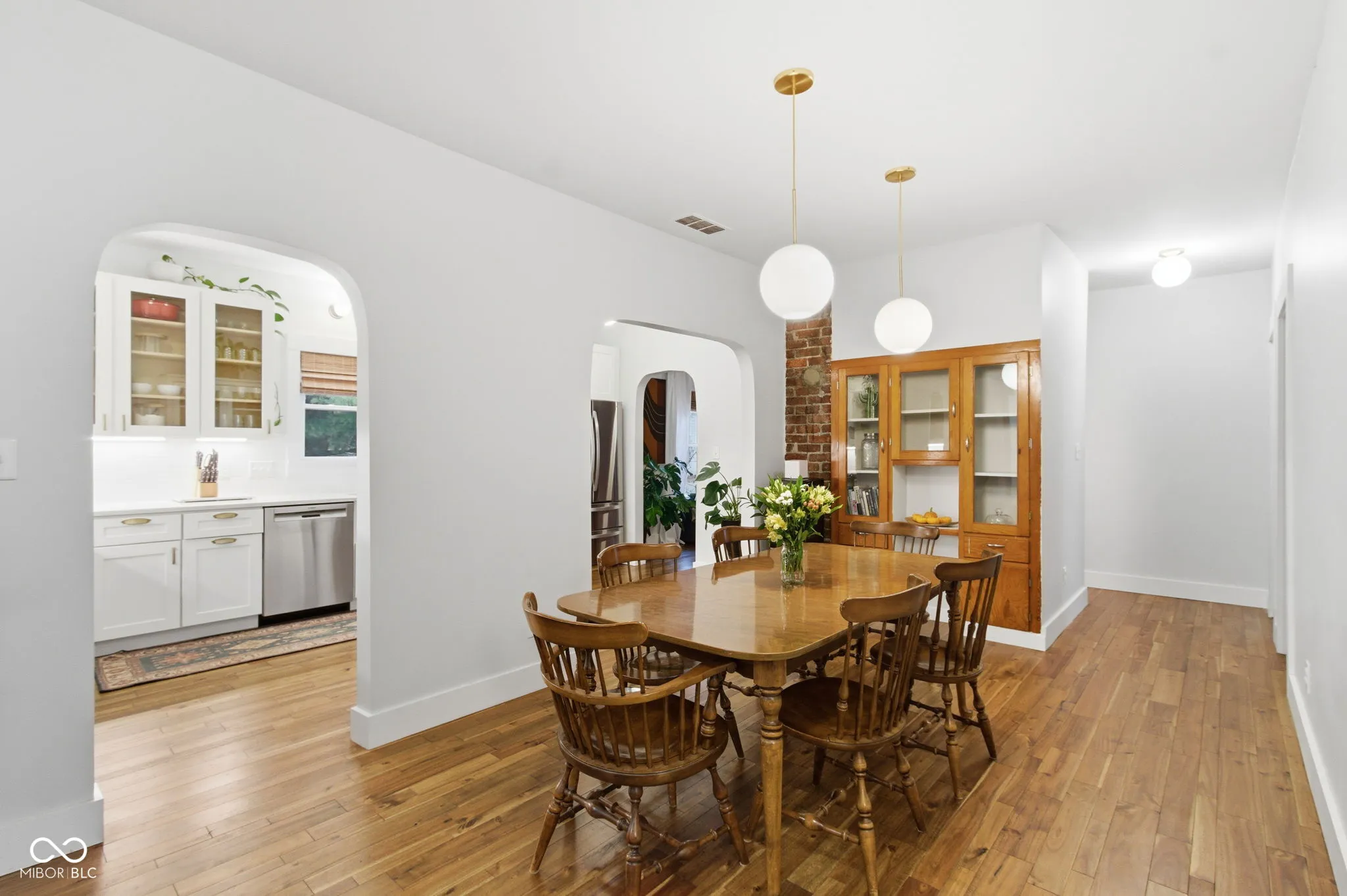 Live in the heart of it all and invest in the rapidly growing quaint community of Whitestown! This darling bungalow is a gardener’s dream and has been completely remodeled from top to bottom-taken down to the studs and rebuilt with modern comfort and efficiency! Lg backyard w/ample garden rows ready for Spring! Peach tree and strawberry patch! Inside, the home features a desirable 3-bedroom, 2-full-bath split-bedroom floor plan, all grounded by gorgeous real Acacia hardwood flooring throughout. The large dining room with its original built-in cabinetry and exposed brick flows seamlessly through arched doorways into a spacious kitchen featuring quartz countertops, stainless steel appliances, farmhouse sink, and a standout triple-tap kegerator-perfectly adaptable for pouring everything from craft beer/cocktails and cold brew to sparkling water and cider. Spacious primary suite offers direct access to the back patio, along with a custom walk-in closet and a beautifully updated bath w/a comfort-height double vanity and oversized subway-tiled shower w/double shower head. 2nd bedroom en-suite w/jack-n-jill bath. The enclosed breezeway/sunroom with HVAC, offers the perfect transition space and provides direct access to the oversized 1-car garage which is insulated and has its own 200-amp sub panel, cabinetry, dedicated heater, making it ideal for a workshop, hobby space, or addl storage. Enjoy raised 9′ ceilings, updated electrical/plumbing and foam and batt insulation for excellent energy performance. Major components have already been completed with newer windows and roof (2017) and tankless gas water heater and HVAC (2019). Fully encapsulated crawl space w/sump pump and dehumidifier. Walking distance to many amenities incl: Moontown Brewing, LA Cafe, Greek’s Pizzeria, Hattie’s Coffee, Panther Park and more, including the new Big 4 Trail through Boone County connecting to Zionsville! Minutes from shopping, restaurants and I65! Beautifully updated yet full of old charm!