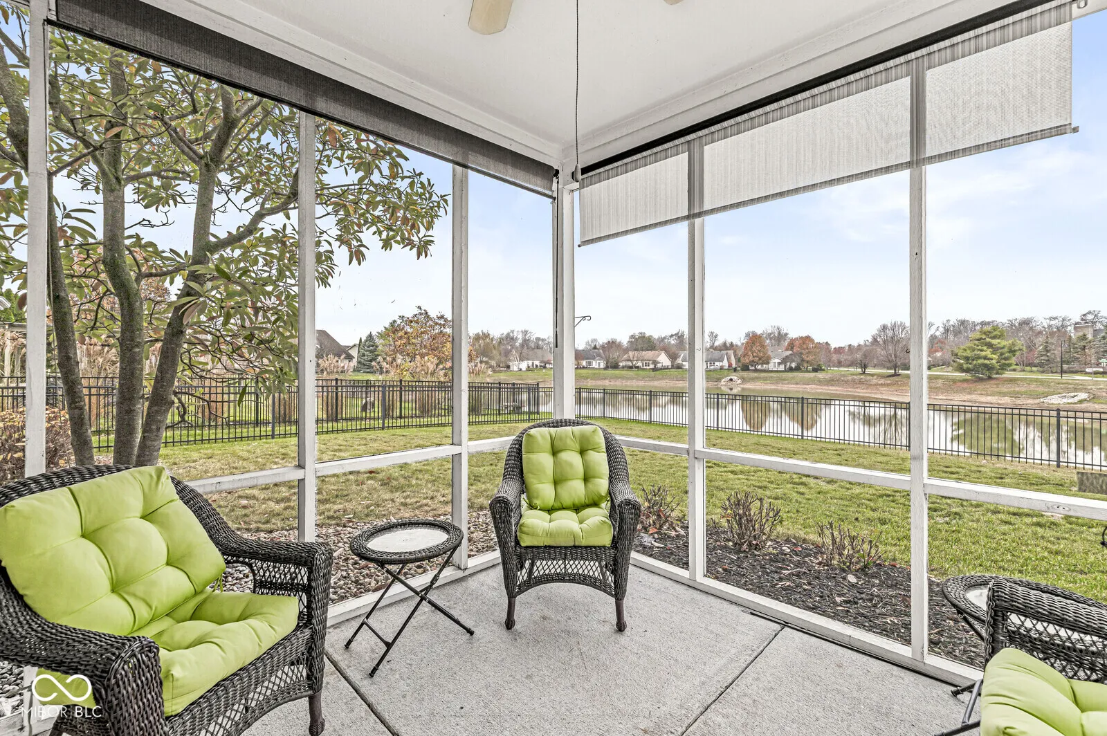 Fabulous Ranch Style home on premium lot overlooking pond. Recent paint throughout and new blinds. Nice floorplan with good flow. Great Room with vaulted ceilings, gas fireplace, formal Dining Room with tray ceiling. Kitchen with maple cabinets,quartz countertops, backsplash and floors that look like wood. Primary bedroom with ensuite, which includes 2 sinks, tub and separate shower and walk in closet. Screened in Sunroom which overlooks backyard and pond. Black steel fence surrounding backyard. Neighborhood amenities include: pool, tennis, playground and walking paths.