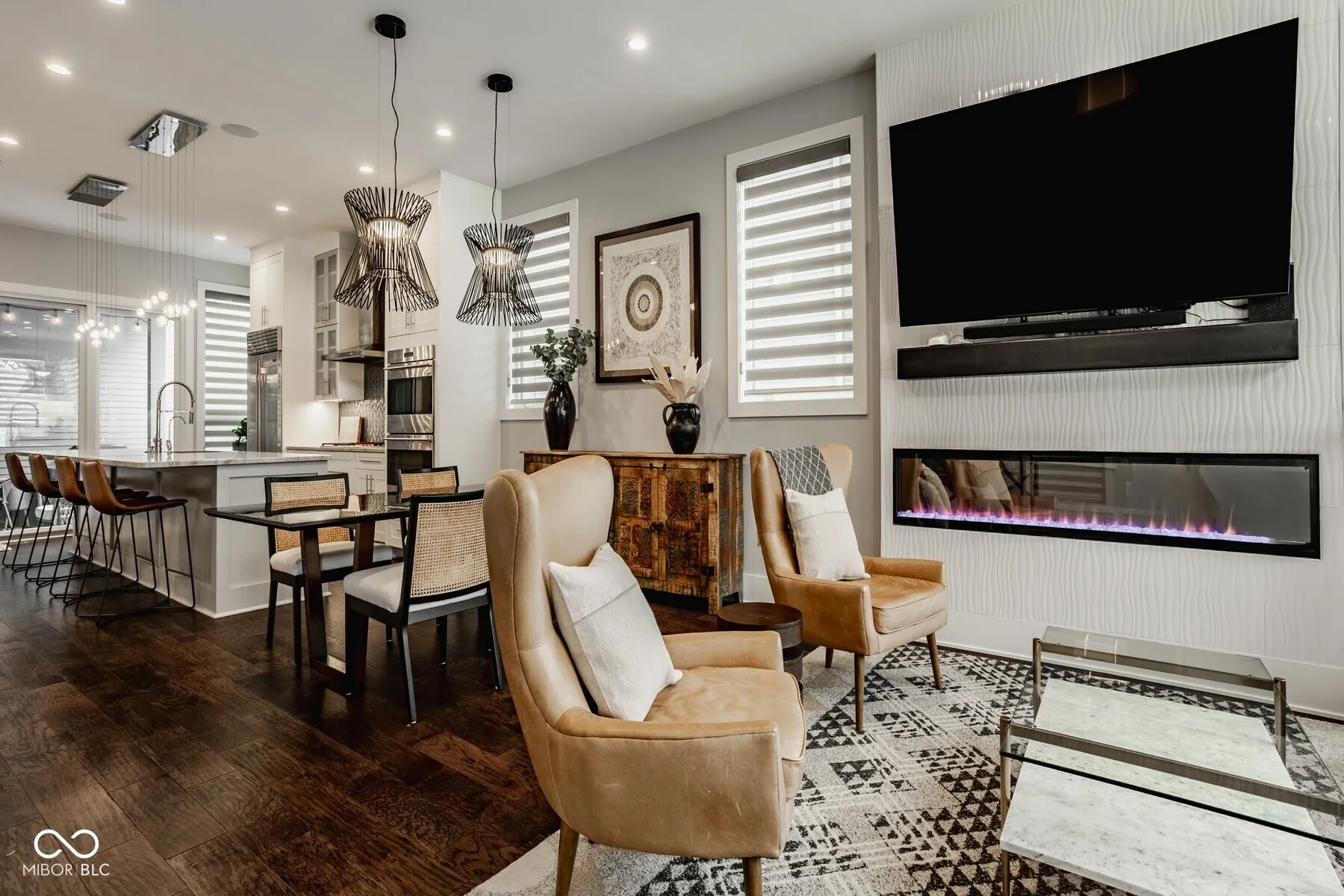 Located in sought-after Lockerbie Square & steps away from Mass Ave, this fabulous residence is perfect for easy living and entertaining. Natural light floods through expansive windows, creating an inviting atmosphere that instantly makes you feel at home. Engineered hardwood floors & designer finishes add style and class throughout the main and upper levels. The main floor is anchored by the living room with a cozy electric fireplace that beckons you to unwind after a long day. As you move through the space, you’ll be drawn to the chef’s kitchen, featuring top-tier appliances like a Sub-Zero refrigerator and double ovens, as well as a stunning tiled backsplash. Off the kitchen, the covered patio is an extension of your indoor living space, and the perfect spot for morning coffees or evening gatherings. The 2nd level family room is connected to a covered deck, giving you more indoor/outdoor entertaining and dining options. Two generously sized bedrooms connected by a Jack-and-Jill full bath and a conveniently located laundry room finish off this level. The third floor hosts the primary suite, featuring a large walk-in closet and an electric fireplace. The finished lower level includes the fourth bedroom as well as a generously sized rec room, complete with a KitchenAid wine fridge and bar area. A private elevator gives you ease of access throughout the home. Rare for the downtown area, this property also has a spacious three-car garage complemented by a wide driveway for your cars & guests! If all this wasn’t enough, you’re just steps away from the city’s most vibrant restaurants and bars. Don’t miss out!