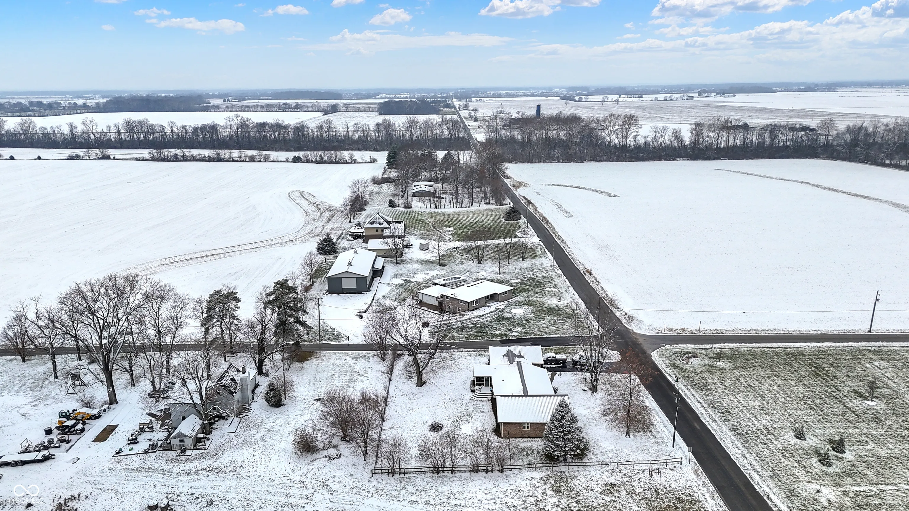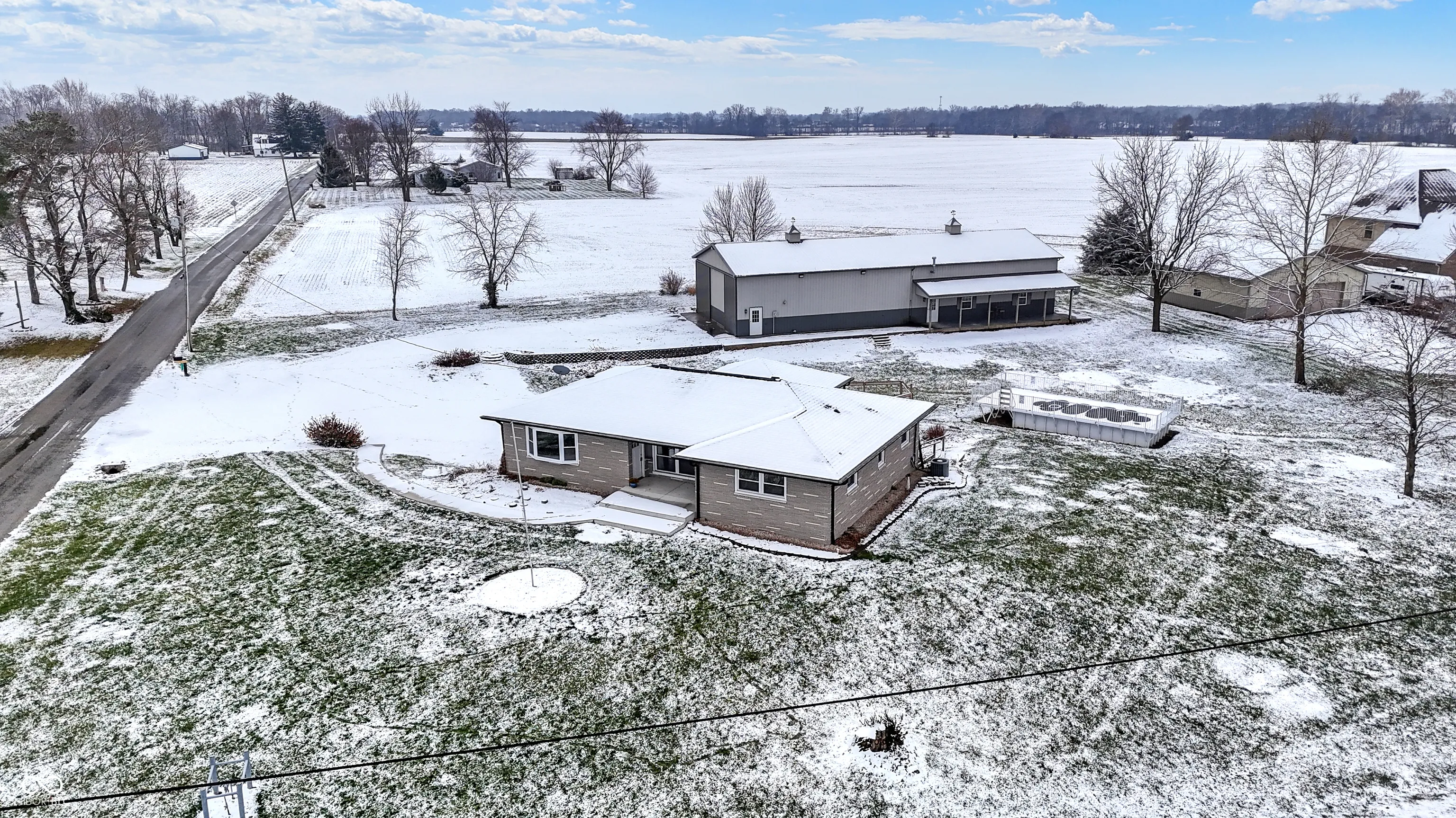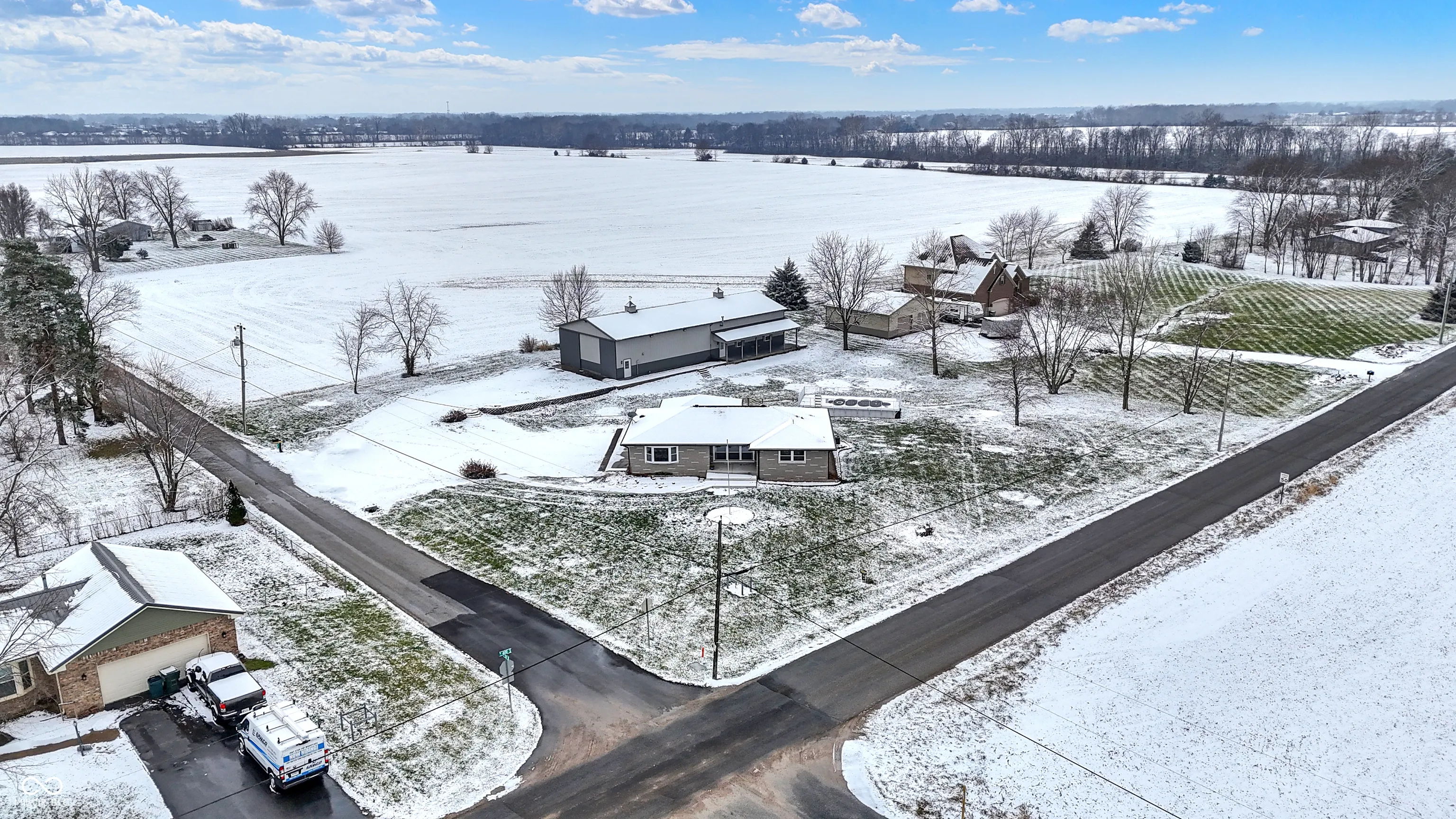 Nestled at 4006 S 50 W, GREENFIELD, IN, this single-family residence in New Palestine Schools represents an exciting opportunity to create a personalized haven. This property offers a blend of comfortable living and a 90 x 40 outbuilding space, Half the building is heated and insulated and the other half could be used for RV storage or business purposes. The residence features three bedrooms. Primary bedroom offers a half bath with room to add a shower. Hardwood floors under the carpet in primary bedroom. Two more bedrooms with hardwood floors and large closet space. Large dining room and living room. Kitchen updated with painted cabinets and counters. 43×10 deck overlooks all the property. Lower level has new epoxy floors, gas fireplace that heats comfortably the entire space. Large laundry area and work room/office space. An acre and a half corner lot offers space to enjoy!