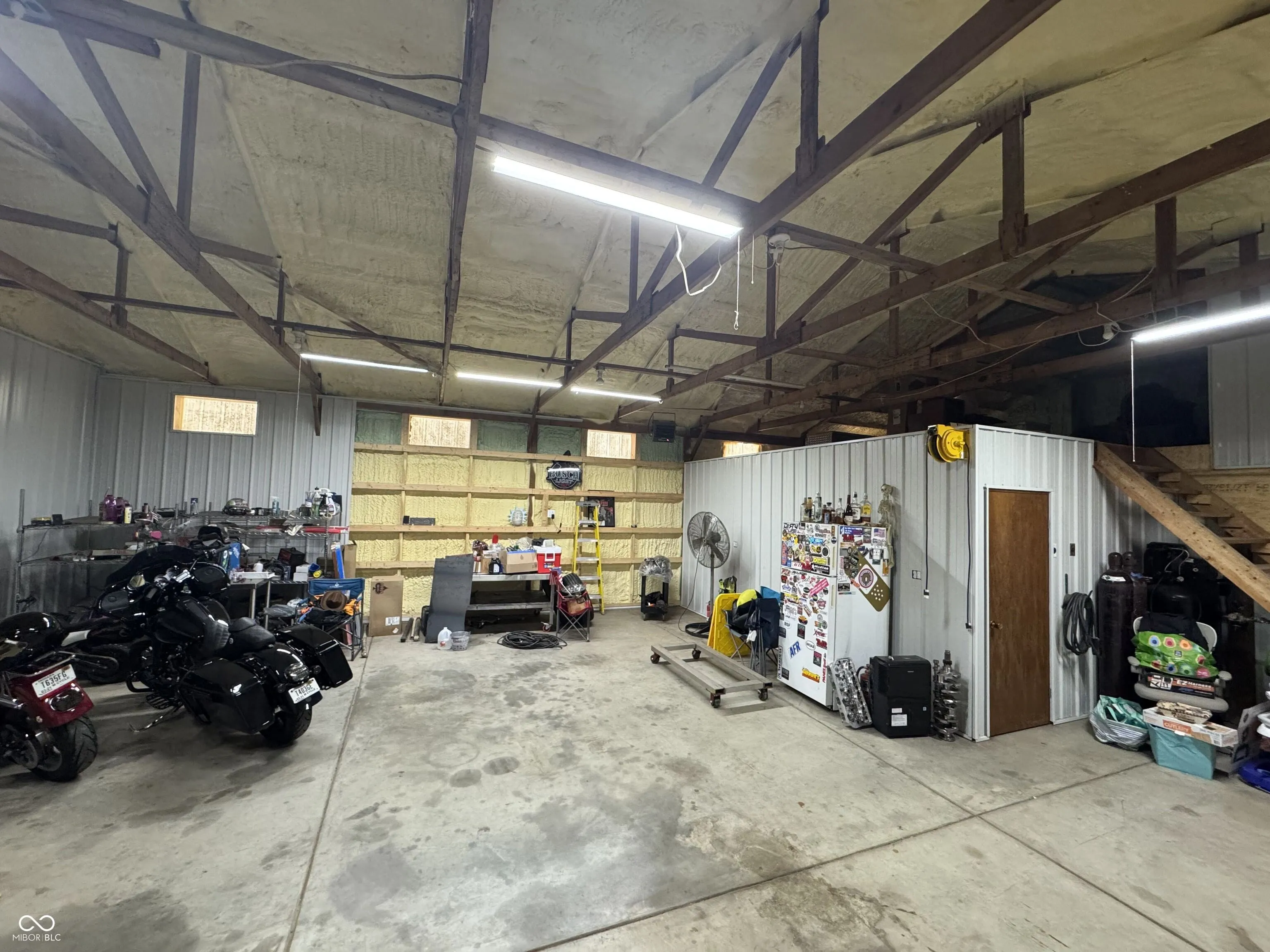 Charming Bedford stone ranch on over 2 acres-right across from Southside Elementary School and the fairgrounds! This warm and inviting 3-bedroom, 1-bath home features hardwood floors throughout, a bright main level, and a full unfinished basement perfect for storage, hobbies, or future finishing. Enjoy the convenience of an attached 2-car garage, plus a massive 30×48 heated and insulated pole barn with concrete floors and 240-volt power-ideal for welding, woodworking, auto work, or year-round projects. The large property provides space, privacy, and room to grow, all while being close to schools, parks, and local events. Homes with this combination of charm, land, and functional workspace are rare-don’t miss it!