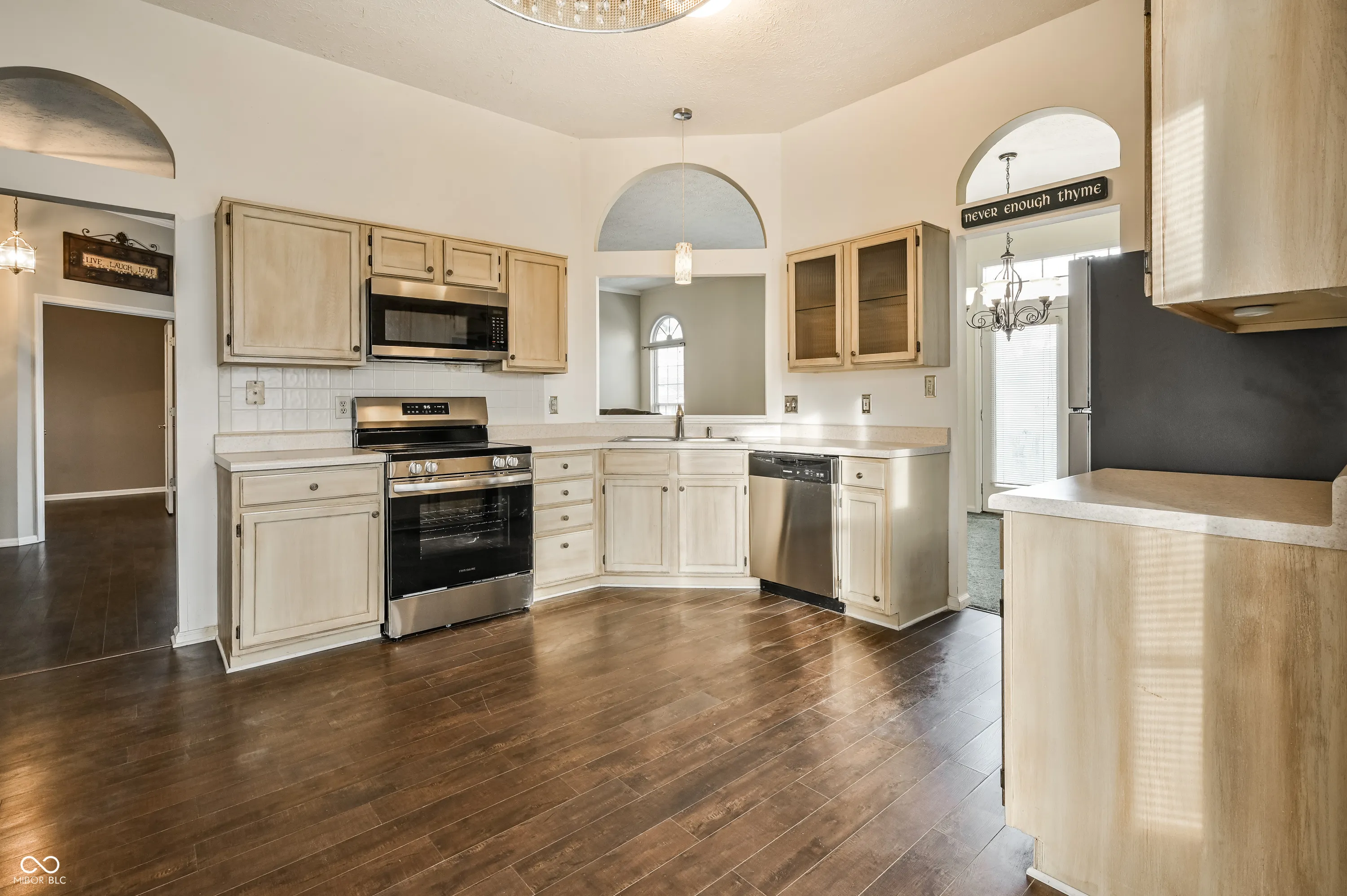 Wow! What a great location & NO HOA in the wonderful Sunblest subdivision in Fishers – just minutes from all things Fishers and all things Carmel!! 3 Bed, 2 Bath, 2 car garage with extra parking for an RV, boat or guests! BRAND NEW STAINLESS STEEL APPLIANCES were just installed. PLUS newer washer and dryer are included. Foyer, Great Room and Kitchen have 10 ft. ceilings and palladium transom windows for tons of natural light! Great open concept, but still has a little separation from the Kitchen with a large pass through window so the cook can be a part of the conversation. Eat in kitchen and separate open concept Dining Room area. Multiple dining options, or eat outside on your patio. Great for entertaining! Gorgeous newer vinyl plank flooring in entry, Kitchen and 2 bedrooms and newer carpet in Great Room. Primary Suite has cathedral ceiling and jacuzzi style tub w/separate shower stall and large walk-in closet. Large Patio in fully fenced back yard and storage shed for your lawn tools! Newer roof. Furnace 2016, Water heater 2018. This great home is all clean and ready for you to move right in!