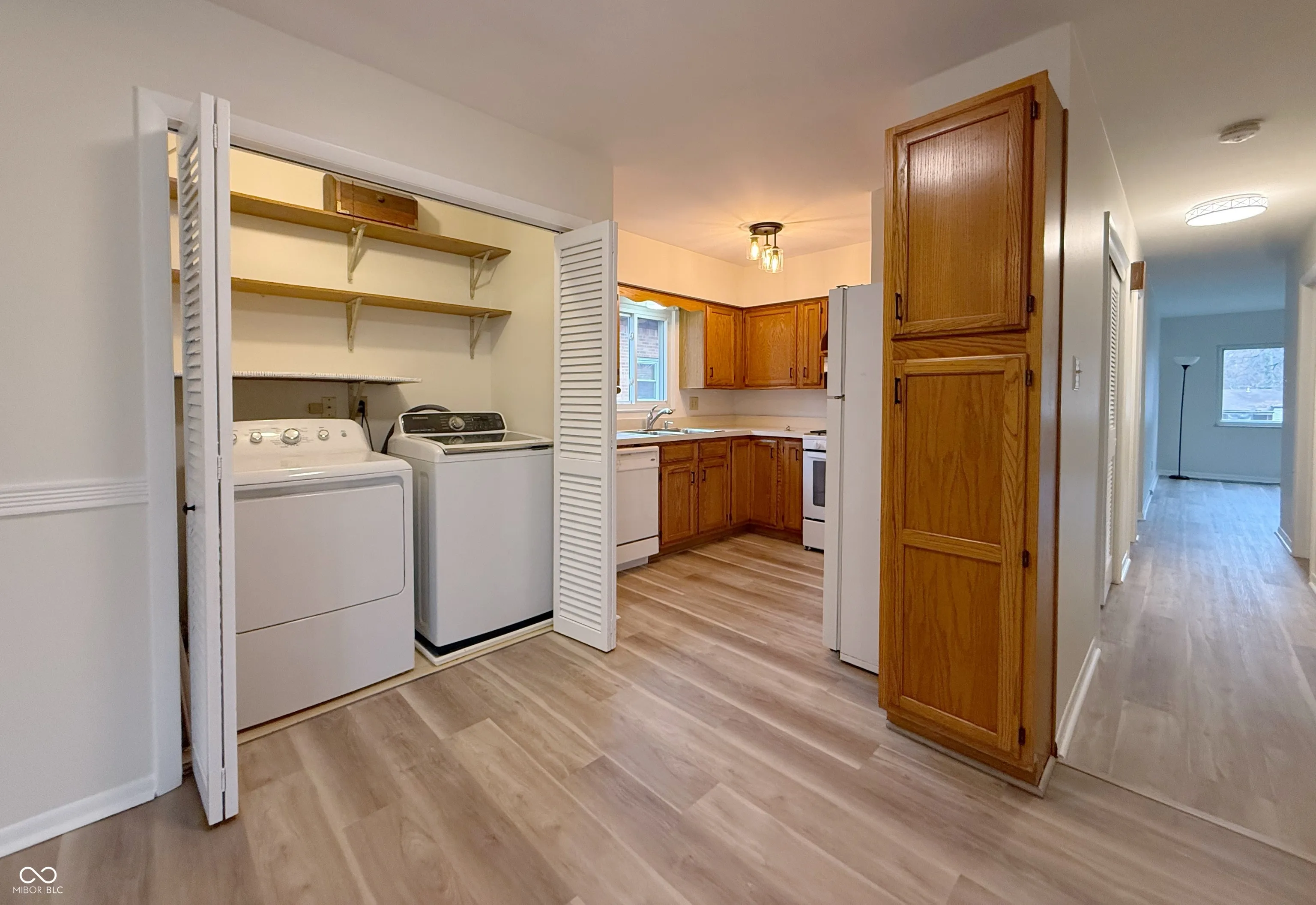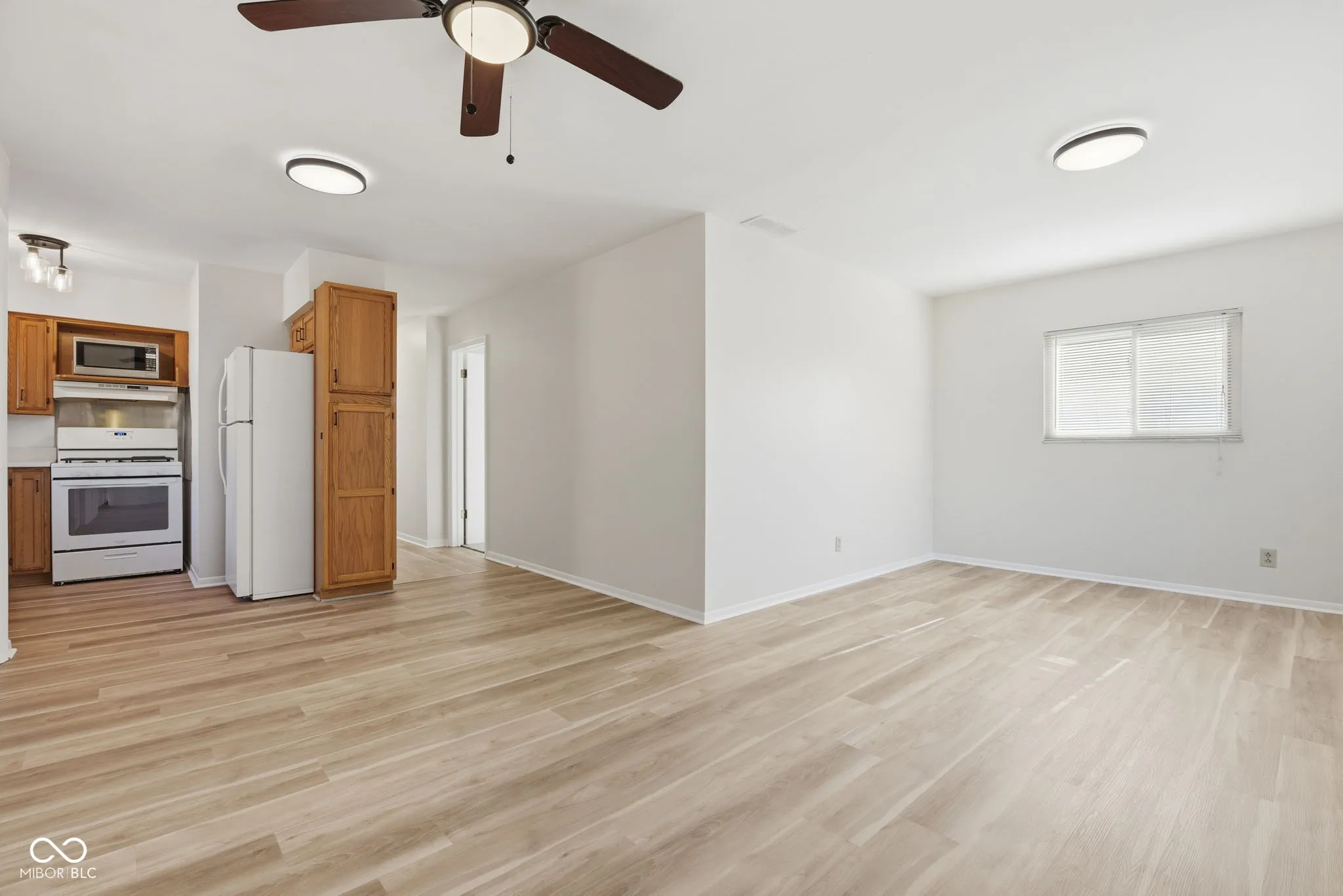 What a great house at an affordable price! Freshly painted with BRAND NEW vinyl plank flooring, carpet, lighting, furnace and ac plus an updated bathroom. Electric fireplace / tv stand in the living room stays, as do the kitchen appliances, washer and dryer. Combo family room / dining room spaces are conveniently located off the kitchen. Relax in the fenced in back yard on your spacious deck, enjoy the playset and firepit or work on projects in your large, electrically powered outbuilding. More outdoor storage is available in the closet on the side of the house. Lots of space for off street parking and plenty of room to build a garage if desired.