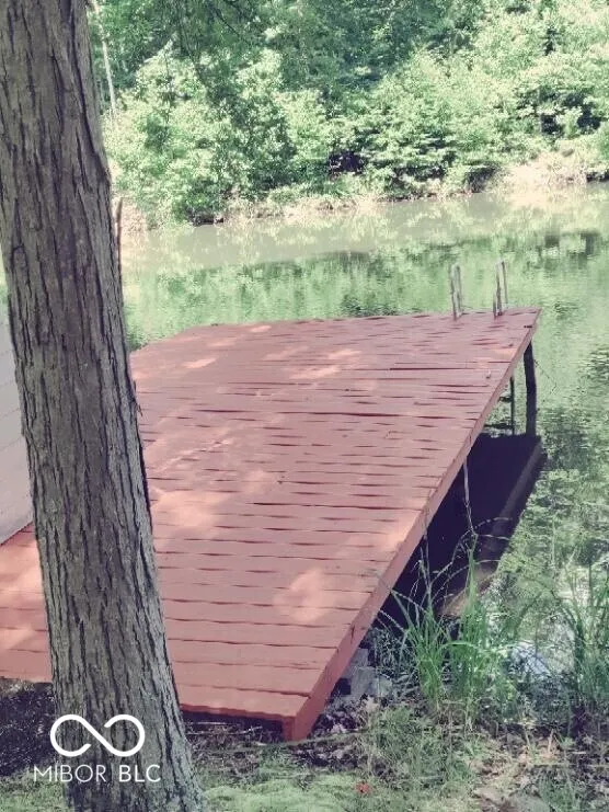 Gorgeous private lake with only 24 houses offers a true natural oasis! Thomas Lake started as a private club in 1955 amongst a group of friends interested in nature conservation. Today, this small community remains dedicated to private conservation efforts. No additional cabins can be built on the lake, no motors above 5 HP and no rentals are allowed, ensuring unparalleled privacy and serenity! Jump off your dock for a swim, take the kayak out to fish for croppie, red ear, blue gill, bass or catfish or sway underneath the trees in the hammock! The cabin has been thoughtfully updated but retains it’s rustic charm. Enjoy outdoor living on the huge deck, your private dock or one one of the three maintained trails covering the 300 acres of land the Association owns. Additionally, gather at the community shelter with picnic tables and a fire ring or enjoy the small, sandy beach area. Don’t miss the annual 4th of July fireworks show, which is put on by residents but rivals Greencastle’s fireworks show! Cabin 4 is nestled on the south side of the lake, with only three other houses and looks out on a densely wooded peninsula. From the deck, you might see our nesting blue and green herons, nesting bald eagles, owls, hummingbirds, deer, bobcats, foxes and lots of other animals!