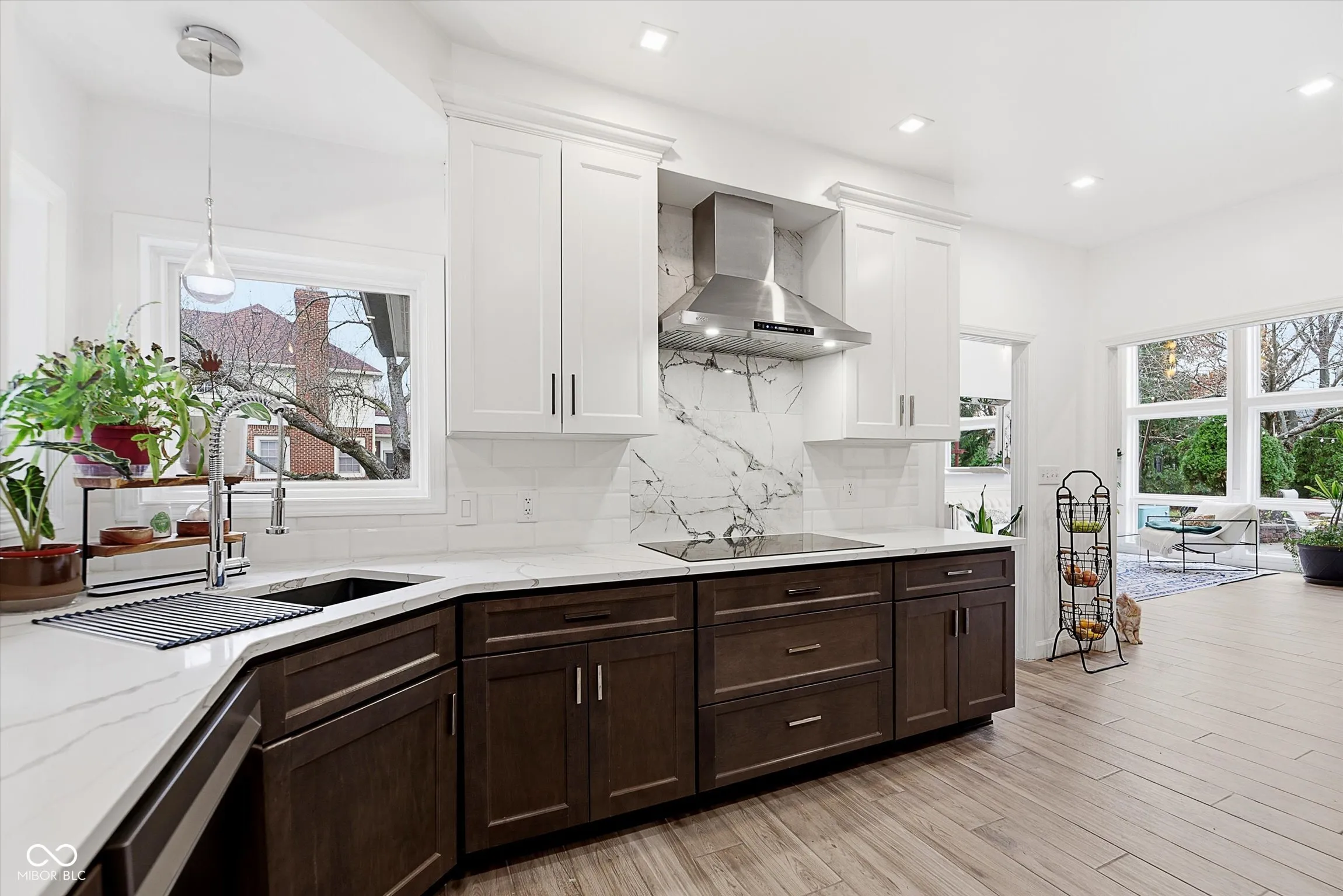 Welcome Home to this beautifully renovated two story brick home in Carmel’s established neighborhood, Woodgate. This split-bedroom home offers over 3,700sqft, 4BR’s, 2.5 BA’s, two living spaces, plus loft and office! European inspired interior design throughout the home, $200k invested in remodel. Two story formal living room with floor to ceiling windows, and gas log fireplace accented by shiplap surround. Easy access to formal dining from kitchen and living rm. Kitchen offering two toned soft close cabinetry, quarts countertops, tile backsplash, and built-in stainless appliances featuring electric cooktop and professional grade range hood. Custom walk-in pantry. Main level owner’s suite offers private patio access, built-in electric fireplace & tv, custom built walk-in closet with tons of storage, plus breathtaking spa bath offering marble tile wall surround, double sink vanity, walk-in shower with dual fixtures, and soaking tub. Sun drenched 600+sqft family rm with vaulted ceiling, walk-out patio access, custom built dry bar with glass door cabinetry & waterfall quartz countertop, and beverage fridge. Updated main level powder bath and laundry rm. Bonus rm behind built-in bookcases under stairs would be perfect for wine cellar. Upstairs offers 3 addtl BR’s, loft space currently being used as home gym, office space, and full bath with tub/shower combo. Finished 3 car attached garage with custom built mud room bench and cabinetry, overhead storage racks stay! New roof, furnace, water heater and more! Home is located on quiet cul-de-sac, offering .60 acre lot with mature trees, and even private basketball court. You will not be disappointed!