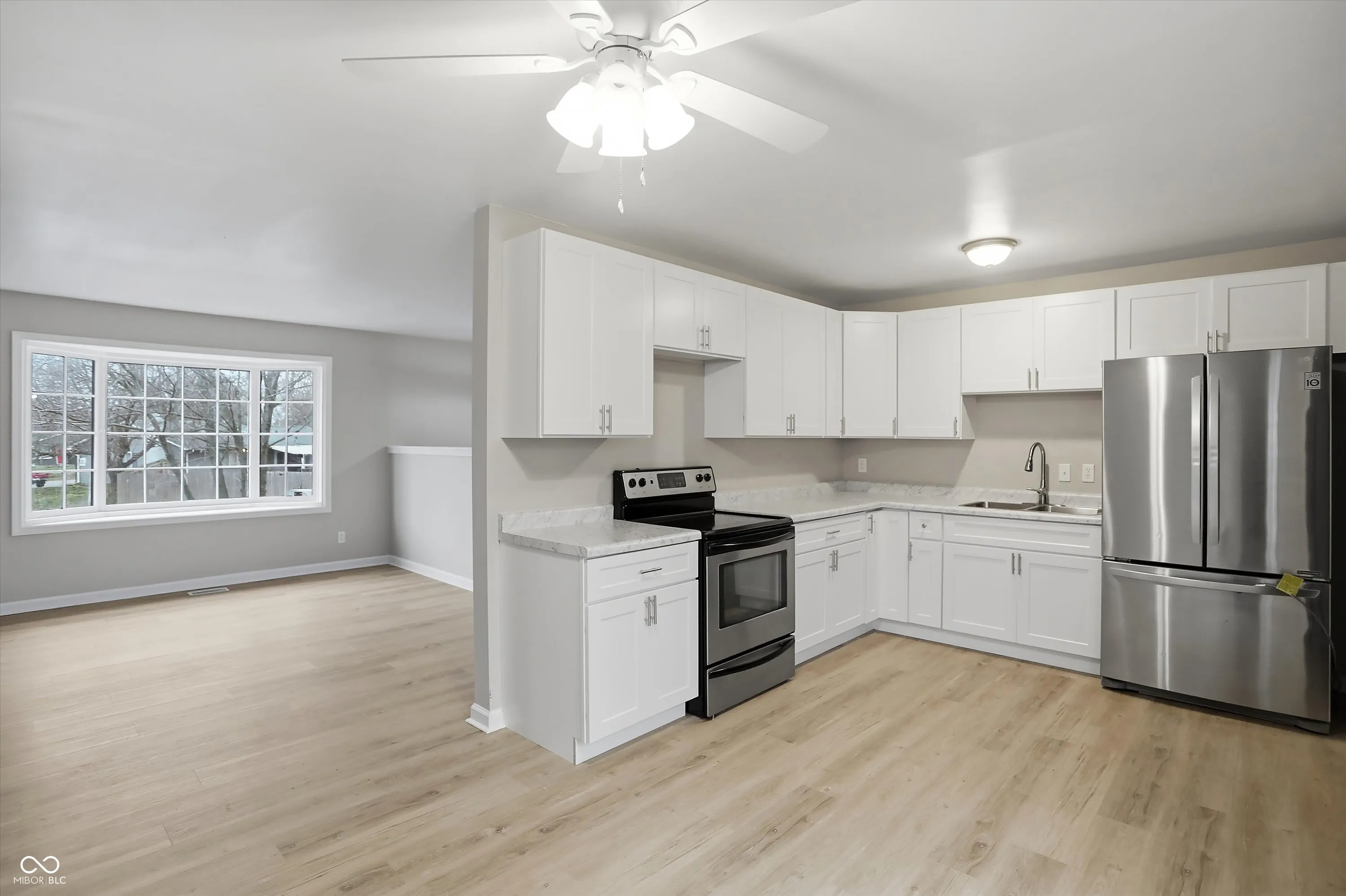 This lovely home has been remodeled and is ready for a new owner! This bi-level residence features 4 bedrooms and 2 full baths. On the main level there are 3 bedrooms along with a full bath, a welcoming kitchen with space for a dining table, a large open concept living room with a beautiful accent wall and vinyl hardwood floors. The lower level offers an additional and very spacious bedroom with a large walk-in closet, a beautiful accent wall and brand-new full bath. The basement is super cozy with a large family room with fireplace, laundry area, and convenient access to the attached garage. The home has been fully remodeled, painted inside and out with new flooring throughout. The deck has been refinished, and the large yard makes this home a gem! One car attached garage.