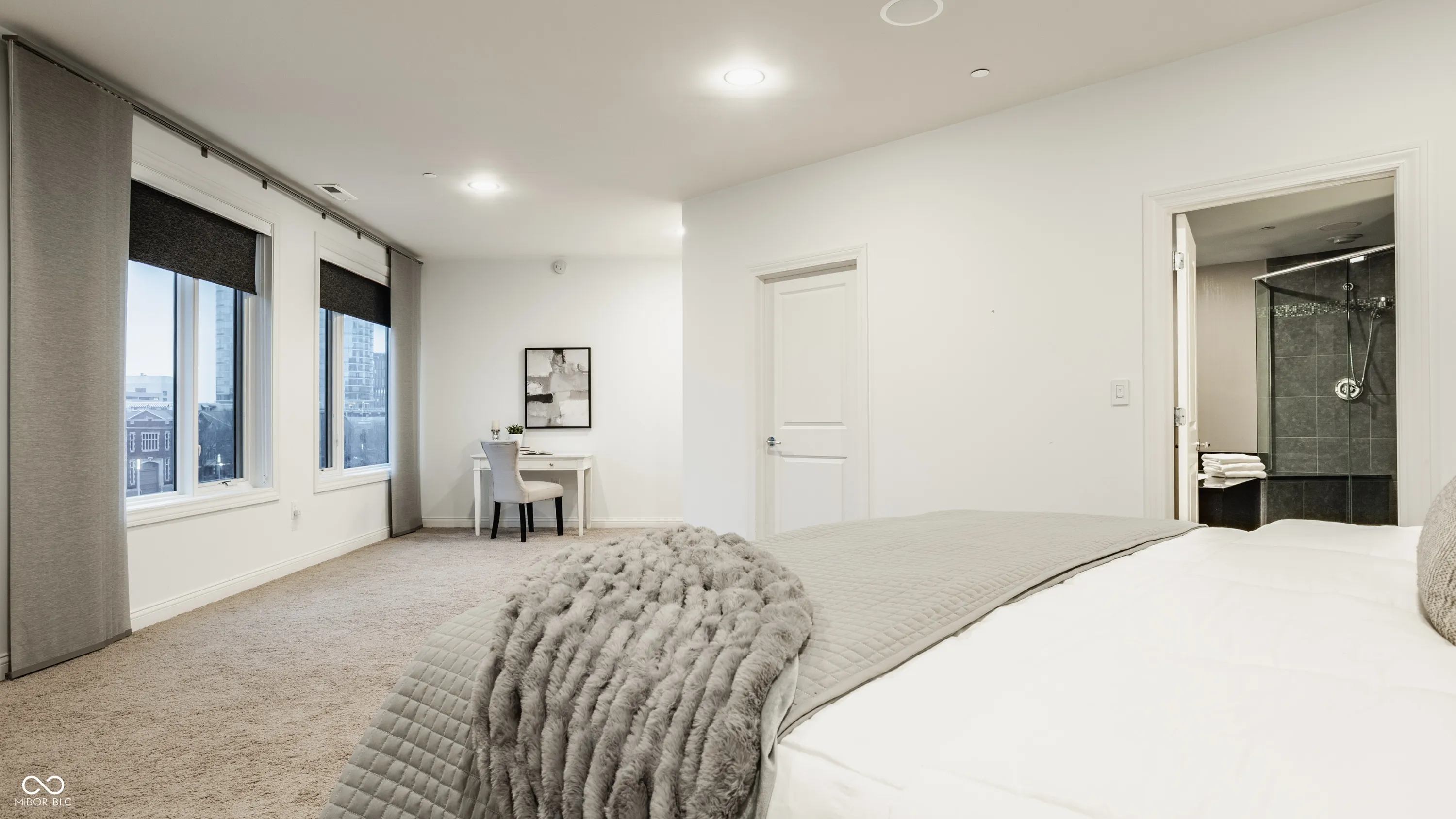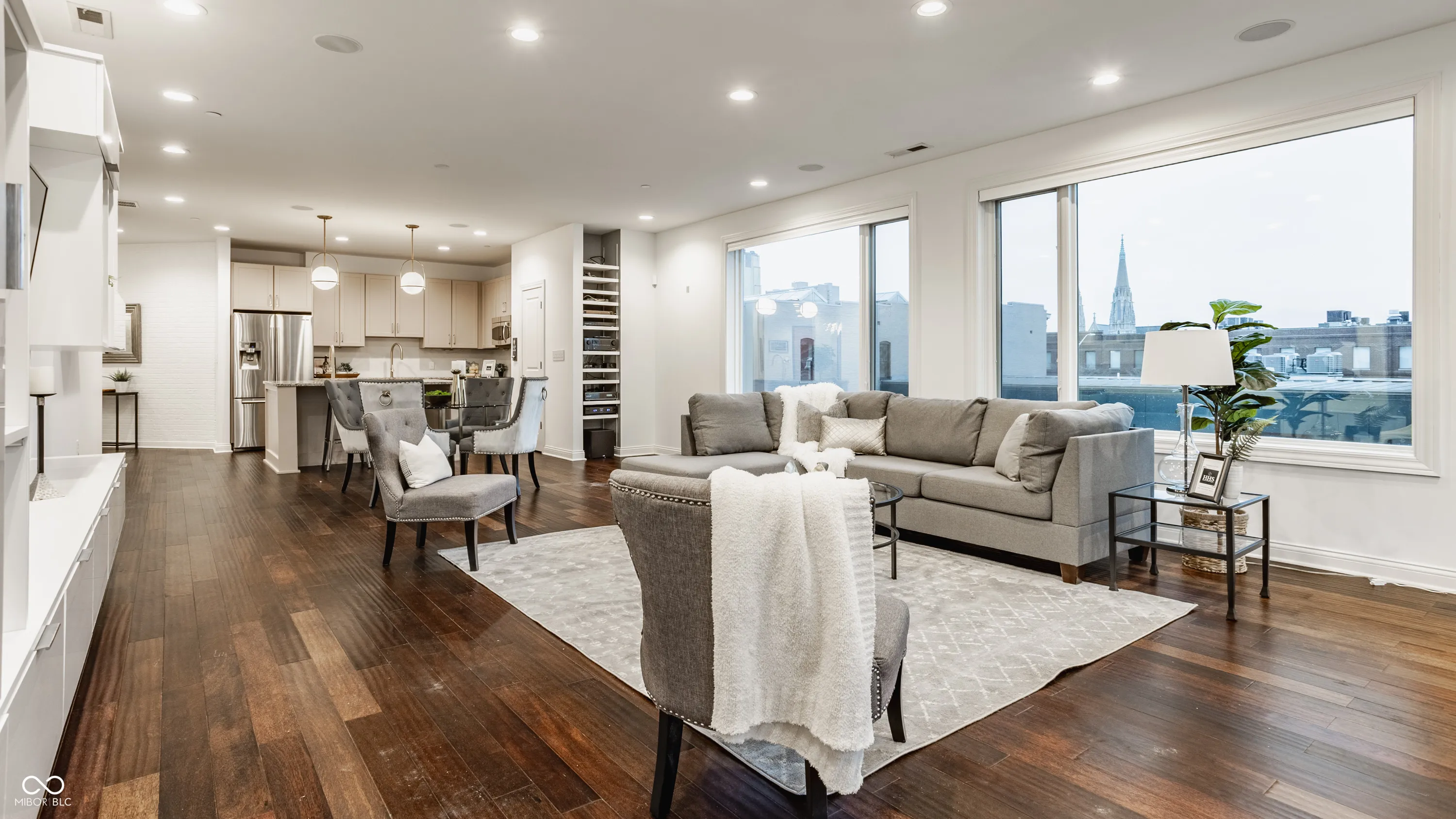 Unmatched downtown living at the desirable Three Mass Avenue Condos. This light-filled 3rd-floor 2BR residence offers panoramic city views and a private terrace. The home features updated shaker-style kitchen cabinetry, stainless steel appliances, a wine fridge, designer lighting, and newly replaced TVs in the living room and bedroom. Additional recent updates include a new second water heater, new dishwasher, upgraded home-theater system (new stereo receiver, Bluetooth connectivity, Amazon Alexa, new HDMI system), new rolling window treatments with blackout features, and a new alarm system. The spacious primary suite provides room for an office or reading nook, a custom closet, and a soaking tub. Community amenities include a fitness center, secure garage parking, wine cellar, and rooftop deck with skyline views. Steps from Mass Ave restaurants, shopping, and entertainment.