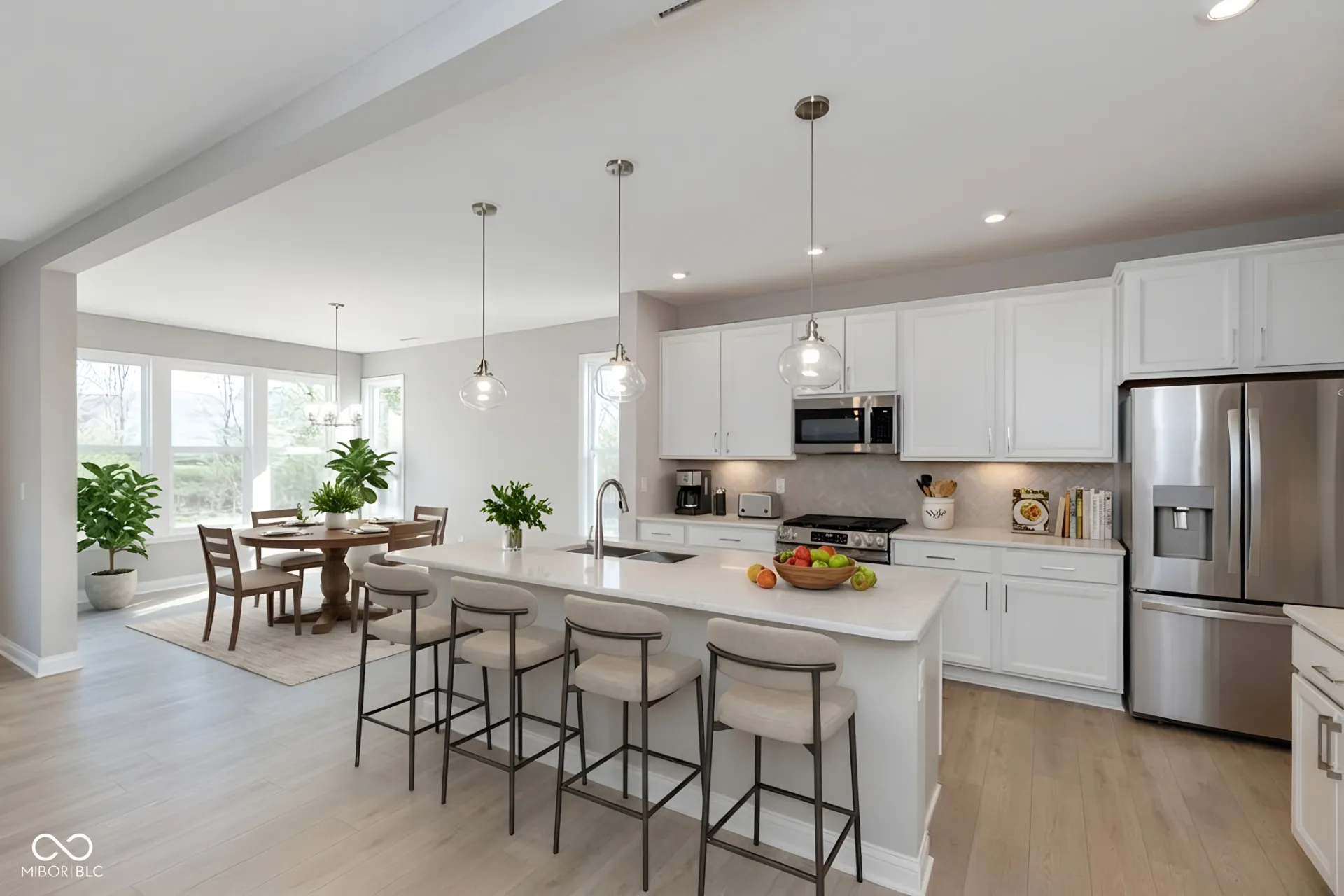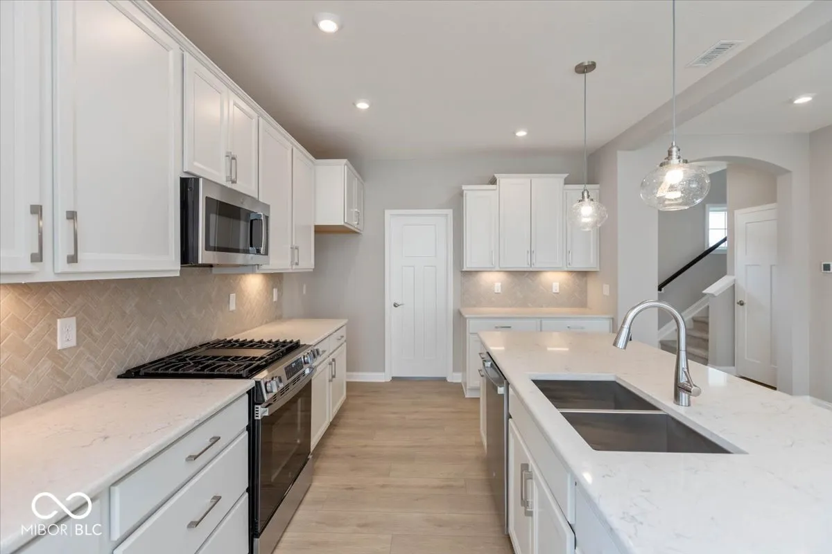 New construction Delaney plan by Fischer Homes in beautiful Brighton Knoll featuring an island kitchen with upgraded maple cabinetry, quartz countertops, walk-in pantry and upgraded appliances, walkout morning room. Family room that is open to kitchen and morning room. Upper level feature primary suite includes en suite, vanity, shower and walk-in closet. Three additional bedrooms and hall bath. 2 car garage.