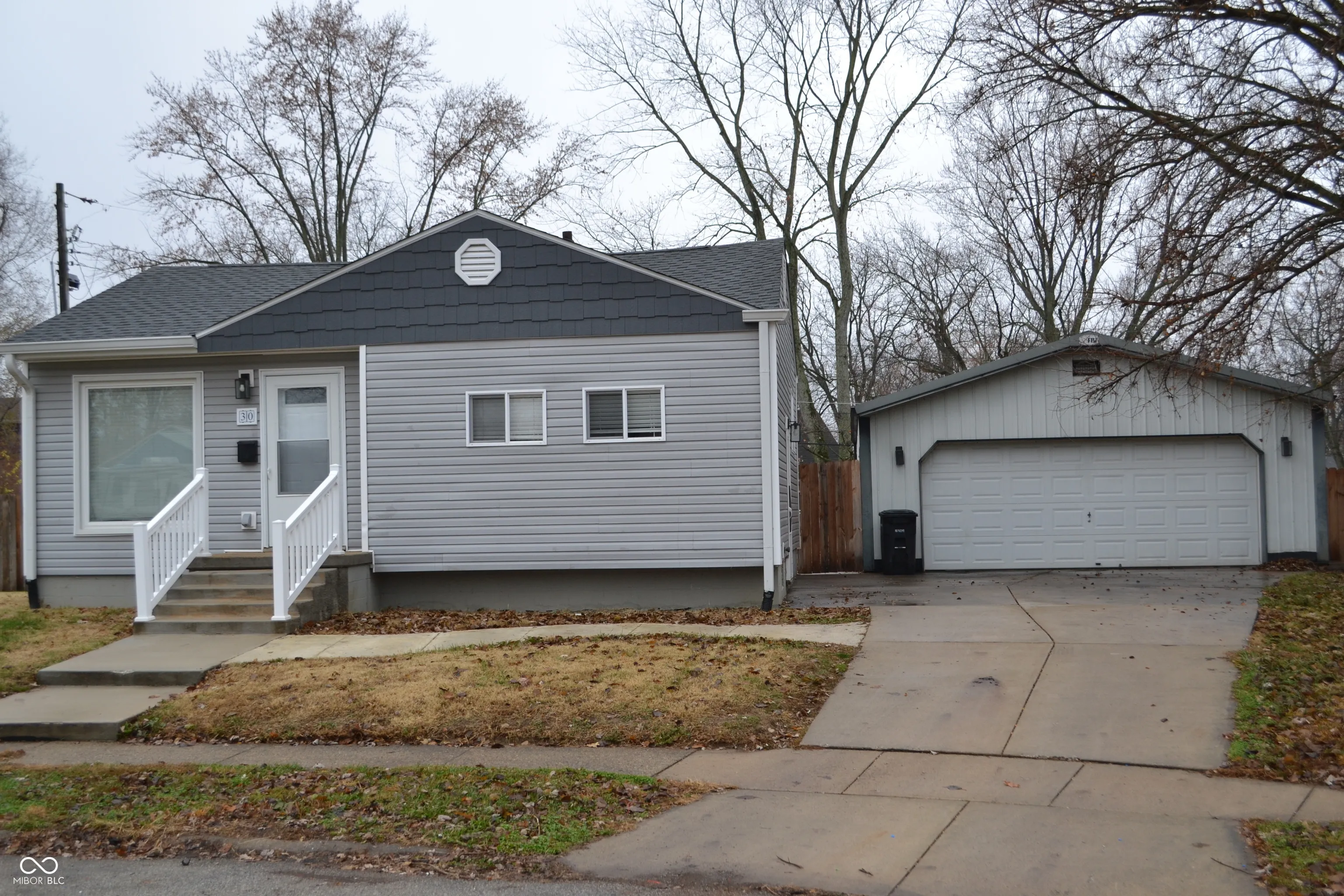 Completely remodeled 3 bedroom, 2.5 bath with basement ranch, with FBI 4 car garage. This move-in ready property has new roof, siding, gutters and downspouts, windows, floors, complete new kitchen cabinets, backsplash, countertop, appliances, blinds, lighting throughout, switches and outlets, completely remodeled 2 full baths, toilets, showers, tile, vanities, plumbing, fixtures, basement egress added, replaced front and left foundation walls, added water barrier on entire foundation all in 2023. Just completed repainting whole house 2025. In 2024, the half bath in basement remodeled. Hot water heater 2023. This house sits on a large lot and offers so much storage and the garage is HUGE. Taxes reflect investment property. New sidewalk and steps. Truly a gem.