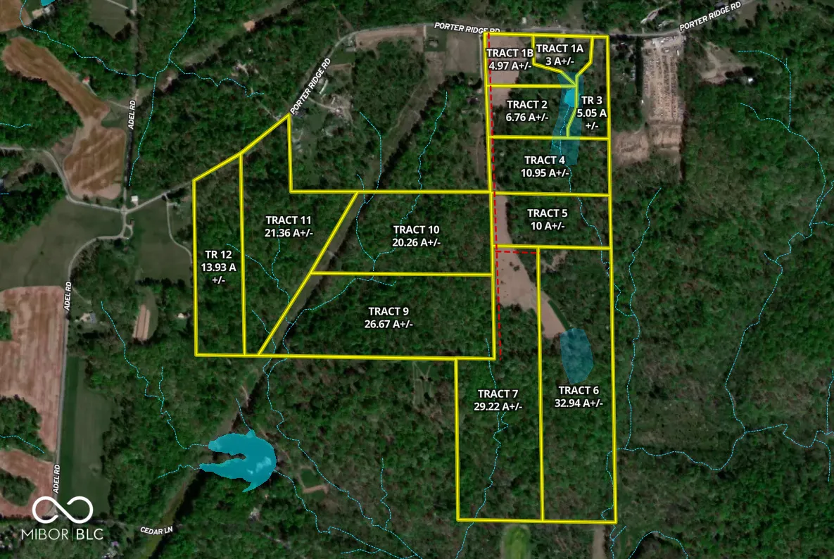 Great opportunity to own a large tract of timber ground. Property is in a good location out in the country. This land is located near the Owen/Greene County line and is conveniently located only 15 minutes from Spencer and less than 30 minutes from Bloomington or Bloomfield, enjoy all that country life has to offer but still only a short drive to town or work. Property has good road frontage from two areas off of Porter Ridge Rd. A recent selective timber harvest was done and has added some nice trails for getting throughout the property along with a main gravel road allowing access to the separate tracts that are being offered. There are several ideal building areas within the property that have water, electric and fiber available to them all. This property is home to an abundance of wildlife. Awesome ground for deer, turkey, small game and morel mushroom hunting. This tract is large enough to be able to hold deer and grow monster bucks. Several areas would make excellent spots to add in some food plots and have a dynamite hunting property. Some nice lakes and several brooks run through the ground providing a water source for the wildlife and opportunities to enjoy fishing. Property is also being offered as 12 separate split tracts, see maps for different tracts. Opportunities like this seldom come along, don’t miss yours!