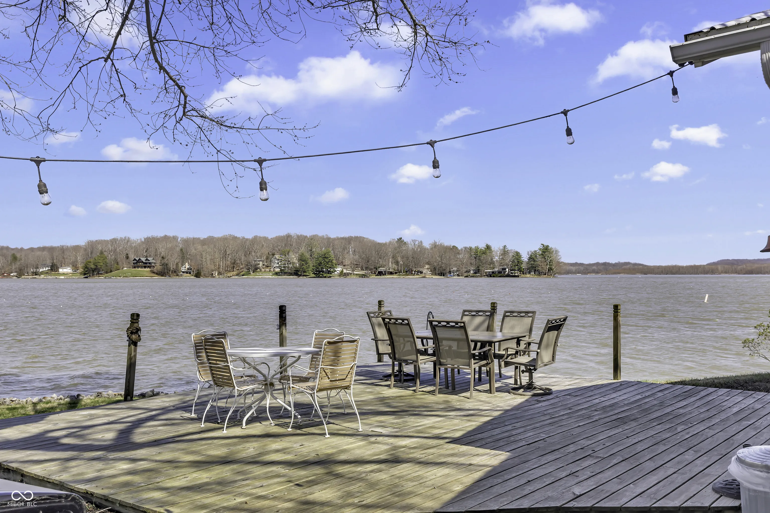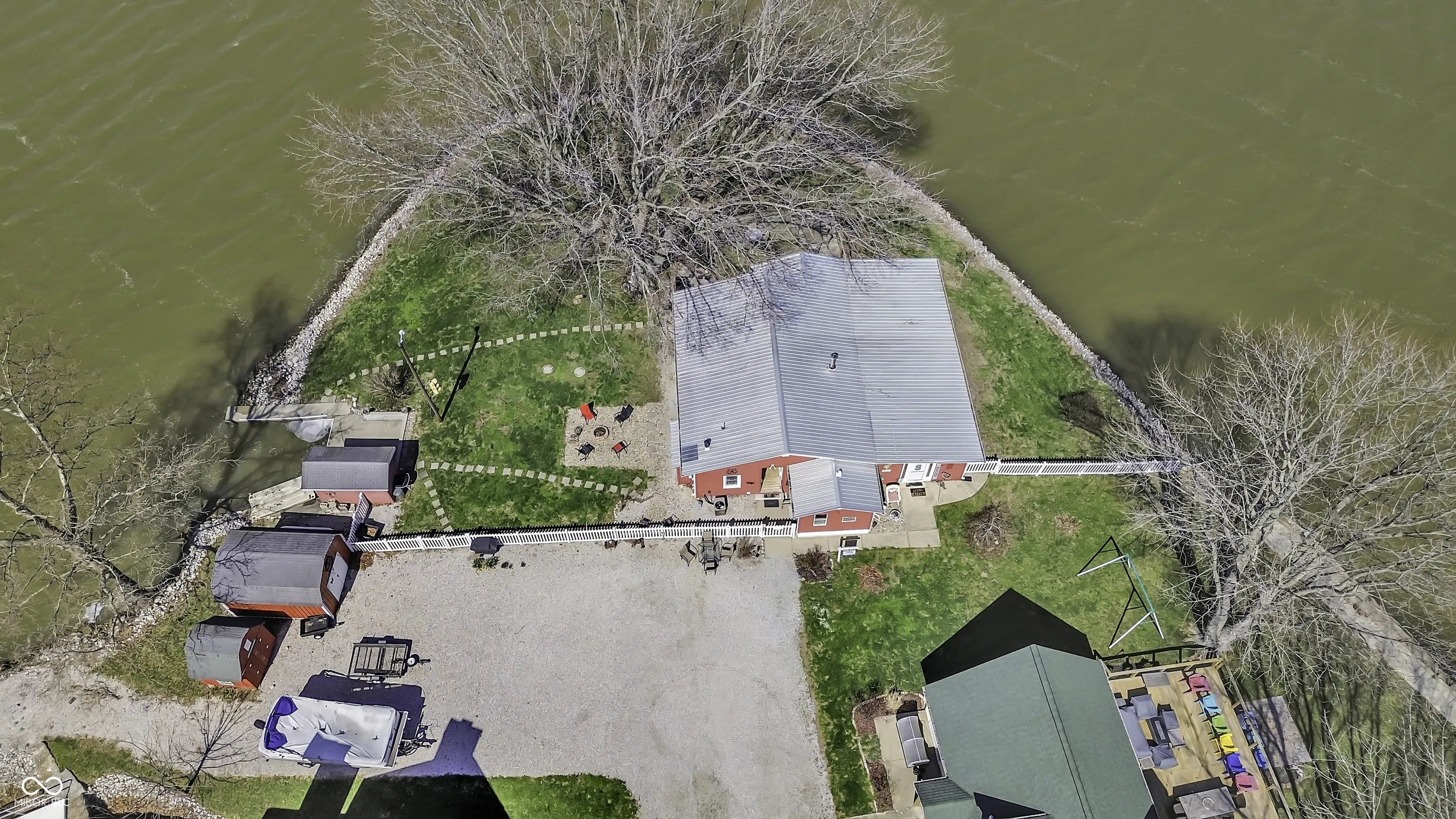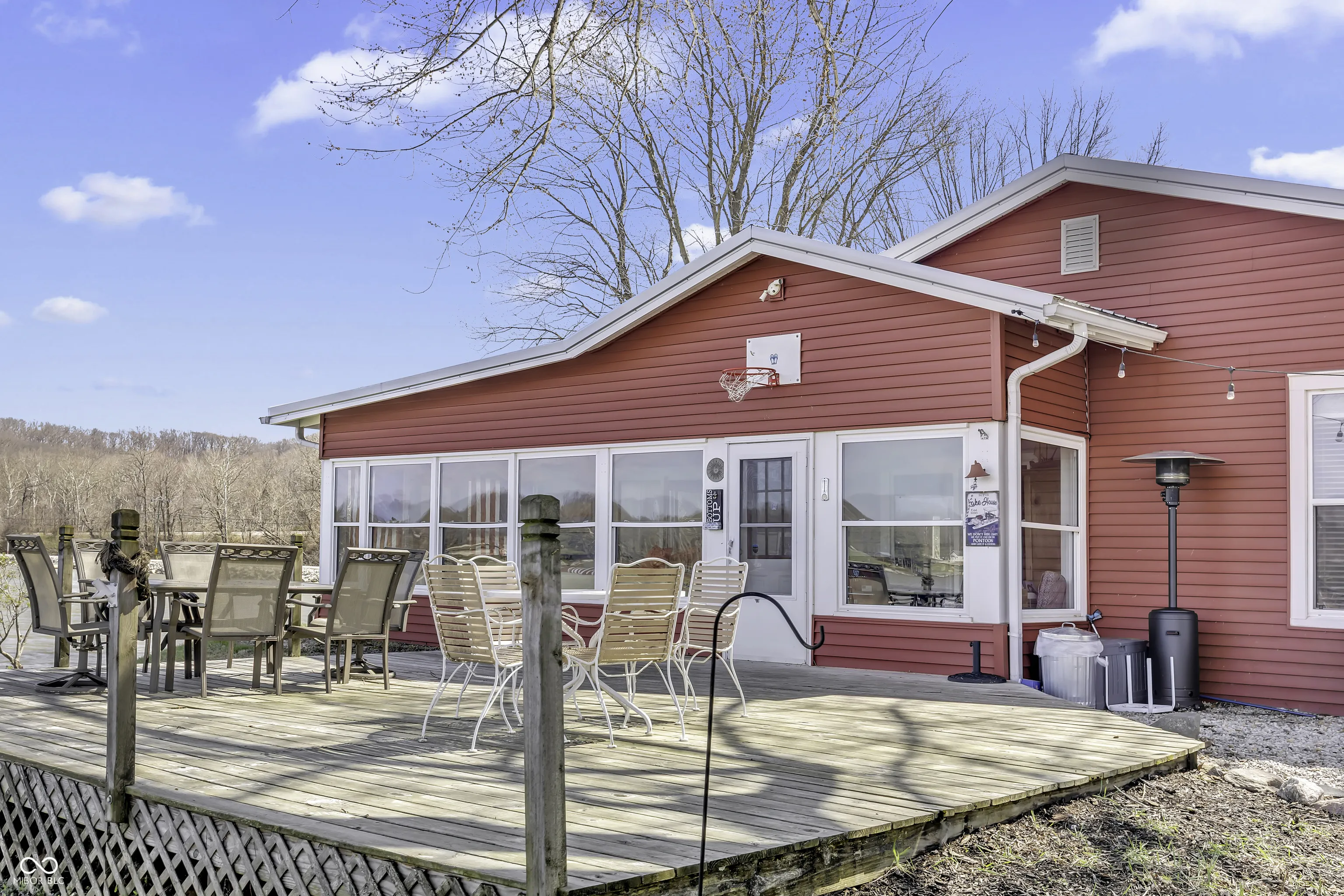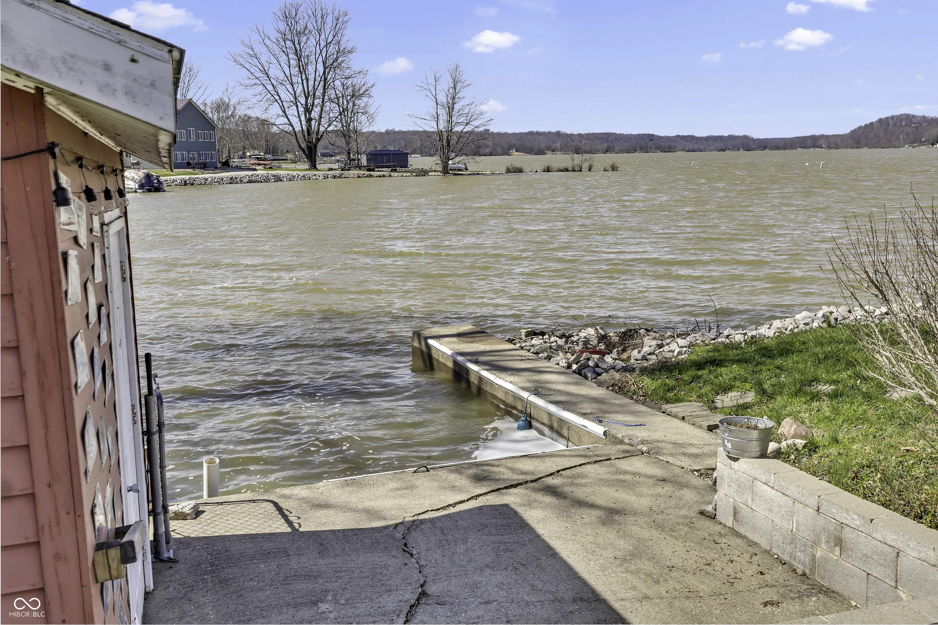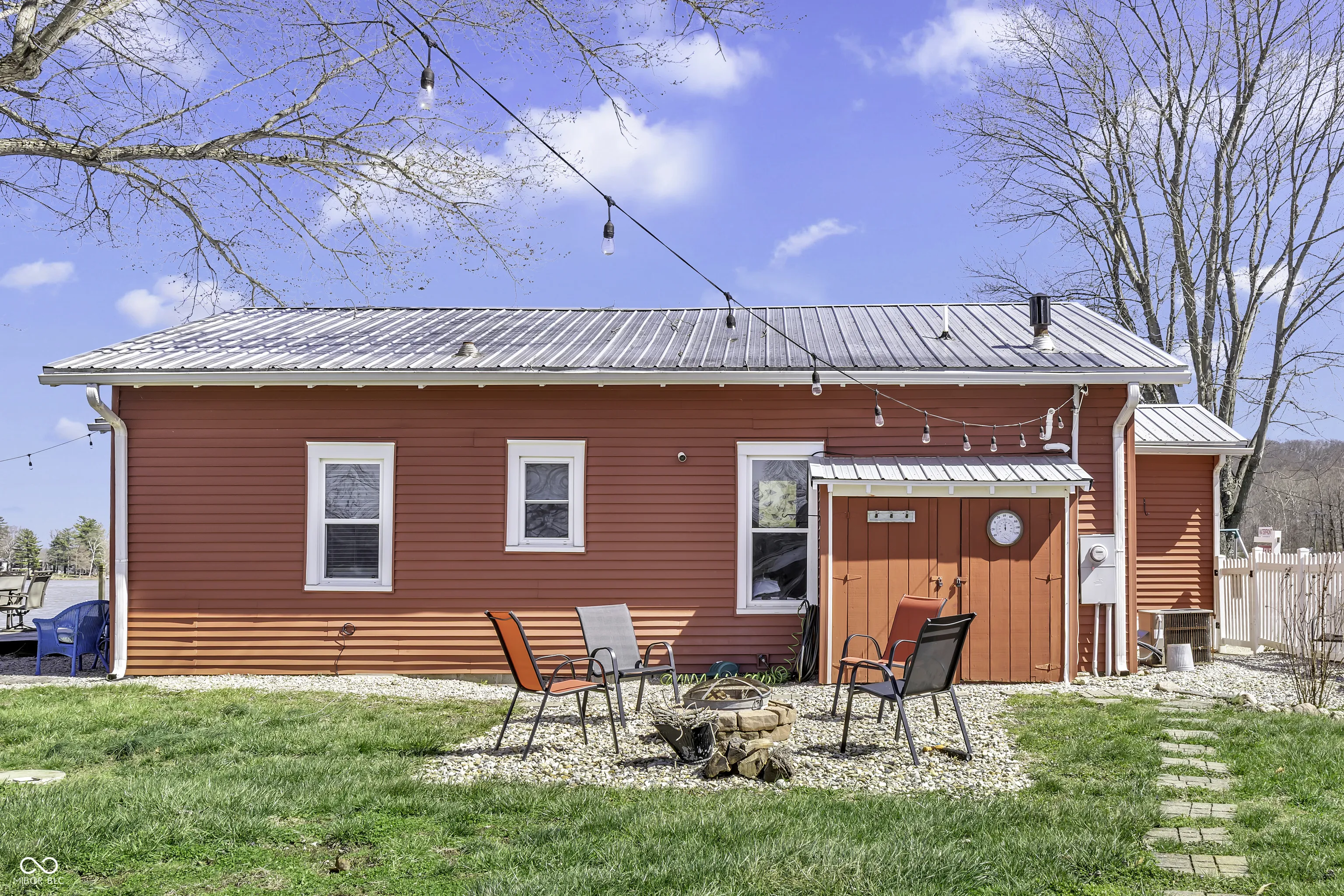 PRICE REDUCED! Experience true lakefront living on Lake Lemon, a 1650 acre lake in southern Indiana located just minutes from Bloomington. This waterfront cottage is positioned on a rare peninsula with panoramic 180 degree lake views and approximately 350 feet of deeded shoreline. Enjoy year round views of Lake Lemon from the living room, kitchen, dining area, and both bedrooms. Relax in the three seasons room or step out onto the spacious deck for outdoor entertaining. The property offers direct access to a swimming dock from the yard along with a private dock area that includes a concrete pad and a storage shed for boating and lake equipment. The home features two bedrooms with a shared Jack and Jill full bathroom along with a second full bathroom located off the kitchen. Updates include new flooring and paint in 2022 and a metal roof added in 2018. Additional amenities include an RV hookup and two extra storage sheds in the large driveway. This lakefront property offers one of the best lots on Lake Lemon and provides an exceptional opportunity to enjoy the lake lifestyle this spring.