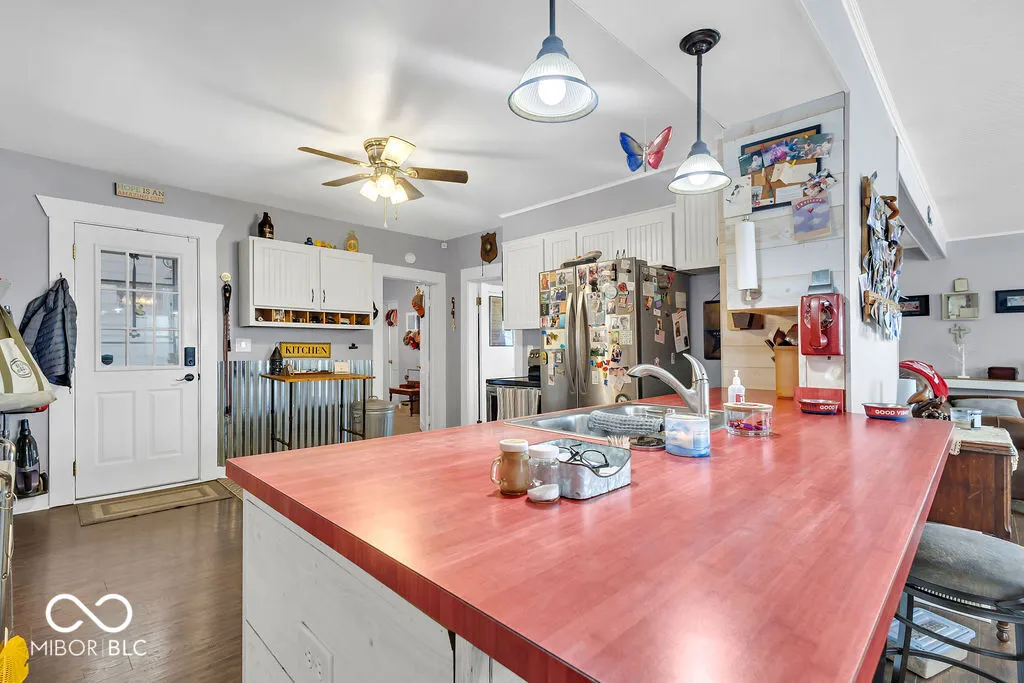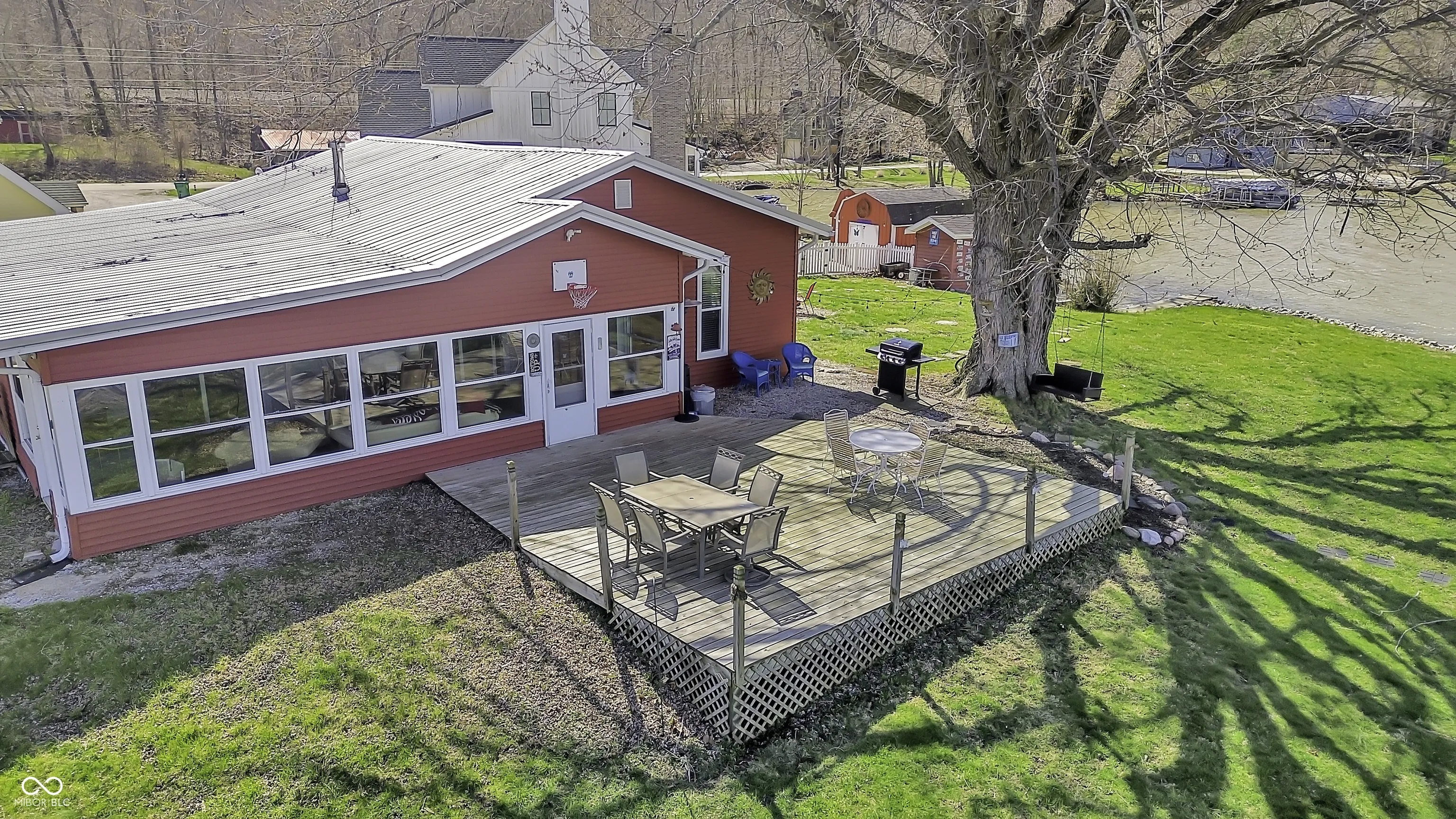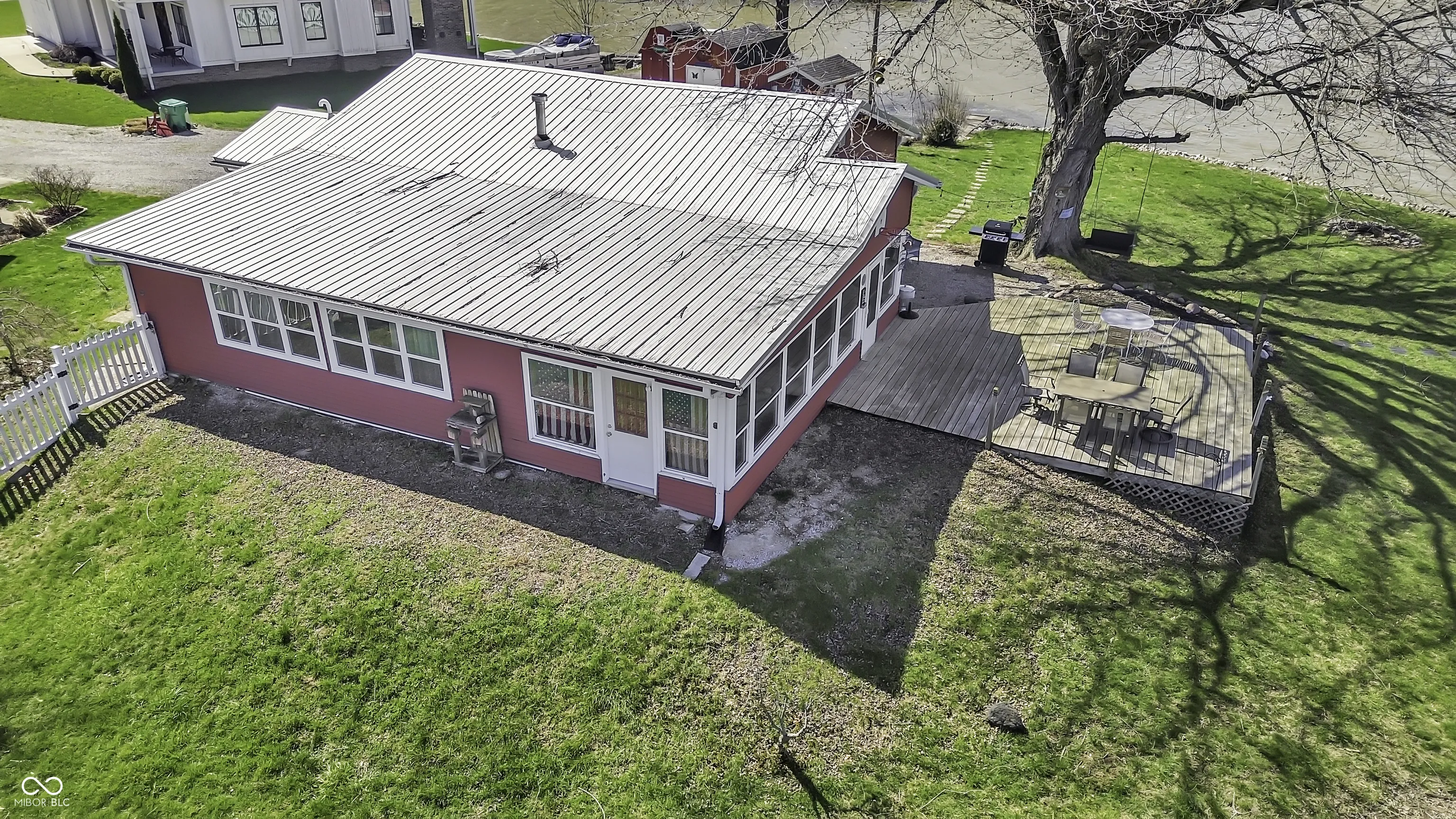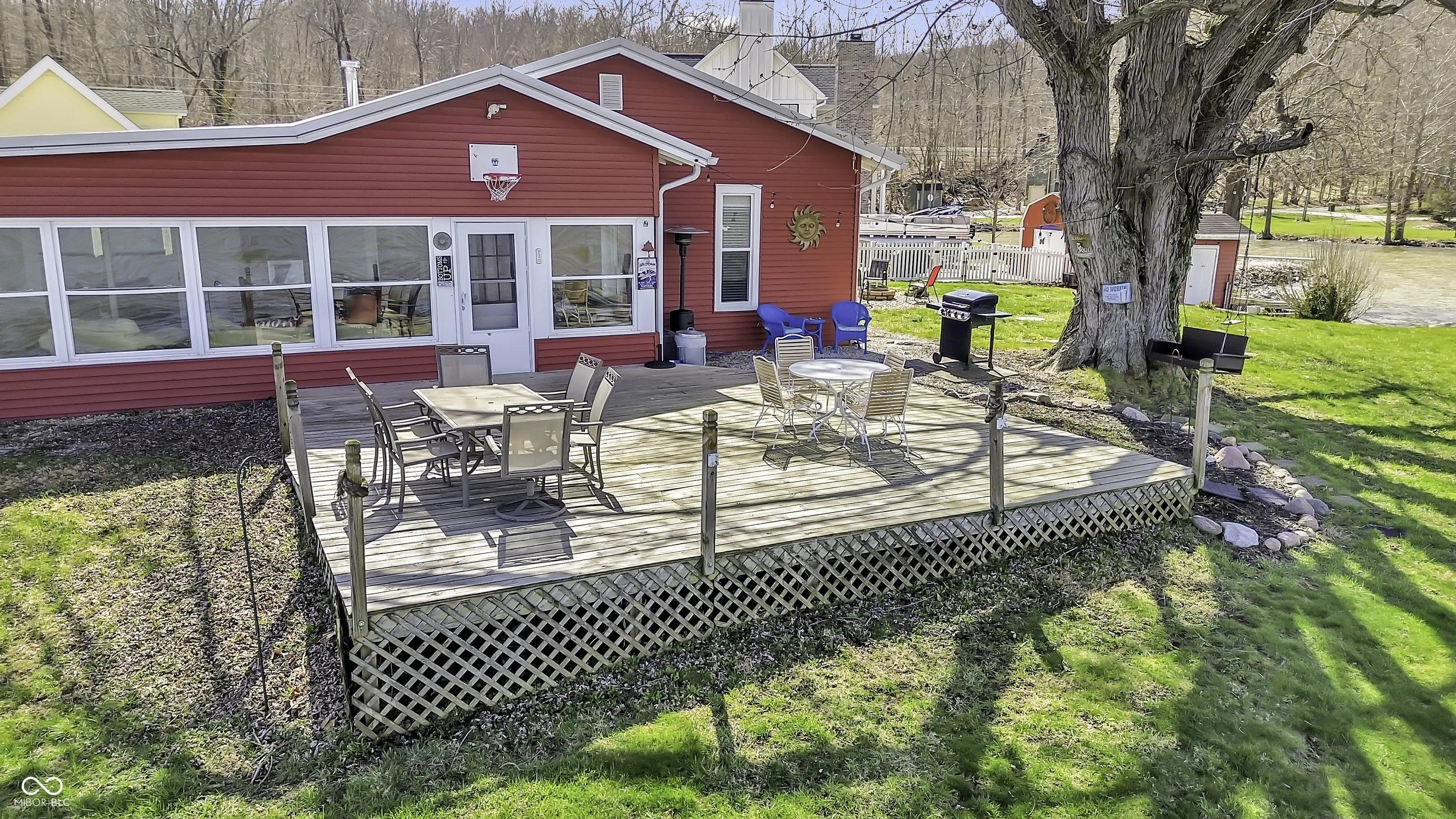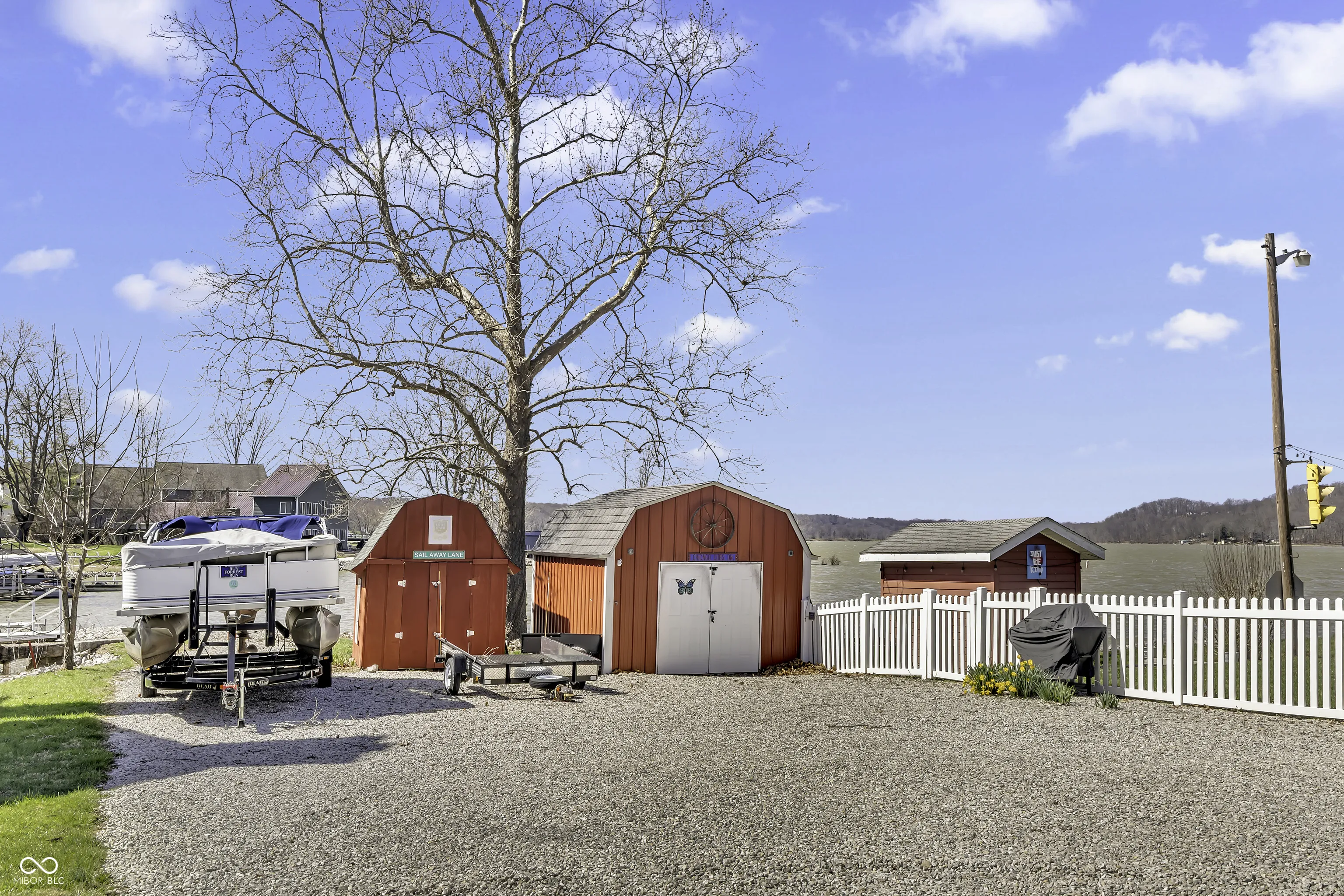 PRICE REDUCED! Experience true lakefront living on Lake Lemon, a 1650 acre lake in southern Indiana located just minutes from Bloomington. This waterfront cottage is positioned on a rare peninsula with panoramic 180 degree lake views and approximately 350 feet of deeded shoreline. Enjoy year round views of Lake Lemon from the living room, kitchen, dining area, and both bedrooms. Relax in the three seasons room or step out onto the spacious deck for outdoor entertaining. The property offers direct access to a swimming dock from the yard along with a private dock area that includes a concrete pad and a storage shed for boating and lake equipment. The home features two bedrooms with a shared Jack and Jill full bathroom along with a second full bathroom located off the kitchen. Updates include new flooring and paint in 2022 and a metal roof added in 2018. Additional amenities include an RV hookup and two extra storage sheds in the large driveway. This lakefront property offers one of the best lots on Lake Lemon and provides an exceptional opportunity to enjoy the lake lifestyle this spring.