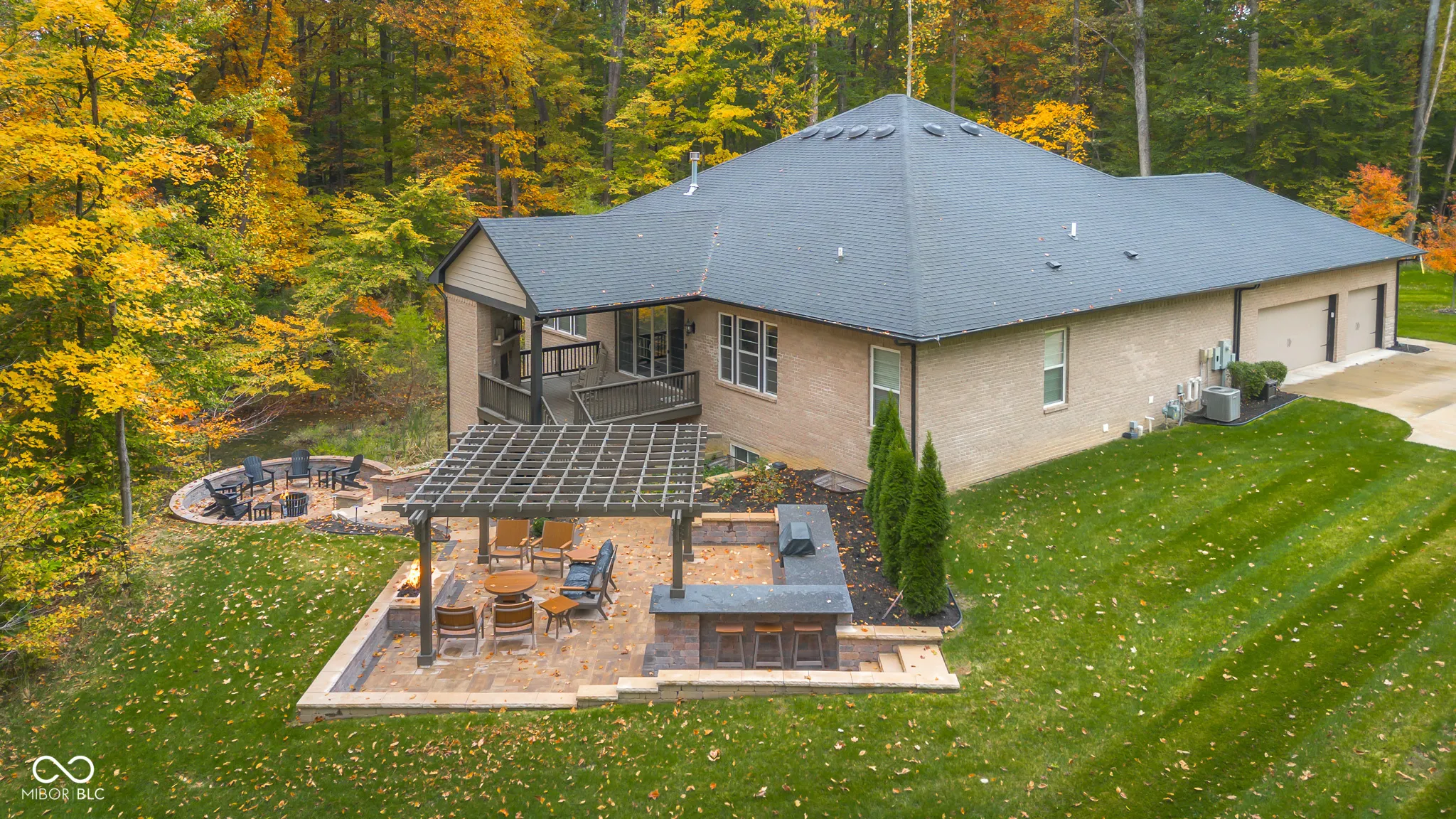 This is not your average “dream home”… this is a wow-from-every-angle kind of property. Set on just under 2 acres in the heart of Tipton, this one-owner, waterfront beauty delivers elevated design, thoughtful spaces, and a lifestyle that feels like a permanent getaway. Situated at the end of the cul-du-sac, the private wooded property spans 2 lots. Inside, you’ll find soaring ceilings, rich hardwood floors, and architectural details that instantly impress-exposed beams, a statement stone fireplace, and sun-filled living spaces that feel both grand and inviting. The open layout flows effortlessly, perfect for entertaining or everyday living done beautifully. The layout is equally impressive in function. Three generously sized bedrooms are located on the main level, each with its own private bathroom, offering comfort, privacy, and flexibility for family or guests. The lower level features an additional bedroom plus an exercise room that could easily be converted into a fifth bedroom, home office, or flex space to fit your needs. The primary suite is a true retreat, complete with a jaw-dropping, boutique-style walk-in closet with custom cabinetry, island storage, and space that feels straight out of a luxury showroom. Functional and fabulous. Step outside and prepare to relax. The backyard is pure magic: a pergola-covered patio, multiple built-in fire features, and a circular gathering space designed for long evenings, good conversations, and unforgettable moments. An outdoor gas fireplace on the elevated porch, one propane fueled fire pit, a wood burning pit and a built in gas grill give ample options for gathering. The outdoor kitchen is sure to be a favorite spot no matter the season! Surrounded by mature trees and peaceful water views, the setting feels completely private. This home isn’t just impressive-it’s intentional, serene, and designed for living well. Rare. Refined. Ready to be loved.
