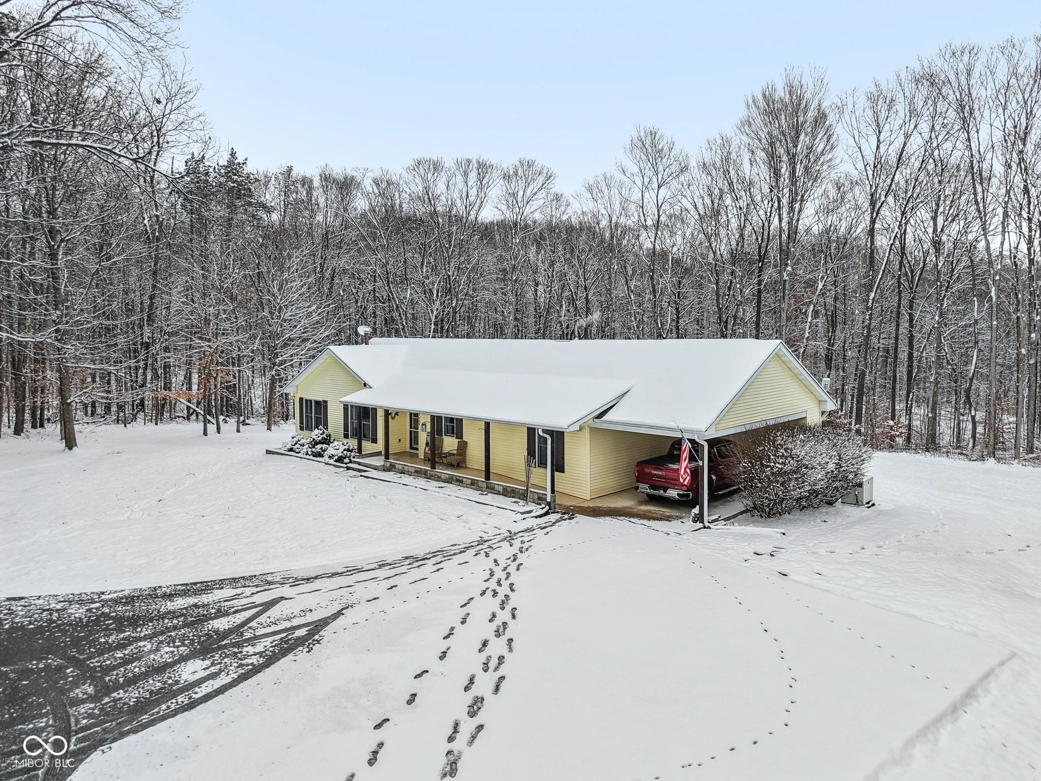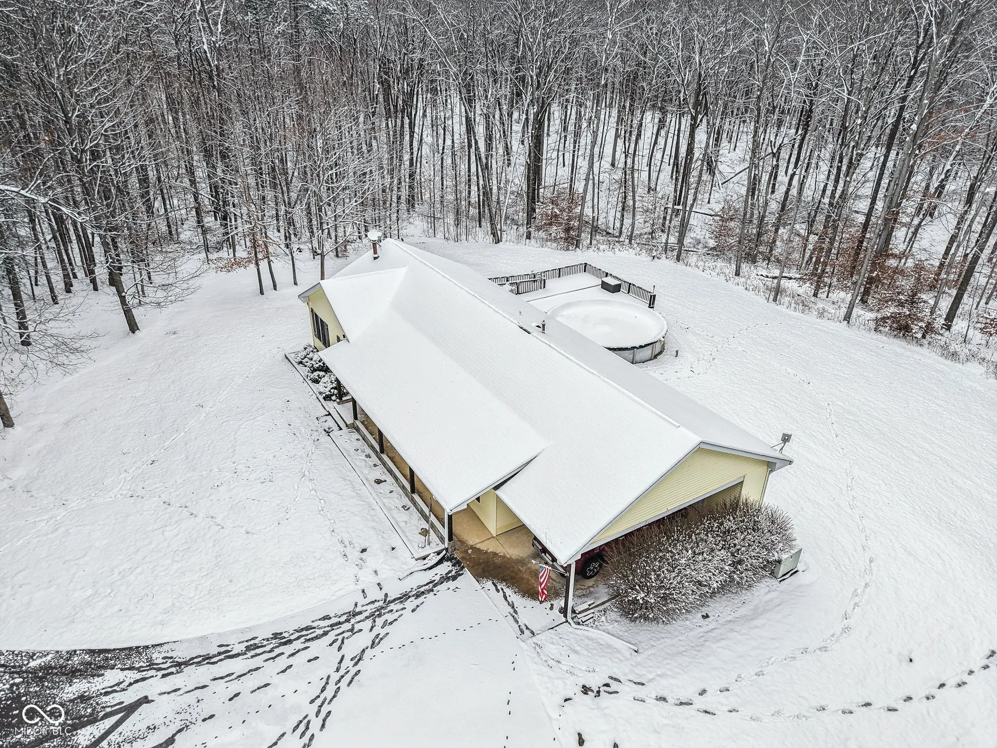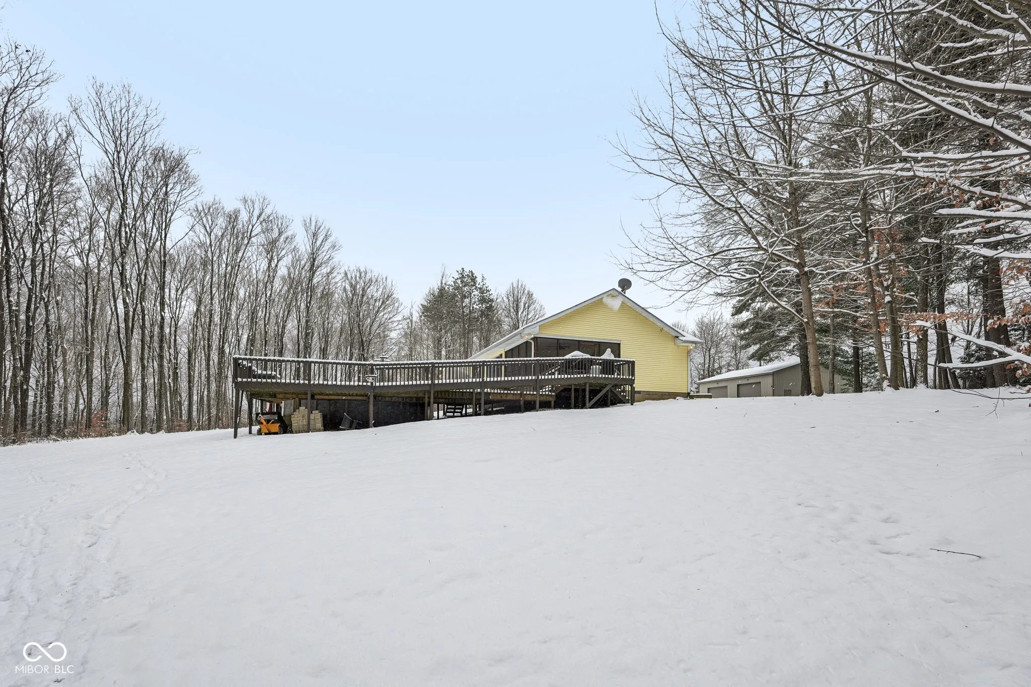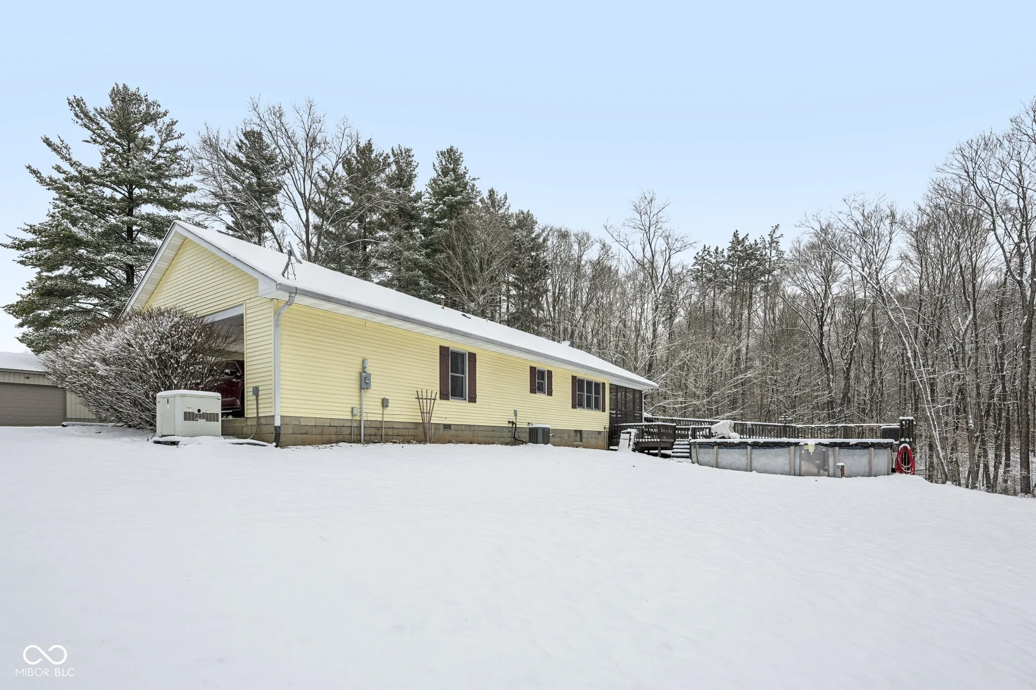 Welcome home to peaceful country living on 5 beautiful acres in Brown County. This charming 3-bedroom ranch is perfectly nestled among mature woods for outdoor enjoyment. Thoughtfully cleared trees allow just the right amount of sunlight to filter through, creating the perfect setting for relaxing on your expansive deck or enjoying the above-ground pool (new in 2022). The impressive 36×40 pole barn offers endless possibilities, featuring a finished interior with insulated walls and roof, 200-amp service, concrete floors, an automotive lift, built-in shelving, and 11-foot garage doors-ideal for hobbyists, storage, or a workshop. Start your mornings on the covered front porch or unwind in the screened patio, which is accessible from both the living room and the primary suite. The home showcases a beautifully remodeled kitchen (2021) with a center island, tile backsplash, stainless steel appliances, bar-top seating, and a built-in desk. Additional interior updates include newer flooring (2017) and a remodeled primary bathroom (2021) featuring a large tiled walk-in shower. Major updates provide peace of mind, including a tankless water heater (2022), HVAC (2020), roof (2021), water softener (2022), and paved driveway (2022). The home is wheelchair accessible and includes all appliances, plus a generator for added convenience. Outdoor features continue with a cozy firepit and a potting shed for gardening enthusiasts. This serene property blends comfort, functionality, and outdoor adventure-schedule your showing today and experience it for yourself.