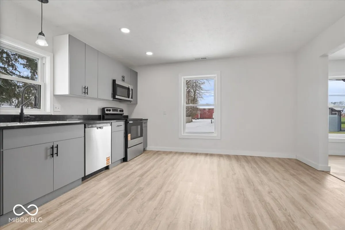 Nestled at 223 Union St, this FULLY RENOVATED single family home blends 1930 charm with thoughtful modern updates. Step onto the inviting front porch and into a refreshed interior featuring new flooring, new paint, new siding, and a new HVAC system that supports year round comfort, and a new metal roof! Inside, you have a large living room to relax in, as well as a standout kitchen with soft close shaker cabinets, Quartz countertops, and new s/s appliances With two comfortable bedrooms providing peaceful retreats, complemented by two full bathrooms that make daily routines smooth, this home checks all the boxes With 1278 square feet of interior living space on a nice sized lot lot, this home offers room to relax without overwhelming upkeep. A rear deck creates a sunny outdoor hangout for grilling or unwinding, while the detached garage adds convenient storage for cars, tools or hobbies. Move in and enjoy this beautifully renewed space ready for its next chapter.