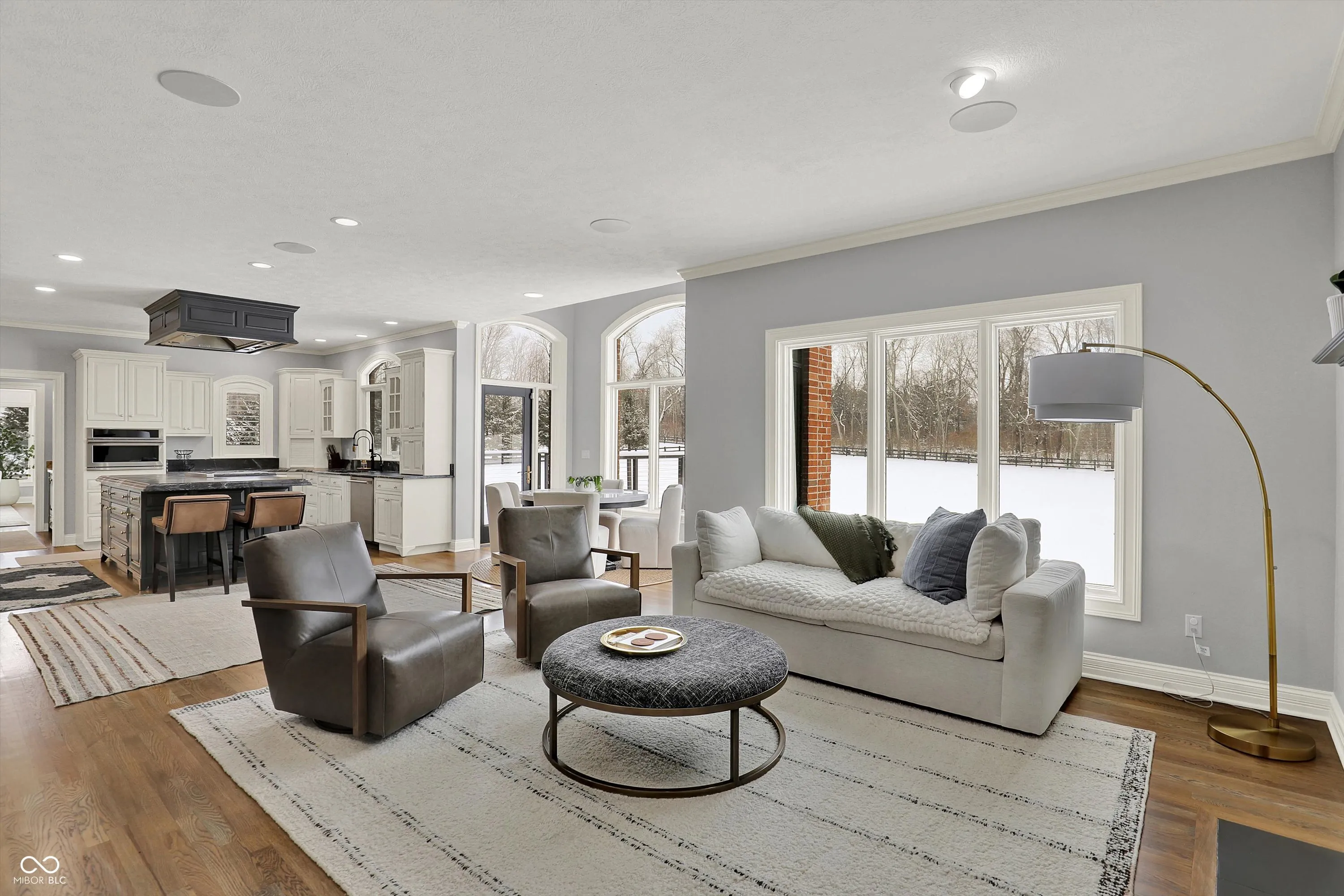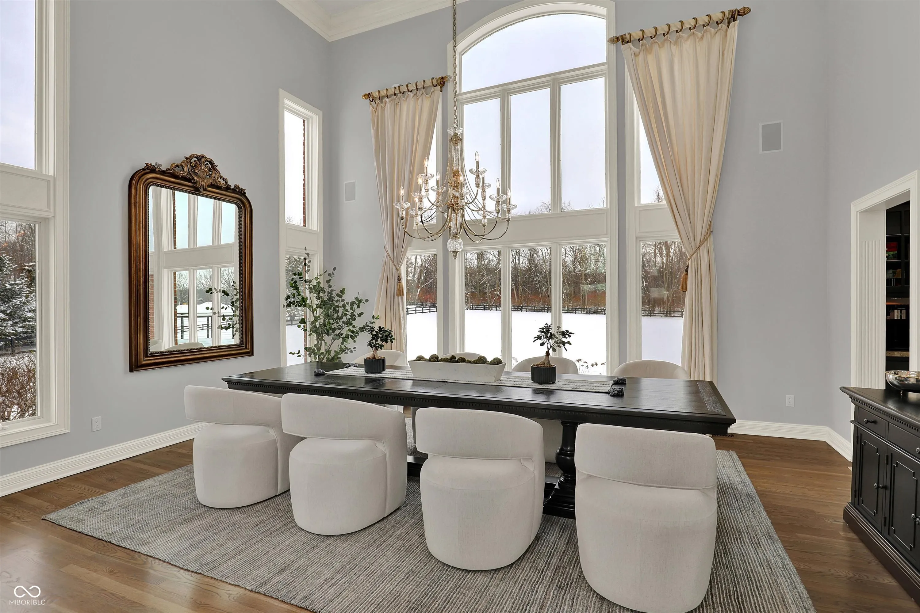 Properties on “THE MANSION MILE” rarely come to market! This special estate offers 5+ FENCED-IN ACRES / 7518 SQ FT / 4 FIREPLACES / DUAL LAUNDRY ROOMS / DUAL 3 CAR GARAGES / WALKOUT BASEMENT / TWO KITCHENS / WHOLE HOUSE GENERATOR / SEVERAL UPDATES / HSE SCHOOLS. Located off sought after E. 113th St, follow the long, winding driveway to this magnificent property. Guests are welcomed by a gorgeous 18′ tall entryway w/custom iron spindles & open to a parlor w/built-ins, fireplace & hidden passageway to a stately office w/pocket doors, built-ins & wood paneling. A grand living rm features an 18′ ceiling, fireplace, wall of windows & open to an elegant dining rm, spacious enough for large gatherings w/access to a butler’s pantry that leads to a fully equipped gourmet kitchen w/SS appliances, center island, plenty of cabinet/counter space, HUGE WI PANTRY & a breakfast nook w/access to an exterior TREX deck & a welcoming hearth rm w/custom built-ins & gas fireplace + large laundry rm & mud rm! Dual staircases lead to an upper level featuring a remarkable owners suite w/tray ceiling, separate 12×12′ sitting rm w/pocket doors, a new luxurious spa bathroom w/sep vanities, an unbelievable 7′ tiled WI shower w/ multiple heads, AIR TUB (garden tub w/bubbles) & a “dressing room wing,” featuring a 20×18′ WARDROBE SUITE w/access to a 19×10′ flex rm (perfect for a dressing room, 2nd office or exercise space)! The WALKOUT LOWER LEVEL offers a 19×17′ billiards rm (or family rm) w/fireplace, a 2nd FULL KITCHEN, spectacular theater rm, three bedrooms, two full bathrooms & 2nd laundry rm! Huge lower level patio! The home offers a heated 3 car attached garage + heated DETACHED 3 CAR GARAGE w/FINISHED 31×14′ BONUS RM (perfect for a play area, yoga studio, office, cigar lounge, craft area, work shop)! Too many updates to list!! You will love the location; close to shopping, dining, entertainment, schools, parks, Geist Reservoir, miles of paved trails & interstate access.