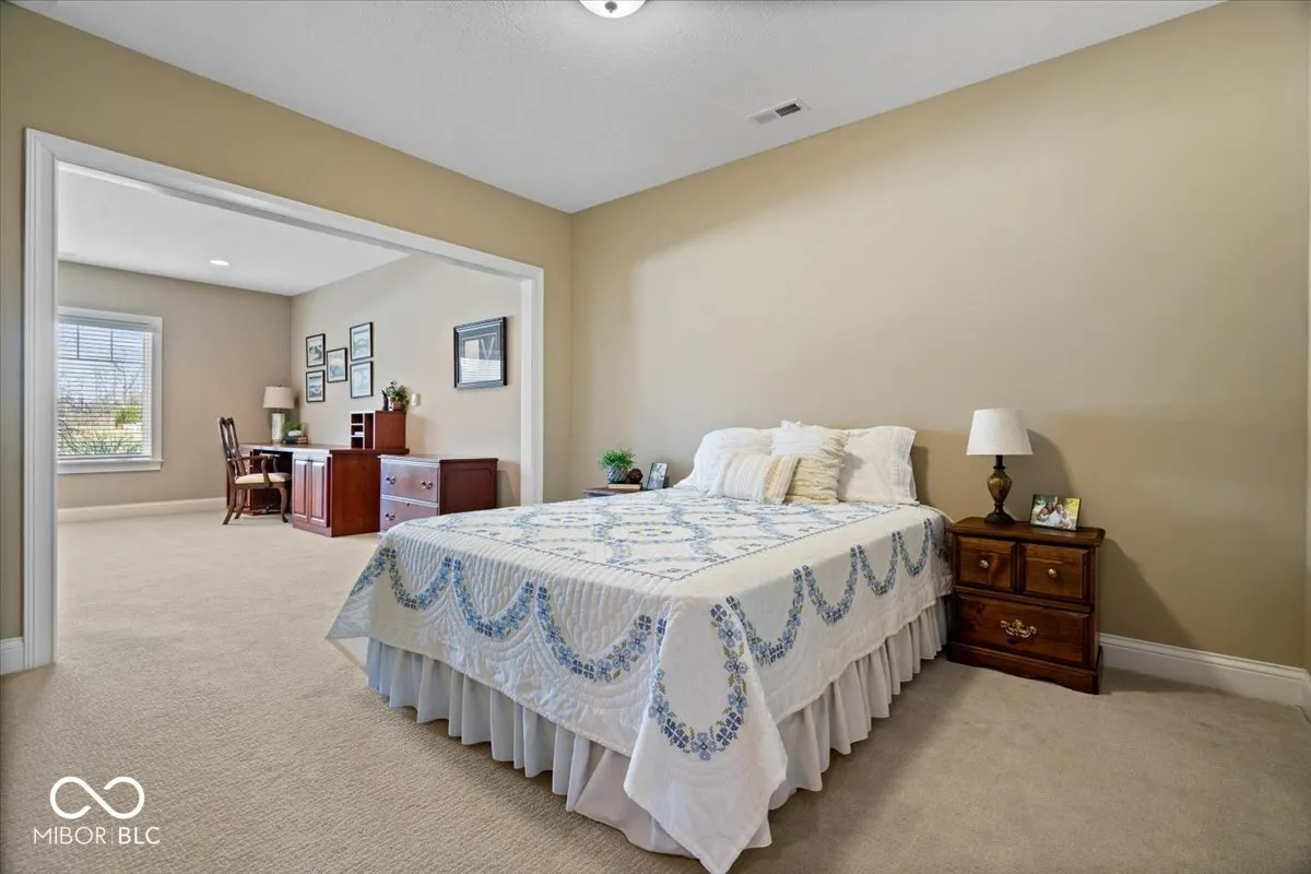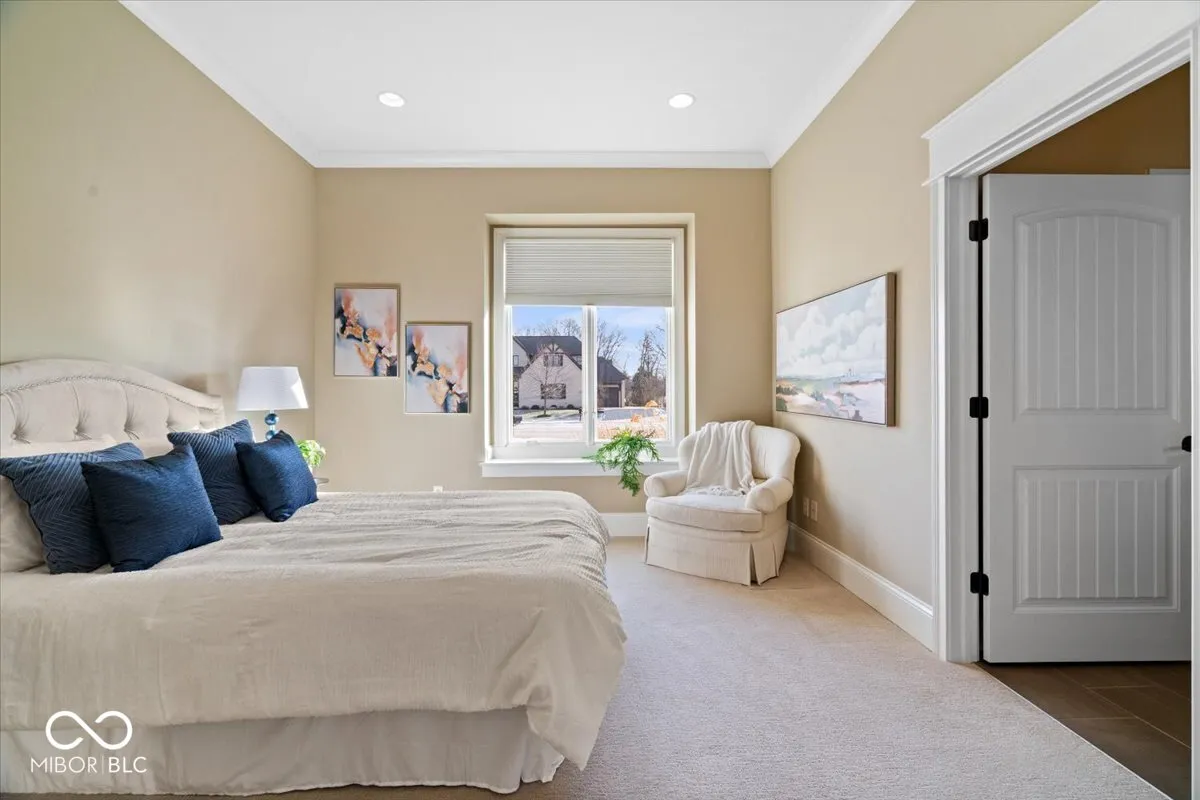 Welcome to luxury living in this desirable ranch home with over 6000 sq. ft. offering 2 spacious main level bedroom suites and 2 bedroom suites in the walk-out lower level. Custom features throughout the home elevate the design – plus an elevator makes this residence truly special. The gourmet kitchen and dining area offer style and functionality making it the perfect gathering spot for family and friends. You will love the grand living room with 12 ft. ceilings showcasing a wall of windows to let in natural light and spectacular views. True craftsmanship is showcased in all the trim & molding details. The hearth room features a spectacular stone fireplace and the library/den has gorgeous floor to ceiling built-in bookshelves. Retreat at the end of the day to the spacious primary suite with lavish bathroom and expansive walk-in closet. The lower level family room is perfect for a cozy evening in front of the fireplace or entertaining a large group. The well-appointed wet bar area features a gorgeously crafted gathering table where lots of memories are sure to be made. The flexible floorplan also includes a huge space perfect for a workshop, home gym, theater room or the opportunity to create a unique space that fits your lifestyle. Step outdoors and continue to be wowed with professional landscaping surrounding the property with plantings that bloom throughout the year. A stone stair pathway leads to the backyard showcasing a spacious patio and serene rock waterfall feature. Enjoy sunsets and a woodland pond view from your upper level covered porch featuring trex decking, a gas fireplace and retractable screen. Pride of ownership is evident in this home – enjoy peace of mind with yearly HVAC and elevator maintenance, yearly irrigation and yard maintenance, fresh exterior paint in 2024, and a brand new water softener.