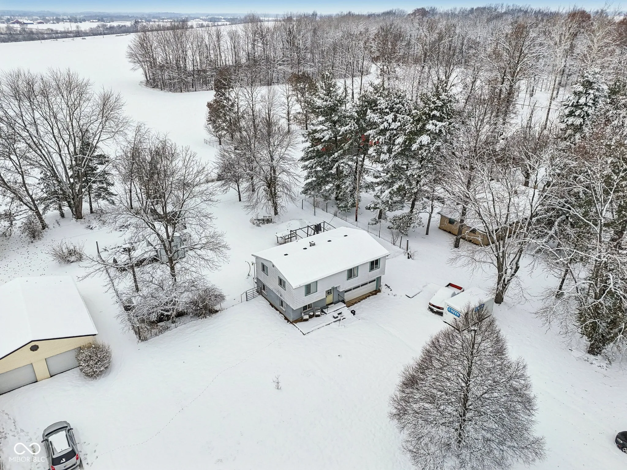 Set on nearly one acre in Fairland, this beautifully updated bi-level home offers 4 bedrooms, 2.5 baths, and 1,520 sq ft of comfort and style, featuring hardwood flooring throughout the living room, dining room, and bedrooms. A split-system heat pump installed in 2021, a 50-gallon electric water heater added in 2025, a whole-house electronic water descaler, and a new pressure tank (2021) provide modern efficiency, while new windows (2020-2023) and a new well pump (2023) deliver peace of mind. The kitchen showcases stainless appliances updated between 2022-2025, a filtered water pot filler, and convenient access to the partially fenced backyard. Outdoor amenities include a sand filter pump and saltwater system added in 2025, plus both small and large chicken coops wired for electricity-ideal for hobby farming and country living. Additional upgrades include a new insulated garage door and opener (2024) and a roof installed in 2016. With a 2-car attached garage and a serene rural setting, this property blends modern updates with the privacy and space today’s buyers seek in Indiana countryside living.