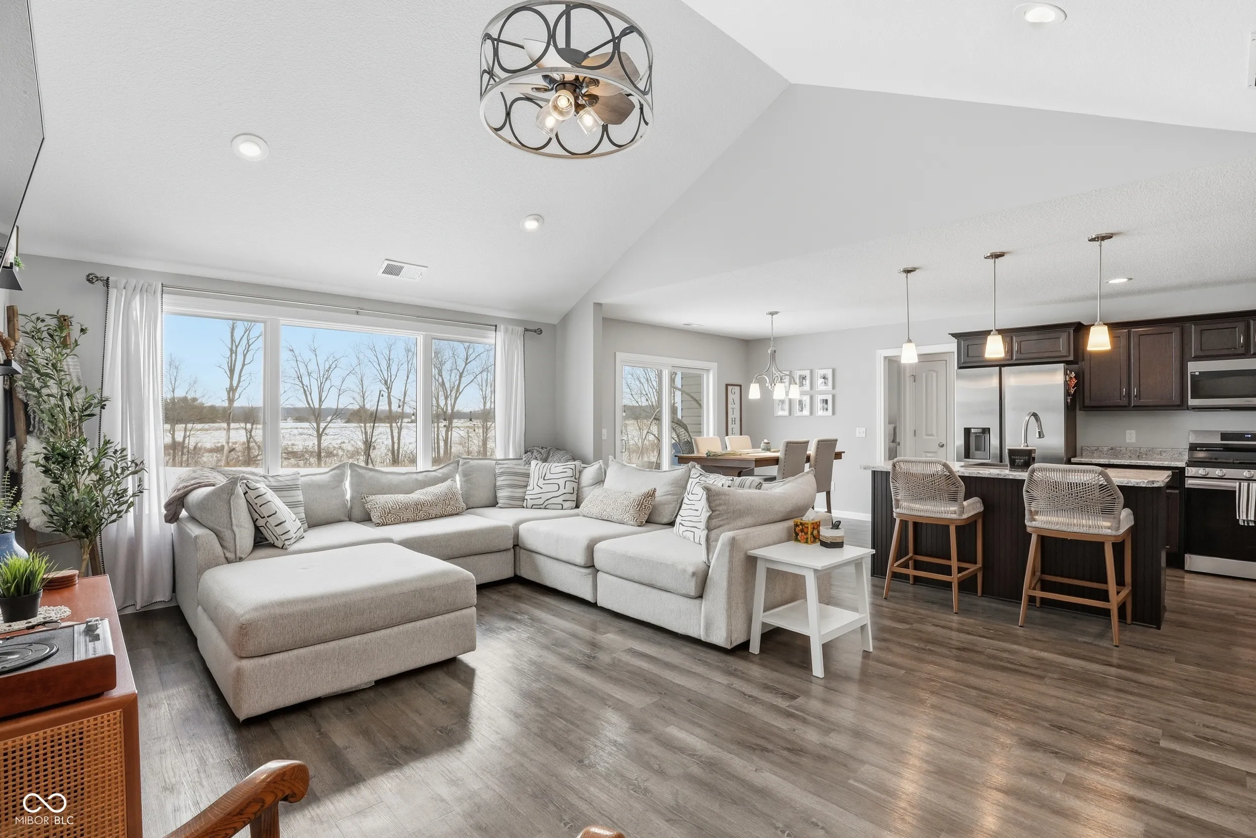 Gorgeous ranch style home built in 2023, located in the beautiful Brownstone Manor, offering 1,445 square feet of thoughtfully designed living space with 3 bedrooms and 2 full baths. This inviting home features a spacious family room that flows effortlessly into the island kitchen and dining area. The kitchen is equipped with stainless steel appliances, upgraded premiere cabinetry, and a pantry-perfect for both everyday living and entertaining. The owner’s suite includes inverted tray ceilings, and a generous sized walk-in closet. Bedrooms two and three are located on the opposite side of the home, ensuring privacy for all. Relax on the back porch while enjoying a beautiful pond view directly behind the lot. The two-car garage completes the home. Conveniently located close to shopping, walking paths, and great restaurants.