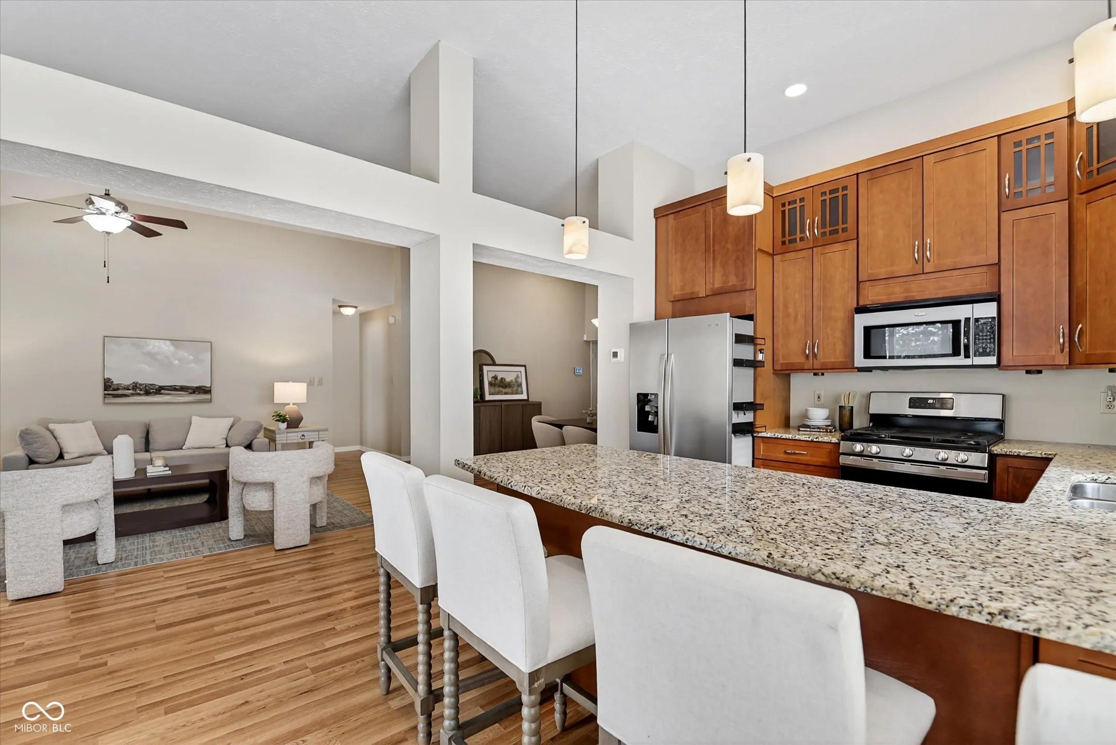 Welcome home to this thoughtfully updated, single-level retreat featuring vaulted ceilings, an open-concept layout, and a coveted waterfront lot with serene pond views. Start your mornings with coffee-or unwind in the evenings with a glass of wine-on the spacious screened-in porch overlooking the water. The large primary suite offers brand-new carpet, a generous walk-in closet, and a stunning ensuite bath complete with a gorgeous walk-in shower, double vanity, and dramatic, light-filled vaulted ceilings. The handsomely updated kitchen showcases granite countertops, abundant cabinetry, and stainless steel appliances, including a new gas range (2024). A striking electric fireplace (2022) anchors the impressive living area, creating a warm and inviting focal point. Major mechanical upgrades include a new furnace and A/C (2023), plus new siding and exterior paint (2025). A full list of improvements is available in the supplements. Located just minutes from Geist and Castleton, this charming Pinesprings home offers rare availability in a highly desirable community. Don’t miss your chance-schedule your showing today!