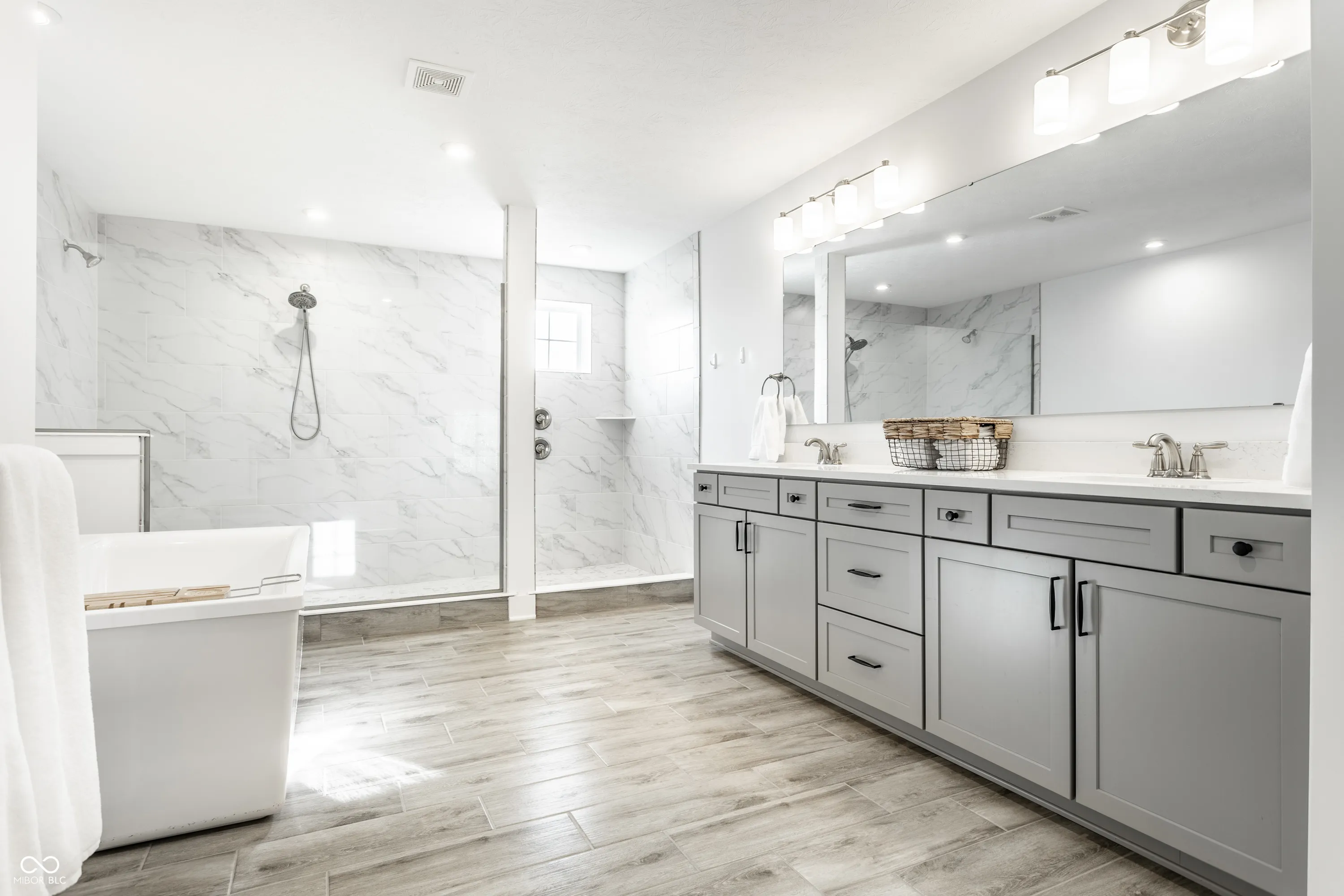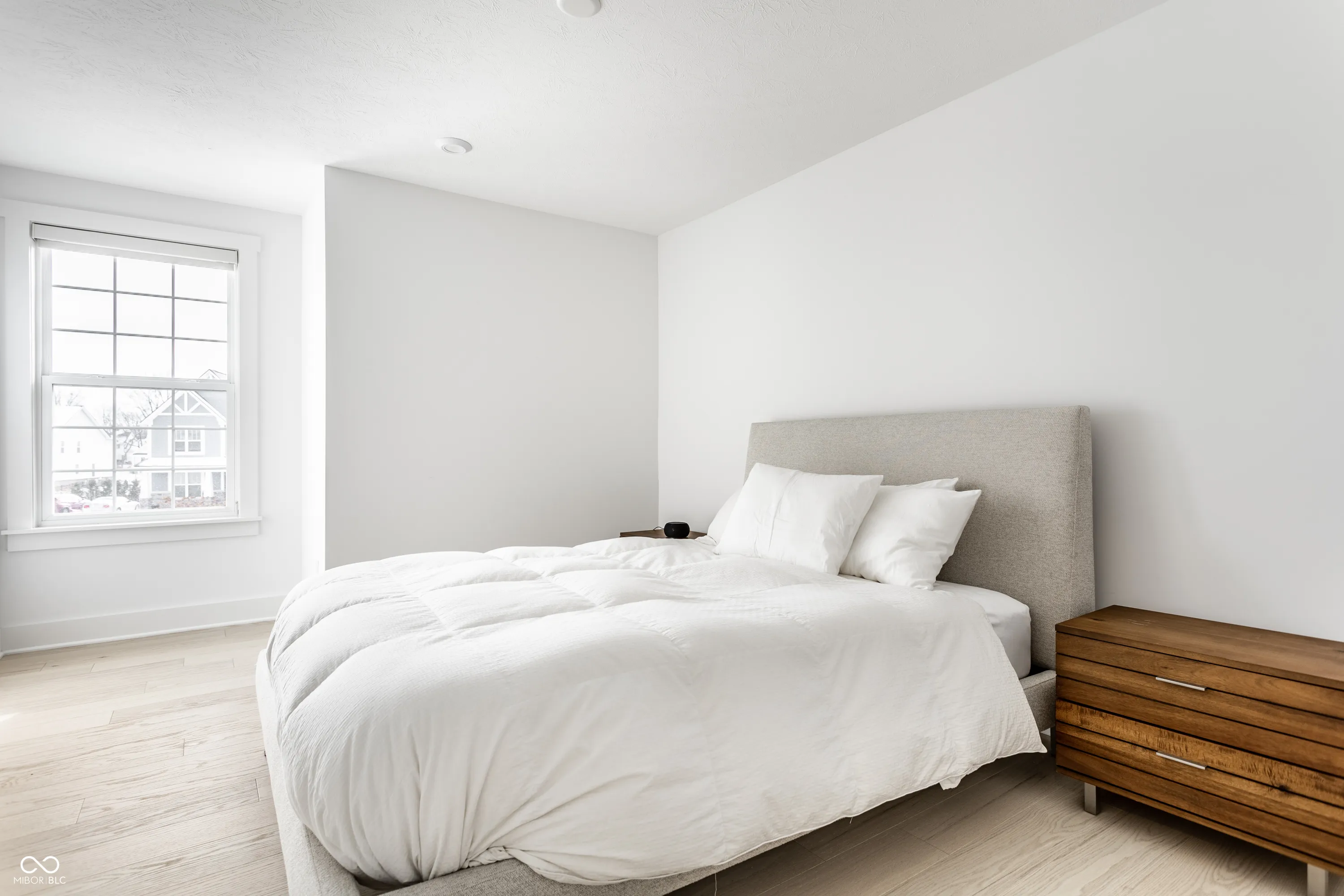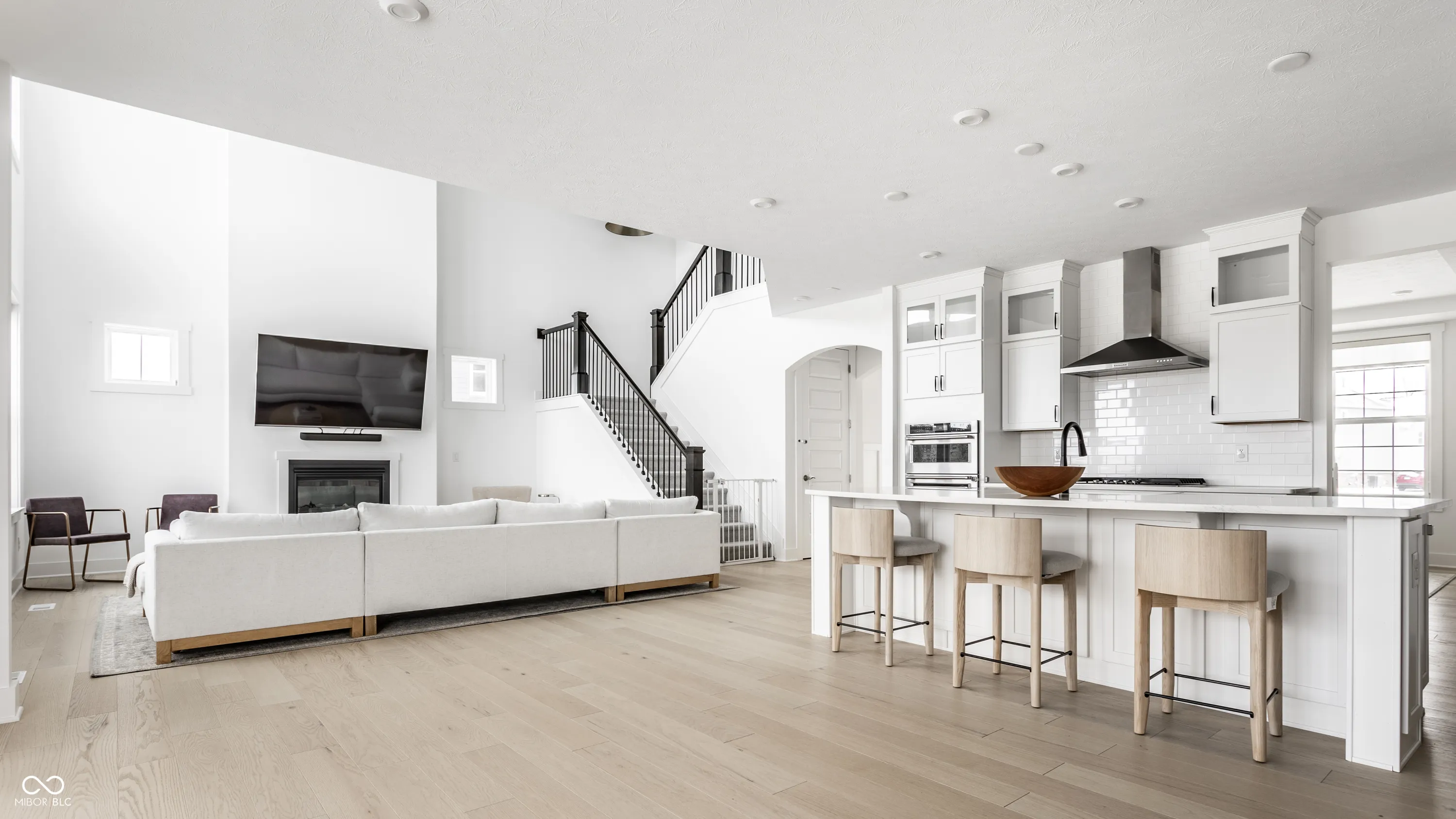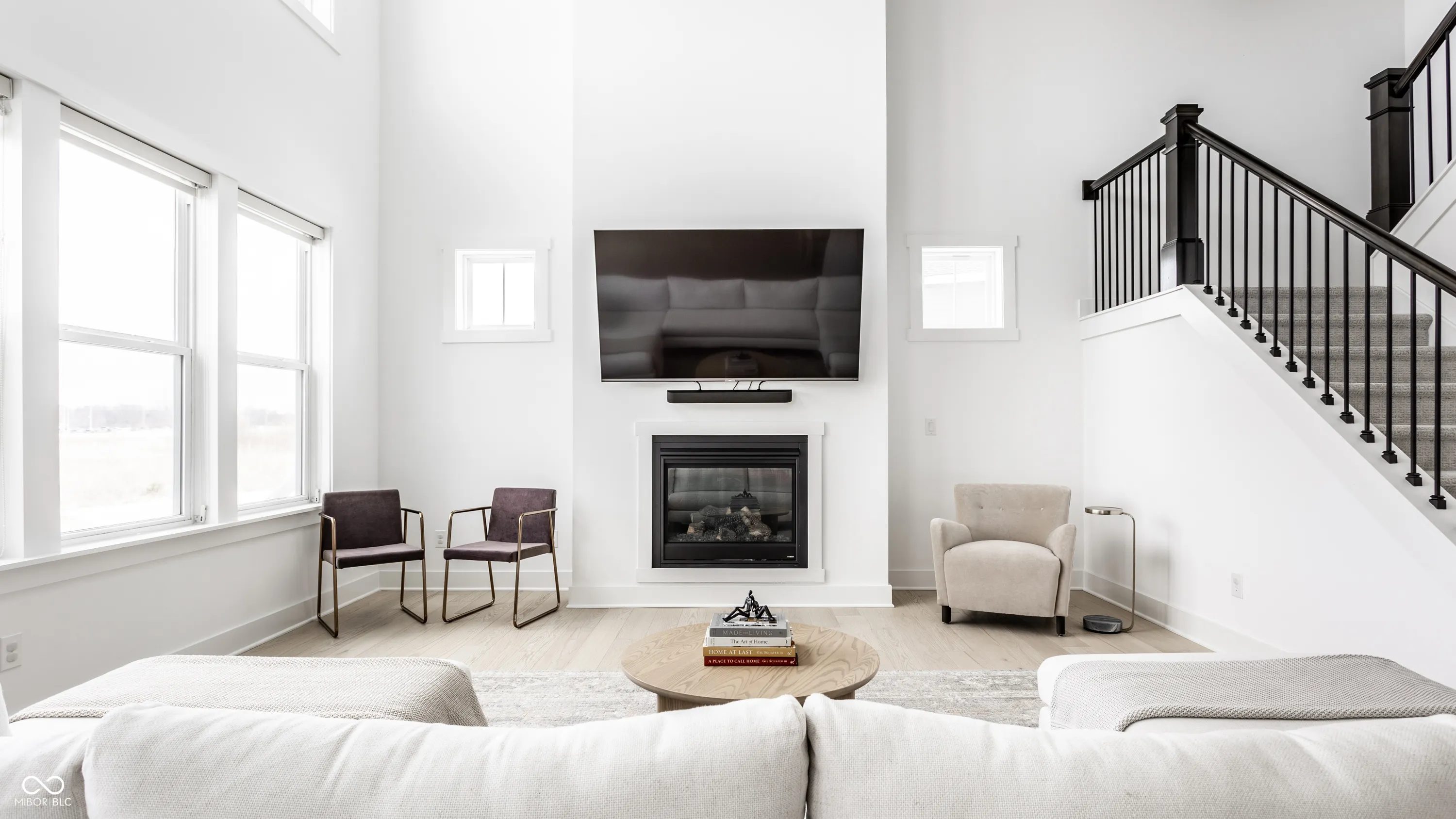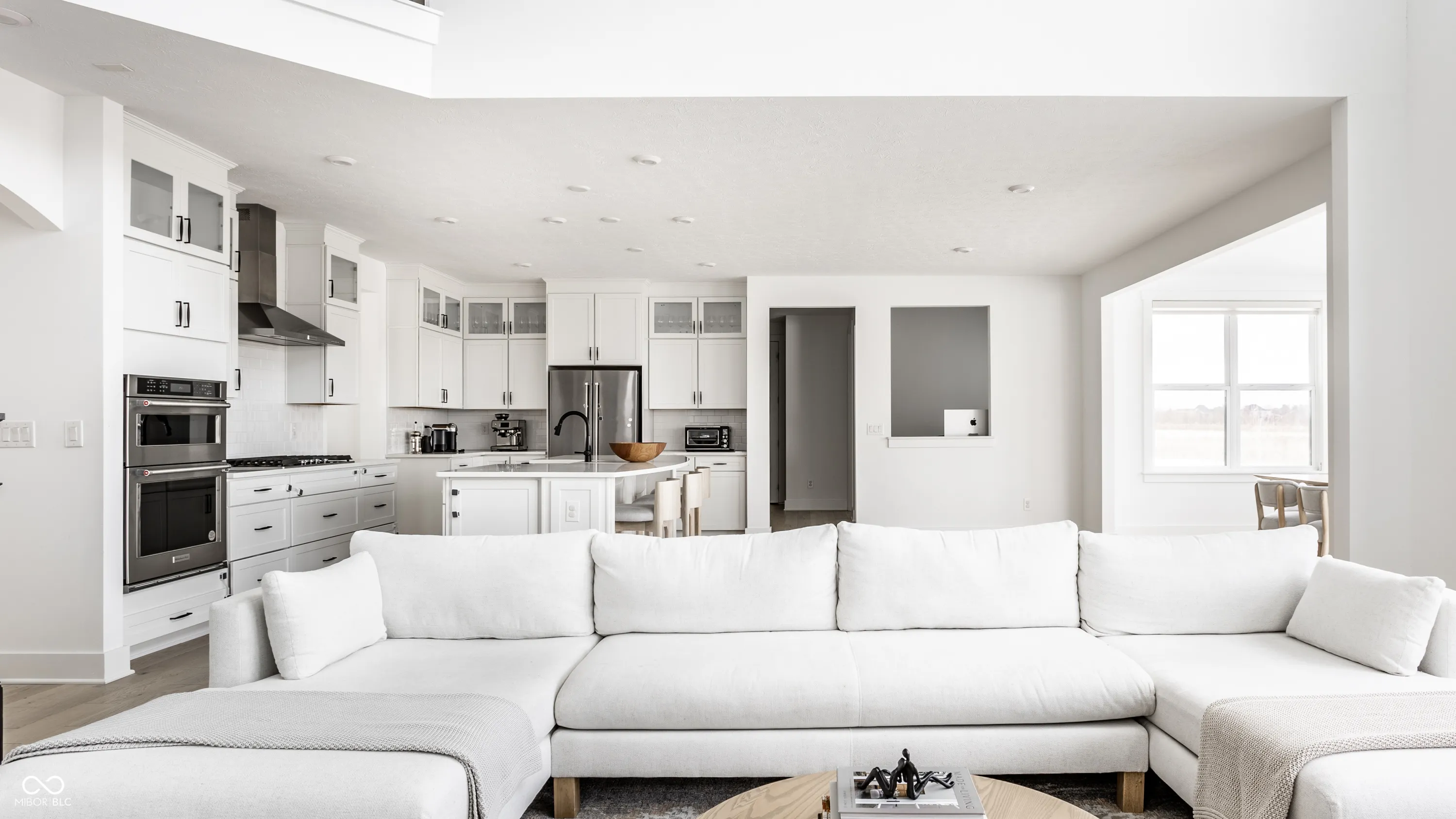 Exquisite Modern Luxury in the Heart of West Carmel. This nearly-new 4-bedroom, 3.5-bath residence (built in 2022) sits on a .43-acre lot with serene, unobstructed backyard views in the award-winning Carmel Clay Schools. Inside, clean modern design is elevated by white oak engineered hardwoods throughout the main and second floors, a breathtaking two-story great room with a wall of windows, designer lighting, and premium Hunter Douglas window treatments. The gourmet kitchen impresses with an oversized island, high-end KitchenAid appliances, a Kohler farmhouse sink, and kitchen cabinetry with uppers. A sunroom-currently used as a dining room-adds warmth and versatility to the main level. Thoughtful upgrades continue with extensive California Closets installations (pantry, study, nursery, and a dream-worthy primary suite closet) and Solidcore doors on both levels. The luxurious primary suite offers a spa-like retreat with a Kohler freestanding tub, expansive dual-showerhead shower, and comfort-height vanities. A newly finished basement provides additional space for recreation, fitness, or media. Additional premium features include a 75-gallon water heater, radon mitigation system, and a full-yard irrigation system. A rare offering where modern luxury, refined selections, and an exceptional West Carmel location come together-beautifully move-in ready and truly special.