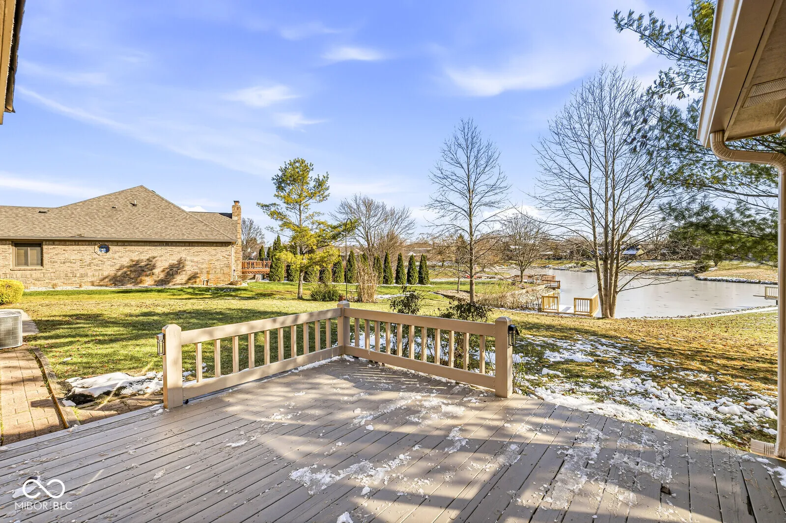 Stunning fully updated 4BR/4BA home overlooking a peaceful pond with a NEW dock! Nearly every surface has been improved. A true move-in-ready experience! All walls, ceilings, trim, and doors are freshly painted and NEW flooring throughout-LVP on the main level, basement, and upstairs hall; Stonescape LVP in baths/laundry; sculpted bedroom carpet; and designer stair carpet. The home has all NEW lighting and matte black Schlage hardware on solid-core six-panel doors. The gorgeous NEW kitchen includes soft-close cabinetry, black hardware, quartz countertops, composite sink, new faucet/disposal, and a 9′ island with seating. Thoughtfully designed storage features roll-out trays, spice pull-out, pot/pan drawer, lazy Susan, dual trash bin, and a coffee station. NEW Samsung stainless appliances include a flex-zone refrigerator, 5-burner convection/air-fry gas range, stainless-tub dishwasher, and microwave. All bathrooms feature NEW soft-close vanities with quartz tops, black faucets, push-pop drains, under-mount sinks, and black-framed mirrors. Major mechanical updates include a NEW Carrier 96% efficient furnace and AC, duct cleaning, plus NEW Watco water softener and iron filter. Exterior improvements include siding/trim repairs, full exterior painting, a NEW 4×8 covered front porch with tapered columns, and NEW rear atrium door. The partial basement includes a finished bedroom and full bath with a large unfinished area for future rec space. Additional features include an oversized 3-car garage, sitting room off the owner’s suite, screened porch, rear deck, intercom system, 42″ masonry fireplace with gas lighter, and full brick wrap on the main level. A beautifully updated home with premium finishes and laid-back outdoor living!