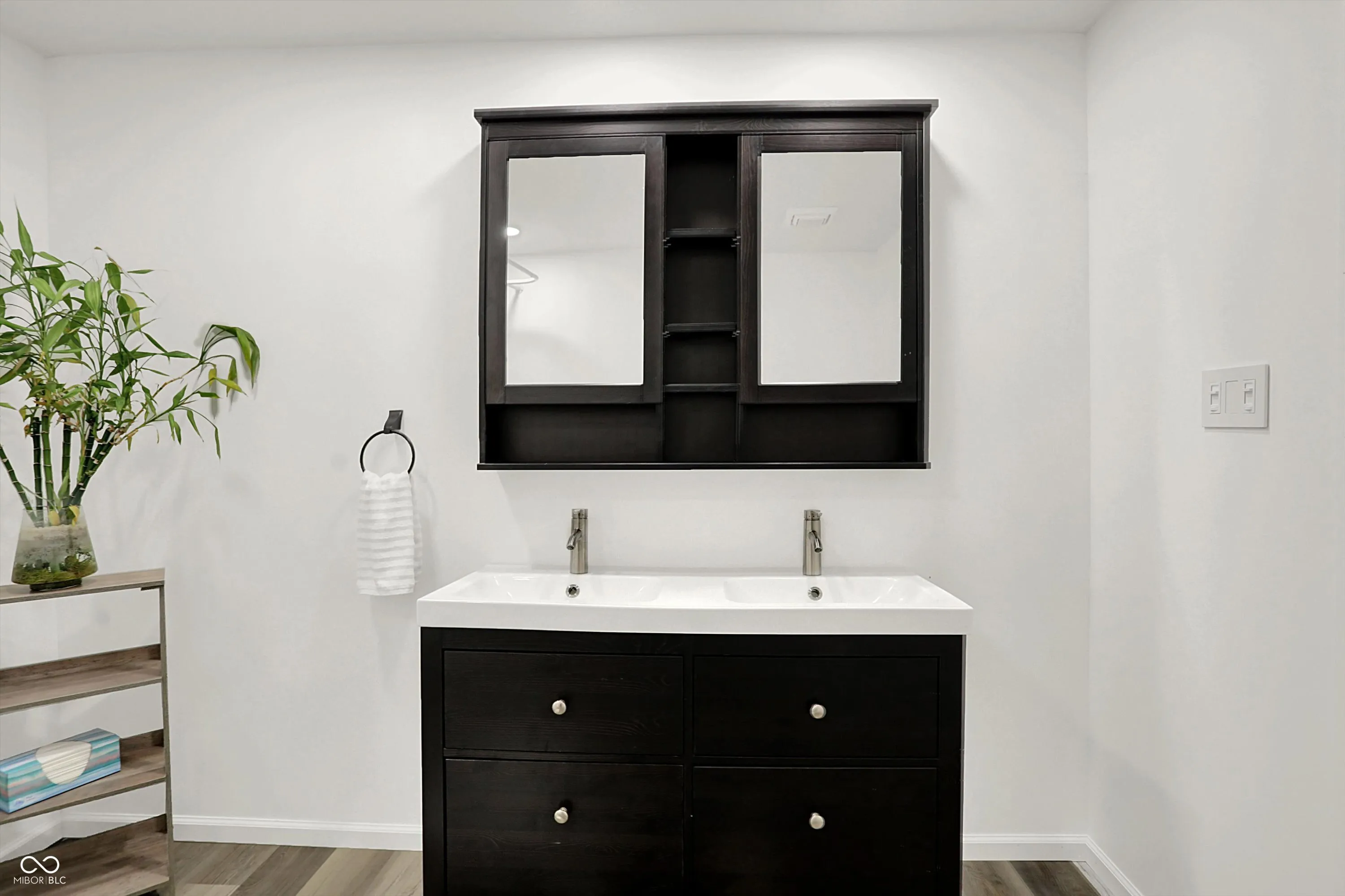 Nestled across two parcels totaling nearly an acre, with a peaceful creek running through, this beautifully updated 4-bedroom, 2.5-bath ranch blends country charm with modern comfort. Every inch of this home has been thoughtfully renovated. From the brand-new roof and city water line, to the large finished basement and stunning new kitchen. While the living room and secondary bedrooms offer the beautiful original mid-century wood flooring, the rest of the main level utilizes brand new vinyl plank to give fresh and durable flooring. The brand new 21’x16′ primary bedroom leads to a HUGE en-suite featuring a large bath and double vanity designed for relaxation. Downstairs, the finished basement offers nearly 1,500 sq ft of flexible living space, complete with new 6×6 structural supports, an interior French drain, new sump with backup, and a large egress window for natural light and safety. Other major updates include a new AC and electric heat pump, new water heater, a full kitchen remodel, new poured driveway and walkway, and a new natural retaining wall by the creek. The property also includes a brand-new 30’x20′ pole barn garage – perfect for vehicles, boat storage, or a workshop space. Enjoy the best of rural living with quick access to city convenience – just 30 minutes to downtown Indianapolis, 10 minutes to Martinsville, and 30 minutes to Bloomington. This is a home where everything has been done – all that’s left is to move in and enjoy.