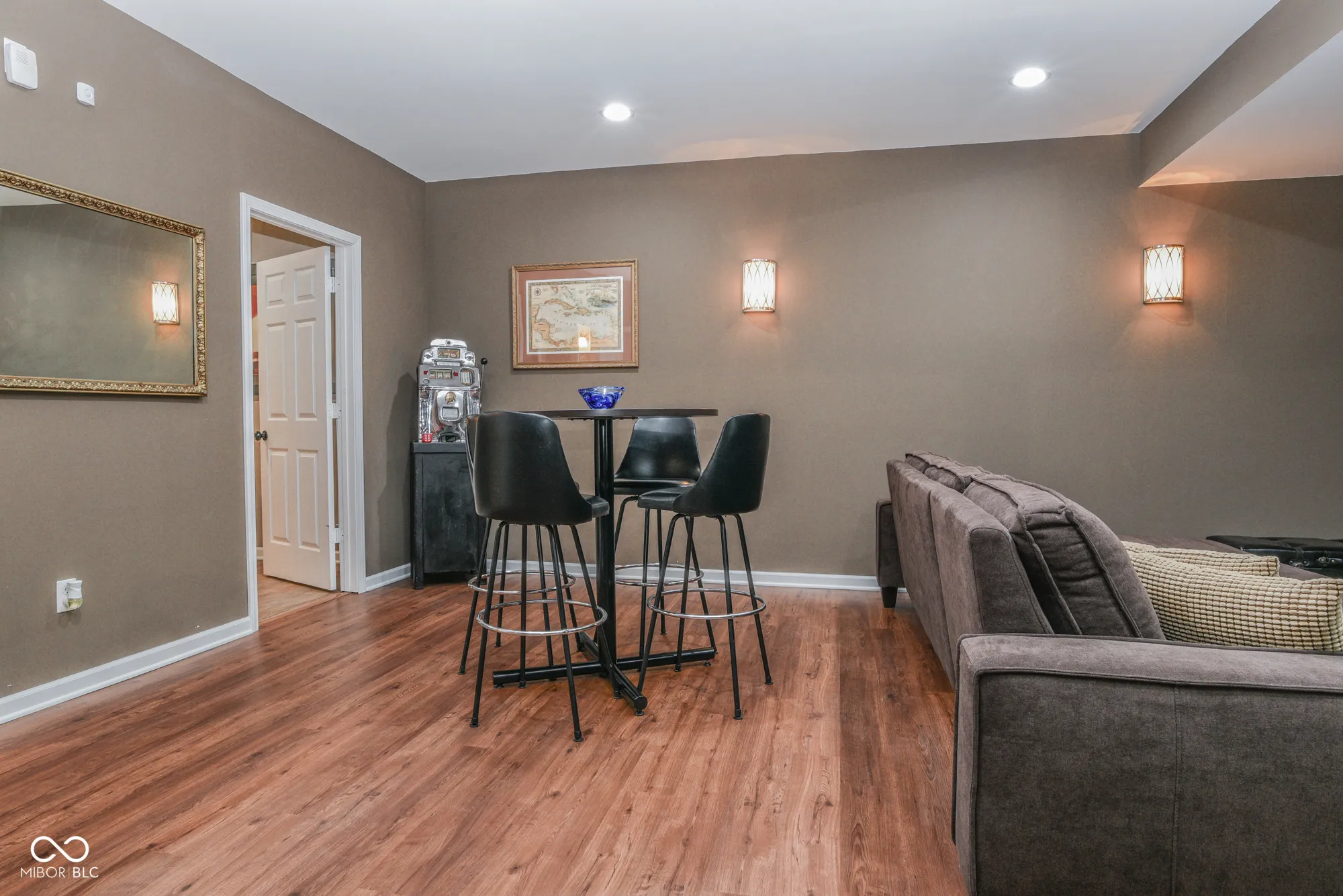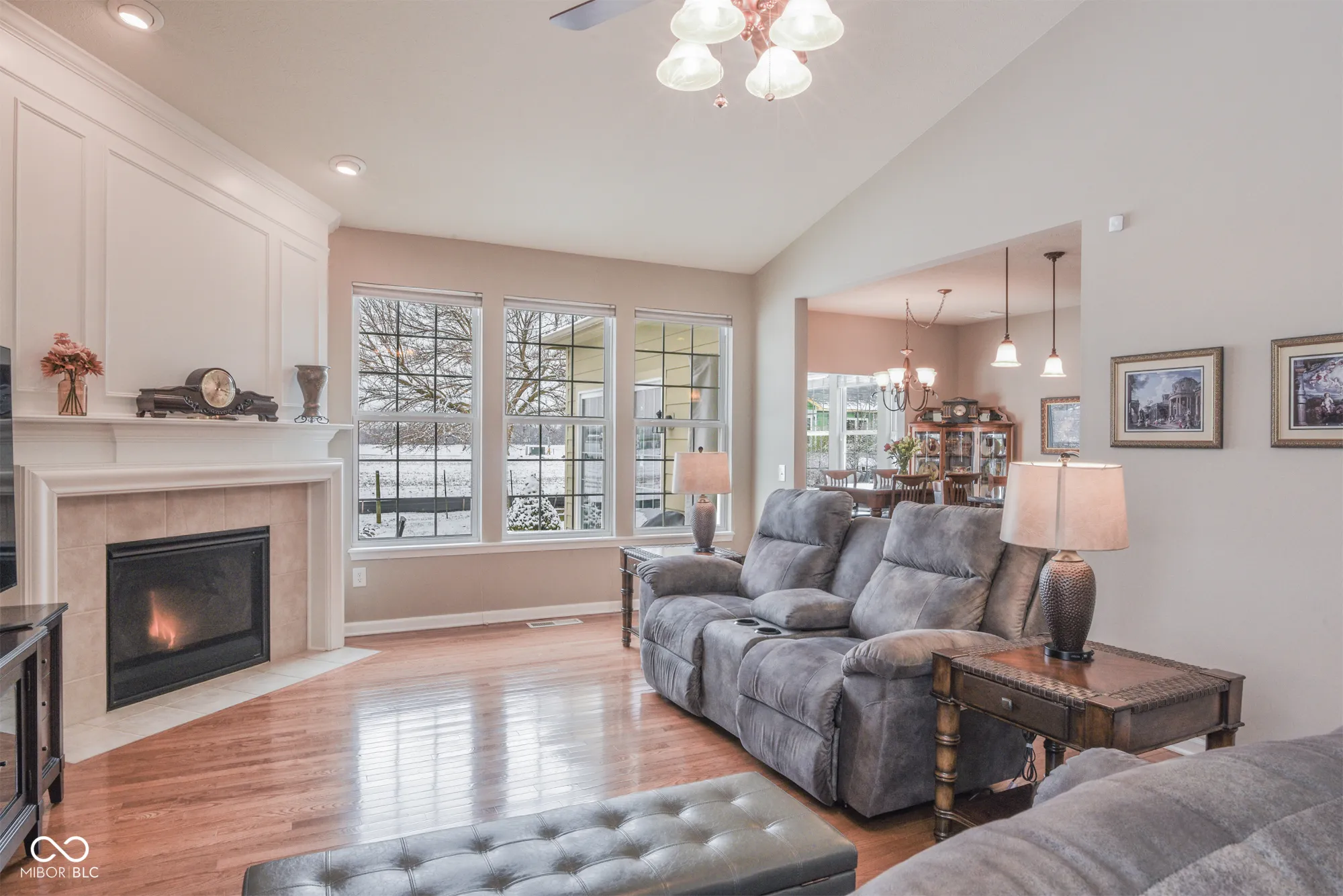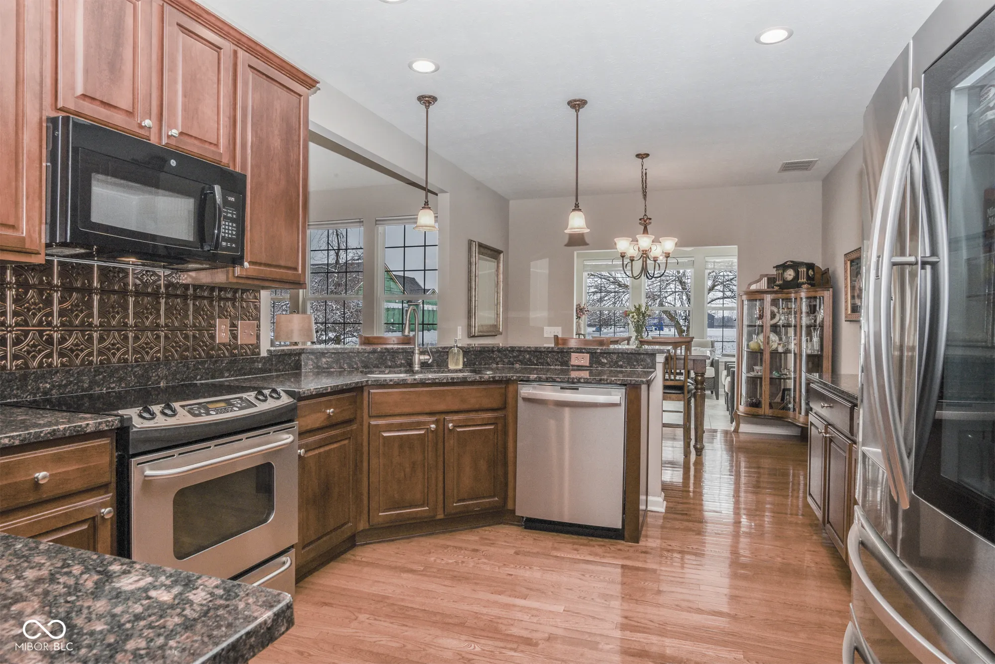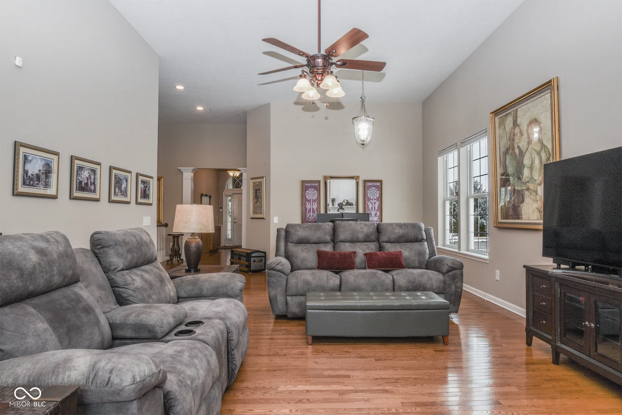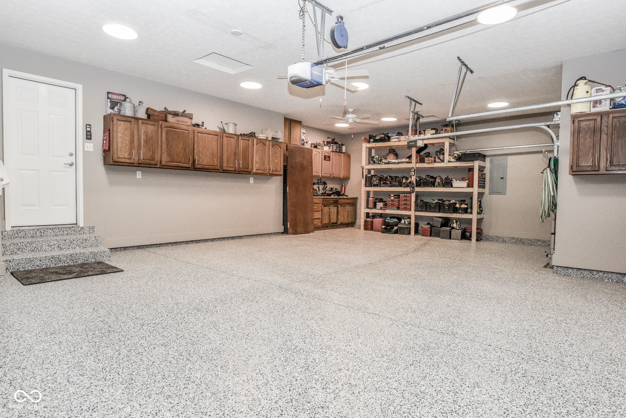 This former, Pulte show-home has been meticulously maintained and upgraded by homeowner who retired from owning his own construction company. Large ranch with finished basement & 3-car garage in very desirable neighborhood. Adjacent to a small common area with easy access to extensive neighborhood walking trail system, the outside of this property offers extensive professional landscaping, newer back patio, covered front porch, brick & concrete composite siding, leaf guards, ring door-bell & cameras with DVR system. Once inside you’re met by an impressive foyer with crown & neck molding as well as wainscoting. Upgraded ceiling fans, light fixtures & recessed lights abound. Flooring throughout most of the main-level is hardwood. Raised ceilings grace the large great room with tons of natural light & fireplace with gas logs. Kitchen features raised-panel 42″ cabinets with crown molding and hardware, granite counter tops (including breakfast bar), pantry & stainless appliances (including refrigerator with door that lghts up to display contents). Owner’s suite boasts cathedral ceilings, newer hardwood floors and completely redone bath with tiled shower and floors, comfort-height dual sinks, water closet with bidet, linen closet and large walk-in-closet with hardwood floors and automatic light. Main-level laundry comes complete with washer, dryer, cabinets & utility sink. Oversized 3-car garage is spectacular with POLY-UREA floors, cabinets, counters, shelves, LED lights, fans and openers. Finished basement boasts a large great room, flexible office space, huge workshop (with egress window – thus could be turned into 5th bedroom if desired), 4th bedroom with large walk-in-closet, full bath with custom tile shower & large utility/storage room with water-softener & tons of built-in shelves. Furnace, A/C & water-heater all new in past 3 years. Desirable neighborhood with ponds, trails, basketball, tennis, swimming pool, playgrounds & large common areas