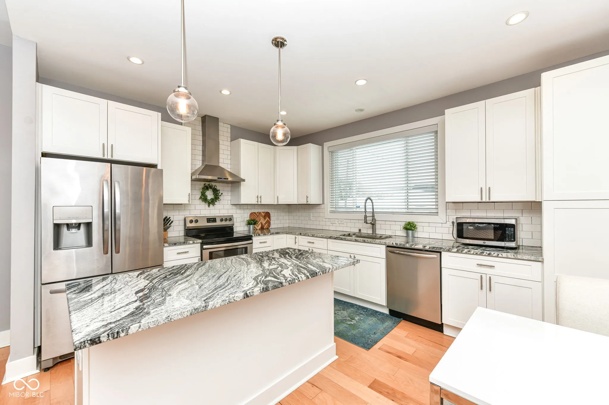 Beautifully renovated down to the studs, this gorgeous home has high-end finishes throughout! Featuring 3 beds | 2.5 baths, this home is located in the heart of Bates-Hendricks and just minutes from Fountain Sq, amazing restaurants, and shopping! As you enter the property, handscraped engineered hardwood flooring throughout the main level, oversized windows offer tons of natural light! Neutral paint throughout, and primary ensuite located on the main level. Kitchen features granite countertops, soft closing shaker cabinetry, ceramic tiled backsplash and all stainless appliances are included! Open floorplan offers great space for entertaining. Main level primary suite features: walk-in closet, large bathroom, marble flooring,amazing custom floor to ceiling subway tiled shower, and large double vanity with granite countertops. All bedrooms have walk in closets. Huge privacy fenced in backyard includes concrete pad for outdoor dining or relaxation, oversized 2 car garage with an additional gravel parking space for guests or storage. You will not find this level of craftsmanship anywhere else. Bring your pickiest buyers, it checks all the boxes!