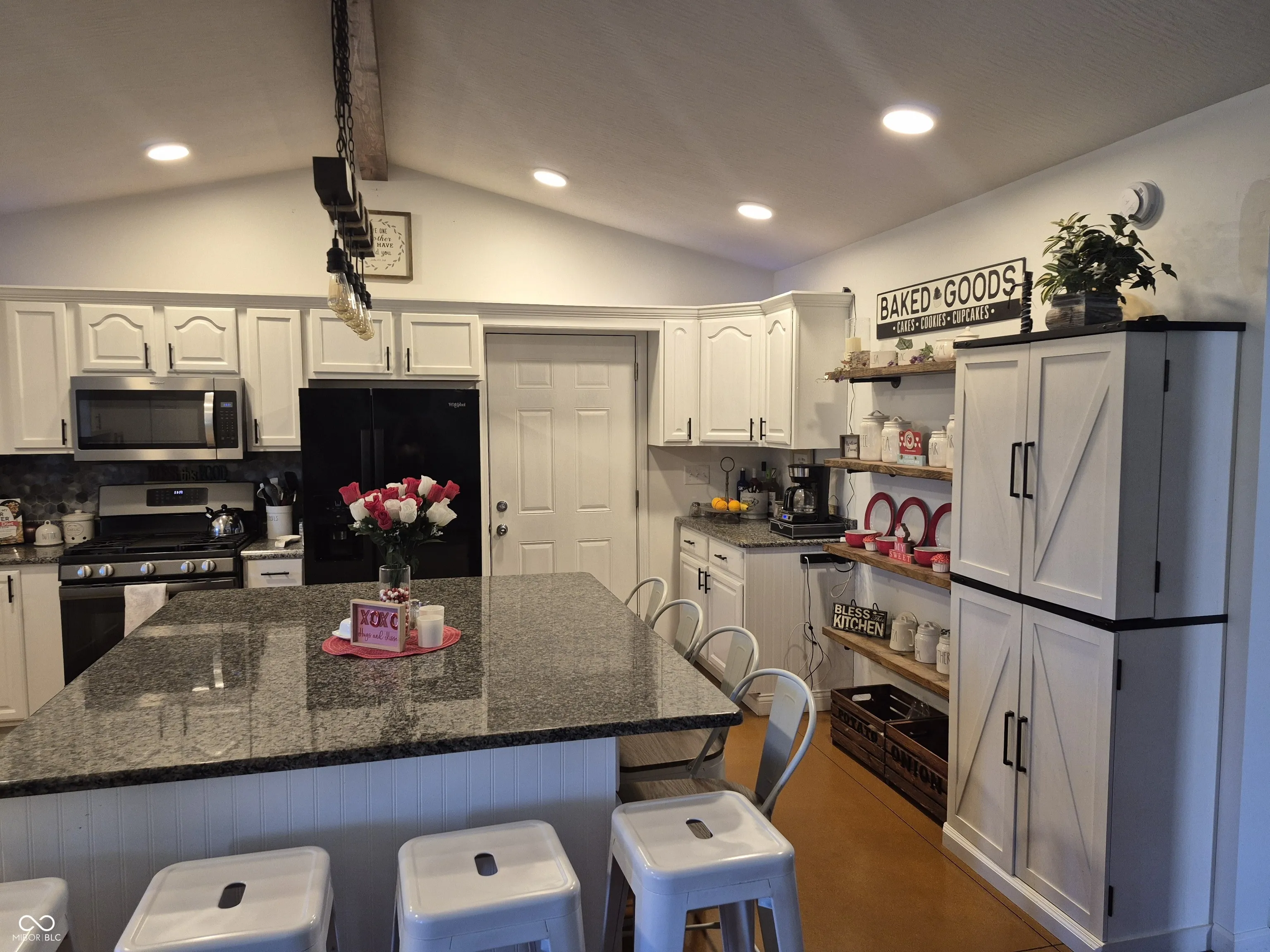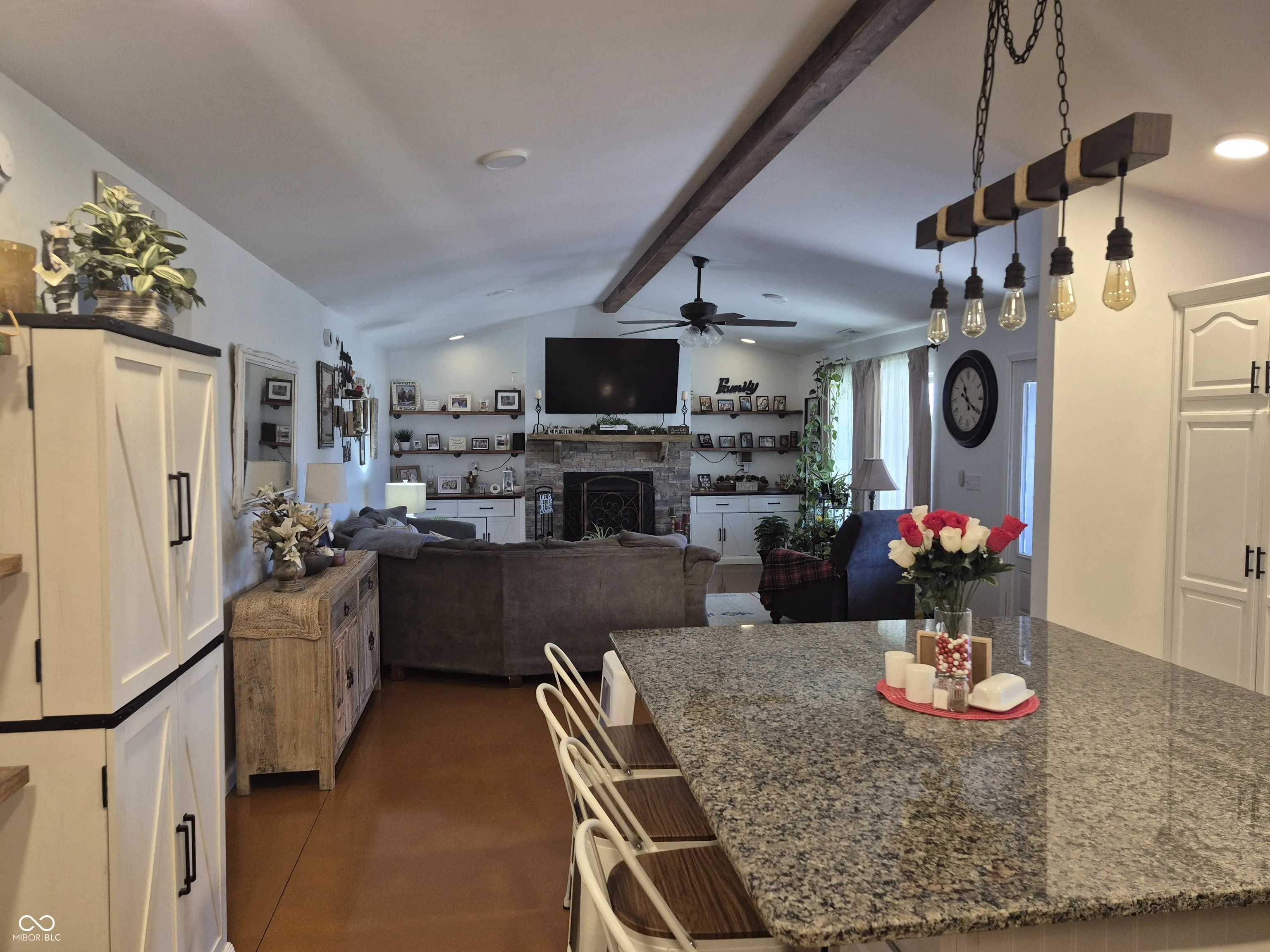 Welcome to your dream barn dominium-where charm meets functionality! This beautifully constructed home is less than 3 years old and offers a perfect blend of modern comforts and rustic appeal. Featuring 2 bedrooms, 2 bonus rooms above the garage with endless possibilities, 2 full bathrooms (main bath has fully tiled shower with a bench to relax and enjoy the waterfall shower head after a long day), along with a cozy fireplace in the living room, this home is made for entertaining and relaxation. A newly finished kitchen with granite countertops, cabinets, cabinets, and more cabinets, along with an oversized island for everyone to sit at. Enjoy some of the many upgrades with the convenience of a tankless water heater, whole-house water softener, newly polished and stained floors, and an oversized 2 car garage (park your RV and vehicle all under one roof) stay warm in the winter with an 80k BTU furnace with its own thermostat, plus a massive 6+ car driveway for guests. The workshop and dedicated tool room provide incredible storage and workspace for hobbies or projects. Step outside to your own slice of peace and serenity: a large covered front porch 36×10, fire pit, lush garden, and beautiful landscaping surrounding a peaceful koi pond, and not to mention you have just under a half-acre to enjoy it all. This unique property offers room to breathe, space to grow, and is a must-see home.