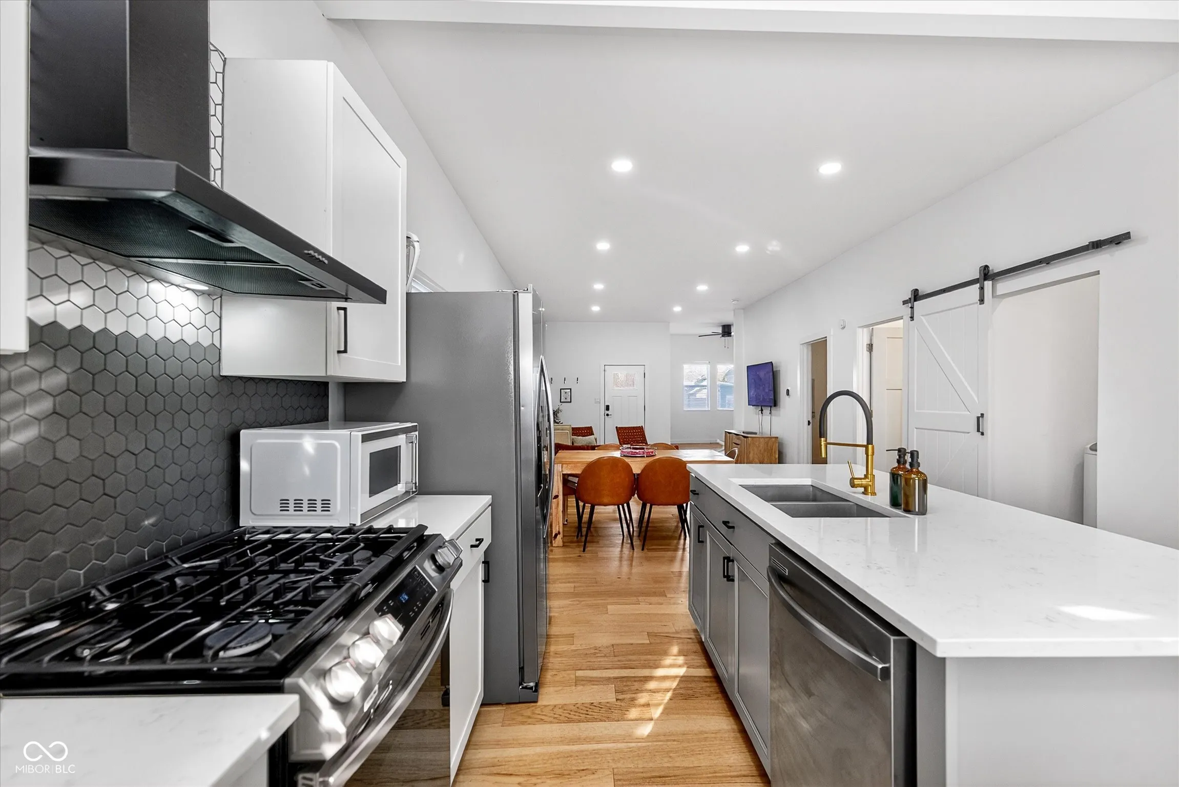 Discover your dream home in the vibrant Bates-Hendricks neighborhood of downtown Indianapolis. This stunning 4 BR / 3 FULL Bath home blends modern luxury with charming character. Main level is open and bright with soaring ceilings, recessed lighting, and wall-to-wall engineered hardwoods. The gourmet kitchen is a chef’s delight, boasting white quartz countertops, top-of-the-line stainless steel appliances (including a gas stove), ample cabinet space, and large center island with seating for casual dining. Flex space and large closet off kitchen is perfect for office or mud room. Main level also features perfect bedroom en suite for guests. Retreat to the private second floor, where the primary suite features a generous walk-in closet, double vanity and large fully tiled walk-in shower. Wonderful private upper deck perfect for your morning coffee and evening sunsets. Upper level is completed with cozy loft area and two additional BR’s w/ full bath. Out back is a convenient one-car garage and parking pad. Newer windows, bathrooms, siding, roof, plumbing, electrical, and HVAC. Basement is clean and offers great storage space. NO HOA or FEES!***House is currently used as a cash-flowing and income-producing short-term rental (STR). All furniture and decor can be included or negotiated with purchase.