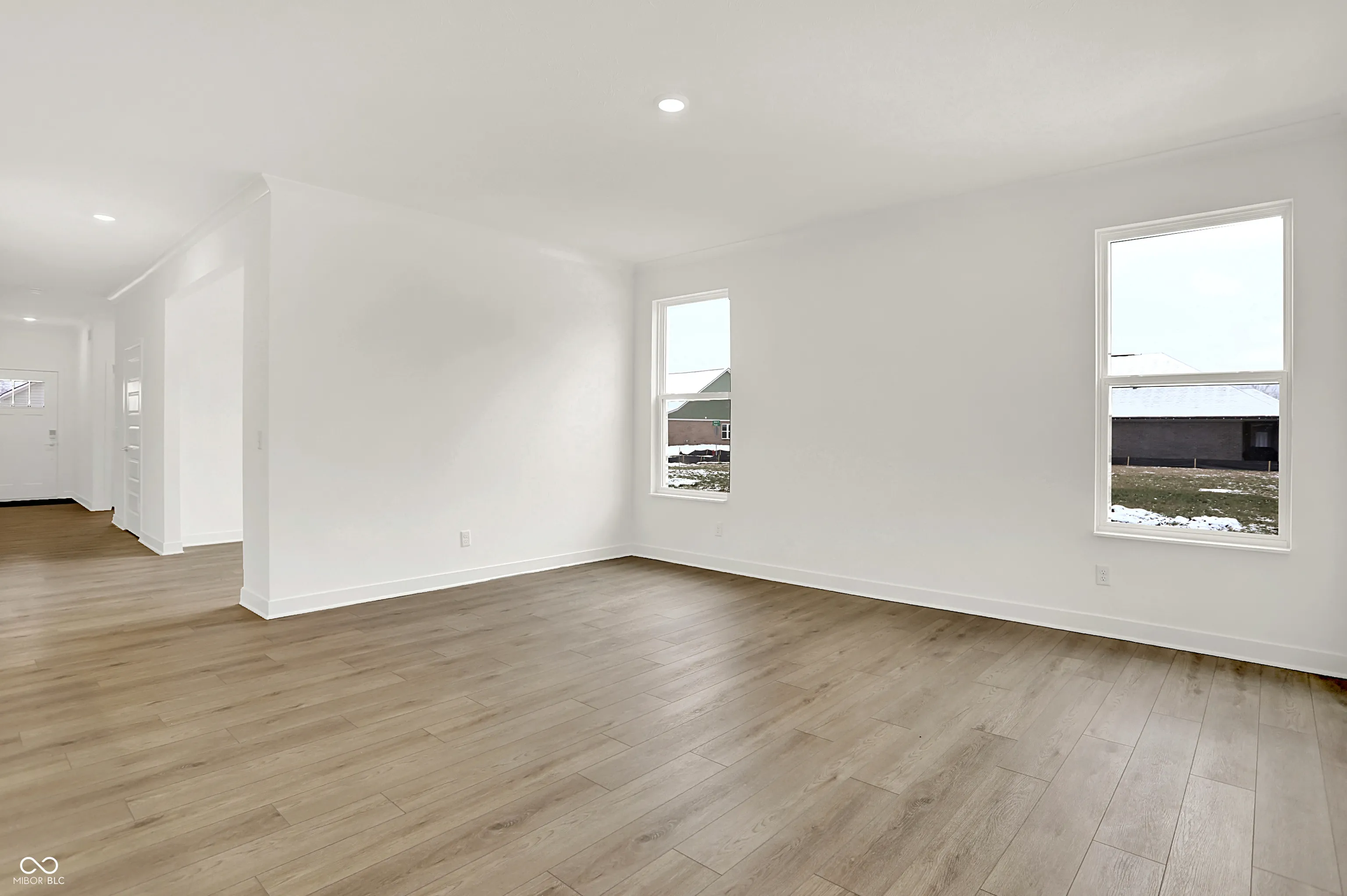 Grey Hawk is a community offering new single-family homes with onsite trails now selling in Plainfield, IN. Grey Hawk residents are less than a mile from a major highway, grocery story and medical facility for everyday essentials. 16 miles away is downtown Indianapolis, home to a vibrant shopping, dining and entertainment scene. A gracious foyer leads into the open-concept layout of this new single-family home, which connects a kitchen featuring a large center island and pantry, a Great Room and a dining room. An adjacent covered patio is the perfect spot to relax and enjoy the outdoors. Flex space is ideal for an office, craft room or even an at-home tasting room. The generously sized owner’s suite boasts a luxurious spa-inspired bathroom and large walk-in closet directly connected to the laundry room for added convenience. A two-car garage with additional storage is included. *Photos/Tour of model may show features not selected in home.