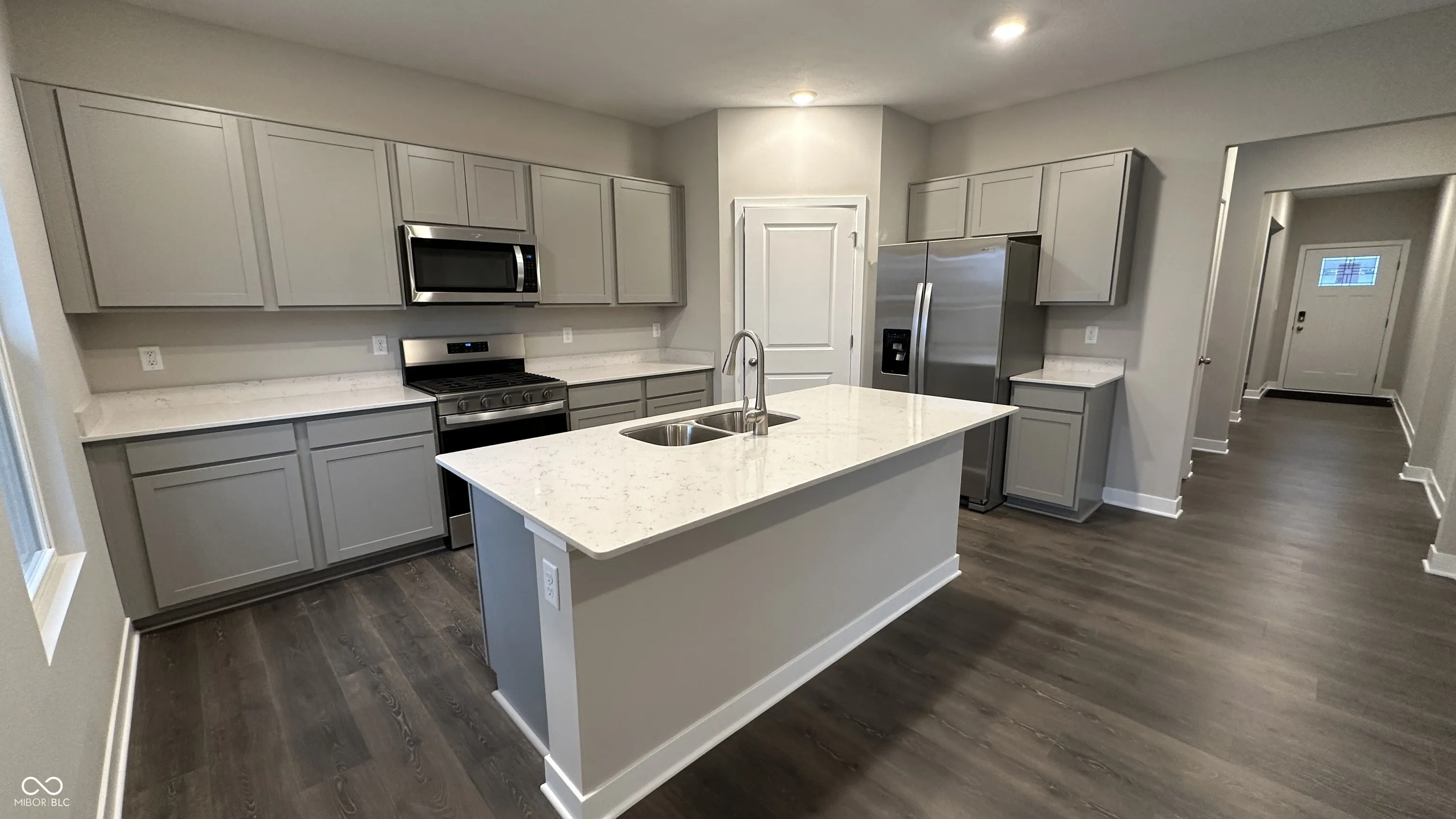 Discover the ideal blend of space and style with the two-story Stamford floor plan, nestled in the charming Fox Creek community of Hendricks County. This inviting 4-bedroom, 2.5-bathroom home spans 2,346 square feet, offering a harmonious balance of comfort and modern design. The open-concept living area seamlessly integrates the kitchen with the living space, creating a perfect setting for both daily life and entertaining. The thoughtfully designed kitchen, located at the rear of the home, boasts a center island with ample seating, sleek gray cabinetry, quartz countertops, stainless steel appliances, and a convenient walk-in pantry, all tailored to make meal preparation a breeze. A well-placed powder room complements the main floor’s great room, while a versatile flex room near the entrance provides the ideal space for work or leisure. Ascend to the upper level and you’ll be welcomed by a generous loft area, along with four bedrooms, two bathrooms, and a convenient laundry area. The primary bedroom delights with a walk-in closet and an en-suite bathroom featuring a double vanity, linen storage, and a spacious shower. Whether used as bedrooms, offices, or versatile bonus rooms, the possibilities are endless. Every home in Fox Creek, including the Stamford, is equipped with America’s Smart Home Technology, enhancing your living experience with a smart video doorbell, a smart Honeywell Thermostat, a smart door lock, a Deako light package, and more. Embrace a lifestyle of convenience and innovation in this exceptional community. Photos are representative of plan and may vary as built.