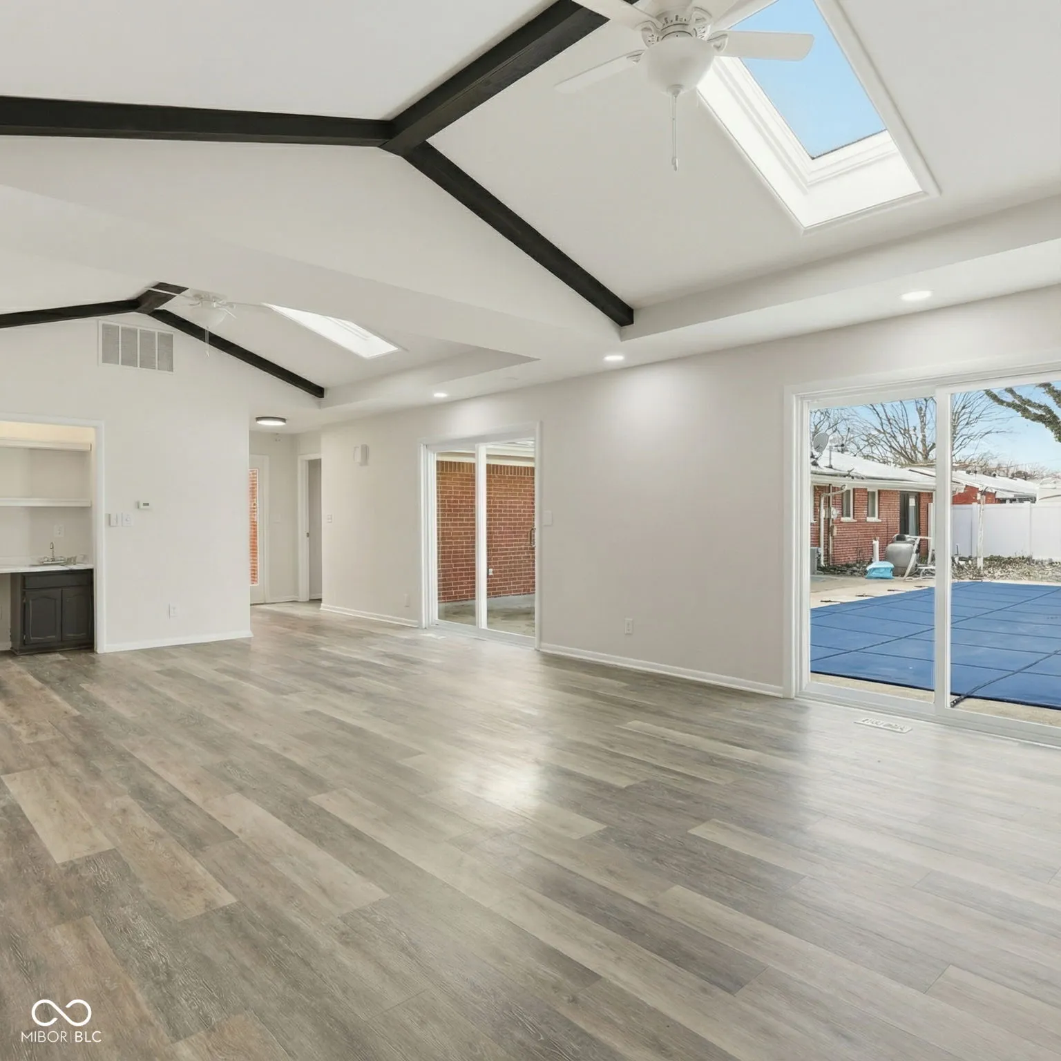 A big sprawling brick ranch with a large fenced yard, inground pool, massive amazing great room and finished basement doesn’t come along often at this price, so this just might be the best gift you’ll ever buy yourself! Many lovely renovations have been completed in the last few months, including finishing out the basement family room, adding a main-floor laundry room, restoring all the surfaces w/ fresh paint, new fixtures and hardware, new appliances, carpet, etc. No small part of that renovation was the pool, which has been refurbished with new coping and a liner AND the newly-reinforced roof, which is warranted to be hail, wind & fungi resistant. Then there is the benefit of the other smart improvements that have been completed in recent years, such as newer windows & the perimeter drain system. Aesthetically, the house is awesome! The huge great room addition is where you’ll spend your time, but all the patio doors to the backyard and pool are fantastic. There are 3 fireplaces, 3 full (renovated) baths, and a lot of classic mid-century details that make houses of this era so retro fun (Bedford stone fireplace surround, a slate foyer, etc). This is one to put at the top of your list! Especially with the new price!!!!