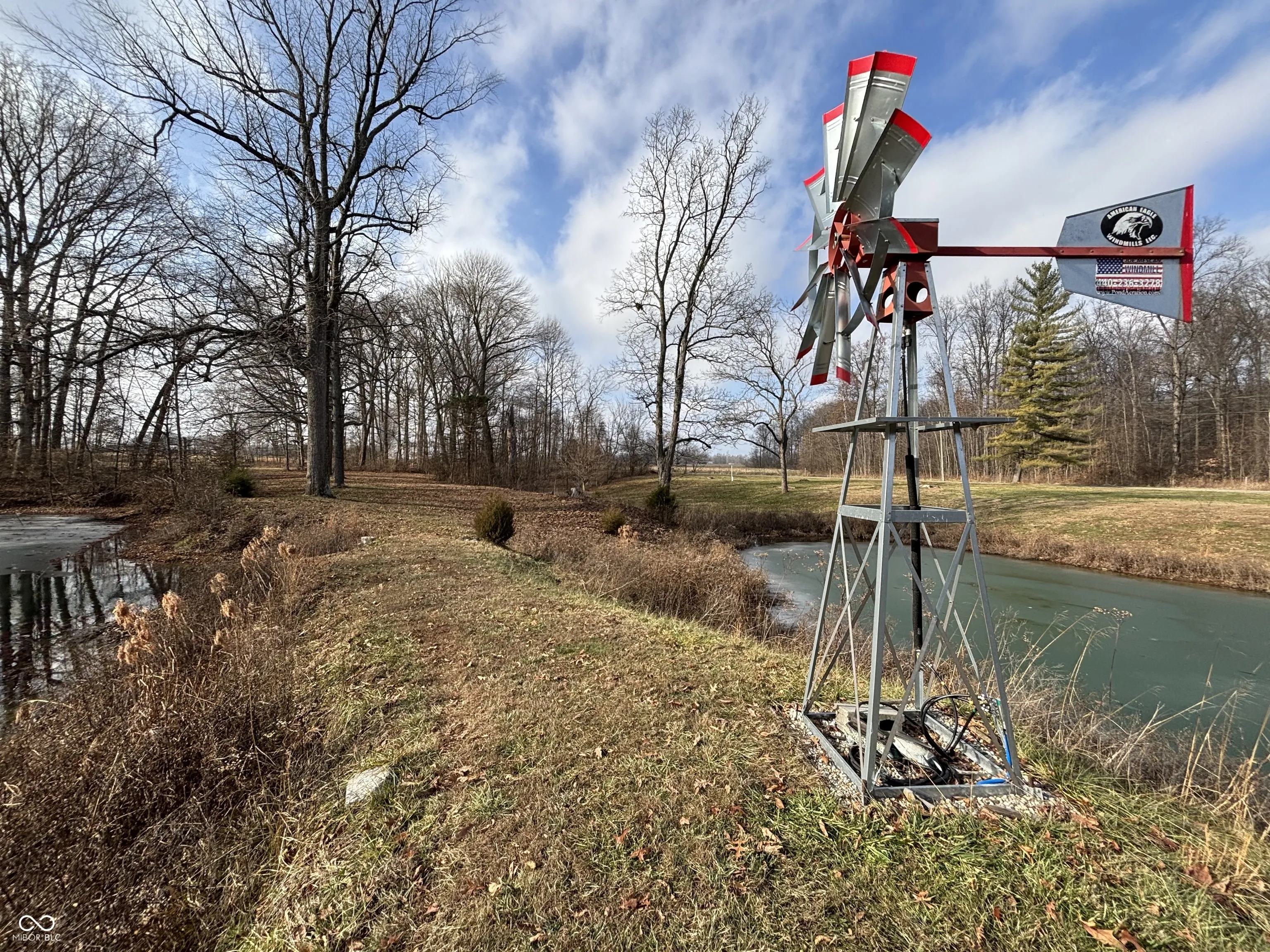 Enjoy easy rural living in this 12+ acre property with home, pole barn, and two aerated ponds. The 2950 SF Home was built in 2018. The 2500 SF pole barn outbuilding was built in 2020. Home includes 3BR and 3BA, and features tons of windows for natural light and picturesque rural views. Open-concept Great Room, Kitchen, Dining Area features Cathedral ceilings, beautiful hardwood floors, and an EPA high efficiency wood burning fireplace. Kitchen has a spacious pantry, soft-close cabinets, and numerous other touches. Home also features a separate formal Dining Room, Private Office with French Doors, a Master Suite, a guest bedroom with its own bath, a 3rd bedroom, and a 3rd full bath. The Master Suite has huge double closets and a roomy bath with double sinks. Stair access goes to an additional 500-sf upstairs, currently used as office/studio and storage space. Aeration lines run into both ponds, with air supplied by electric pump or the 13′ windmill. Out-building is a Graber Post Building (40′ x 64′) w/ high strength poured concrete and spray foam insulation, a 10′ x 32′ covered porch, and two slide doors (12′ x 12′). A sectioned-off back part of the building is heated and cooled to include a Workshop w/ 6′ x 8′ interior roll up door, a Craft Room with storage, and a full bath with shower. See Property Profile in Downloads for details.