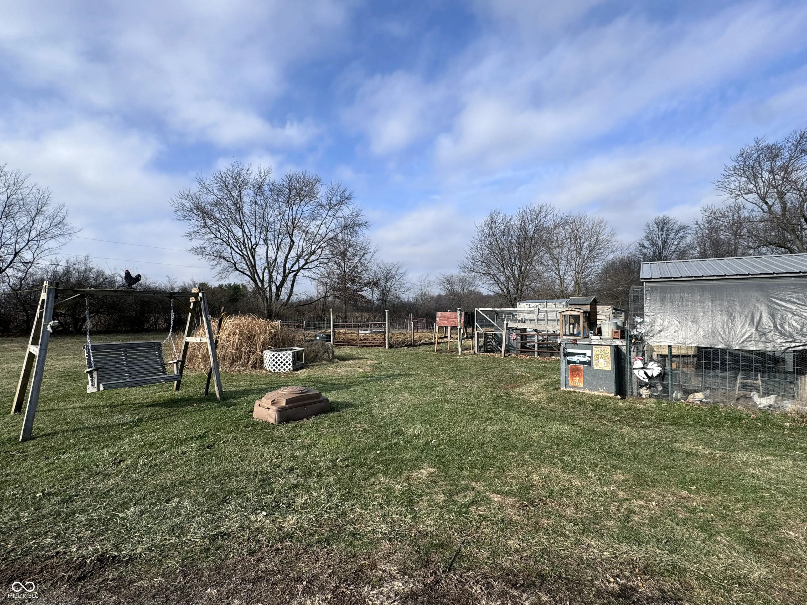 Set on 8 scenic acres at 5408 E Centennial Ave in Muncie, this 1926 home blends rural tranquility with city convenience. The living room features exposed beams and a wood ceiling for unique character, while the kitchen boasts shaker cabinets, ample storage, and a stylish backsplash. Three bedrooms, including one with crown molding, and a bathroom with a double vanity offer comfort and style. A full basement provides extra storage. Step onto the patio or bridge to take in panoramic views of rolling pastures, wooded areas, and open sky-perfect for morning coffee or sunsets. Barns, a shed, and open land make this property ideal for hobby farming, raising animals, or simply enjoying wide-open space – a rare chance to own acreage, character, and comfort in one remarkable setting. Schedule your private showing today.