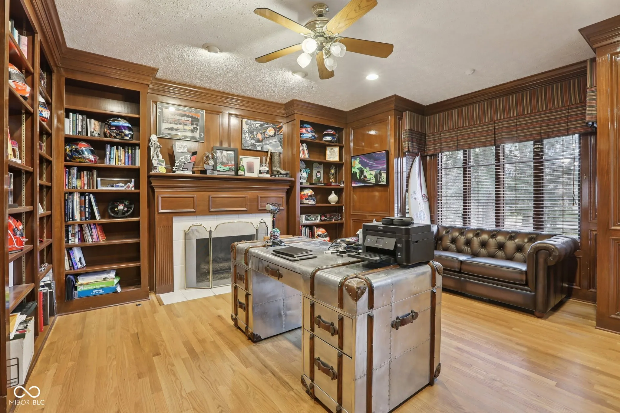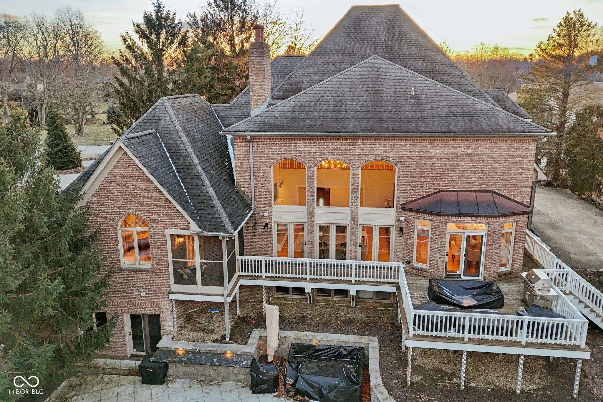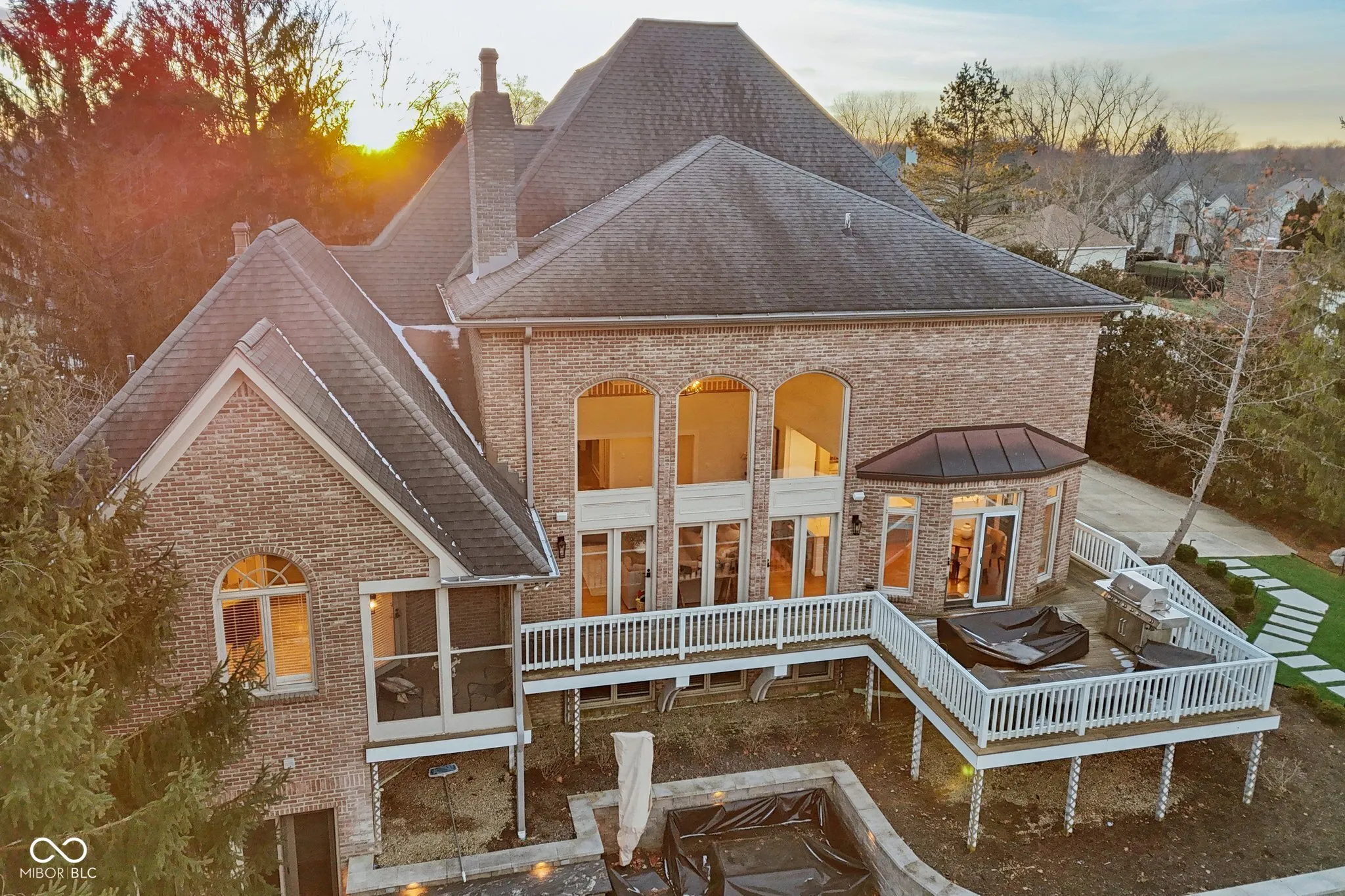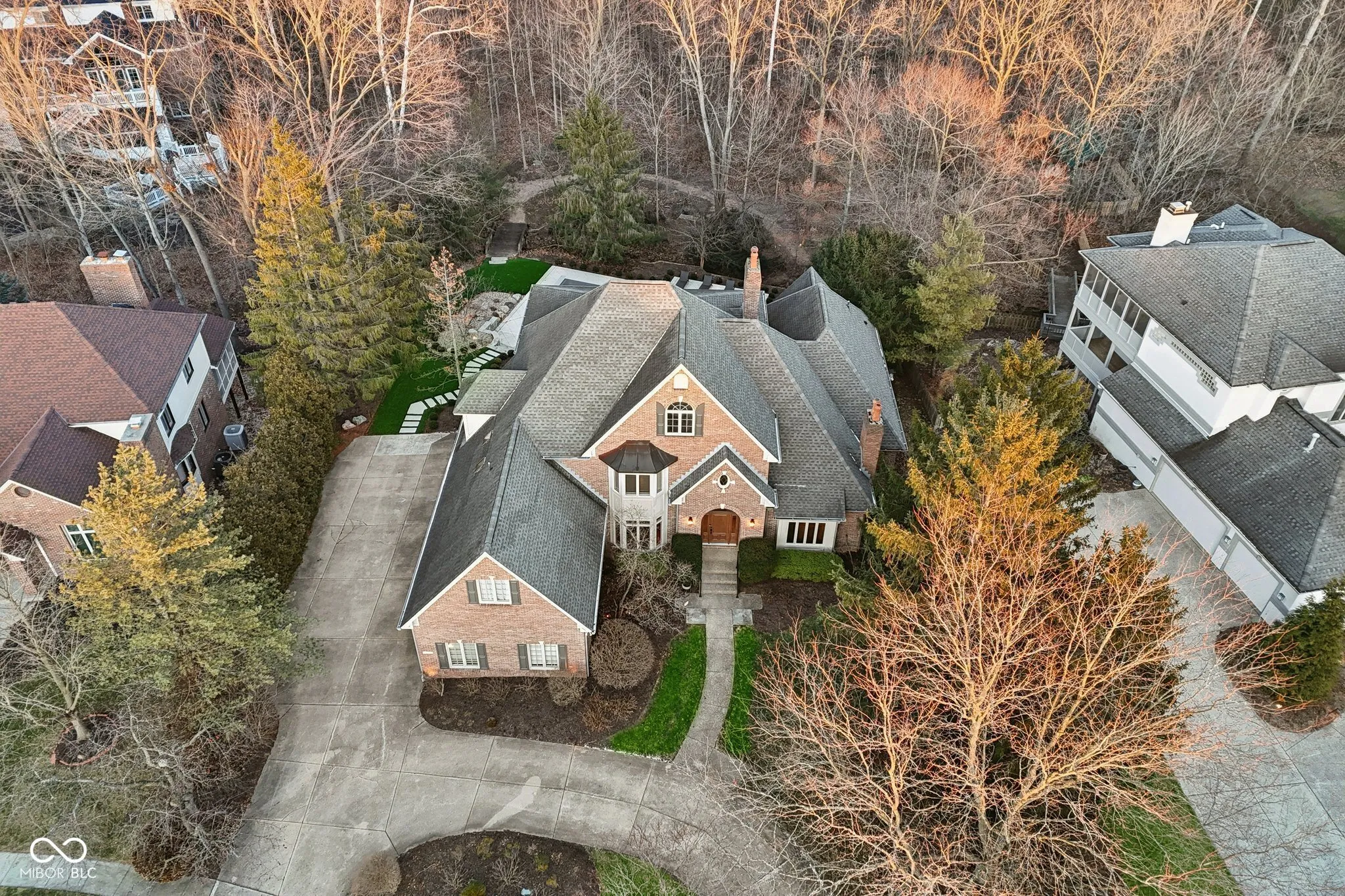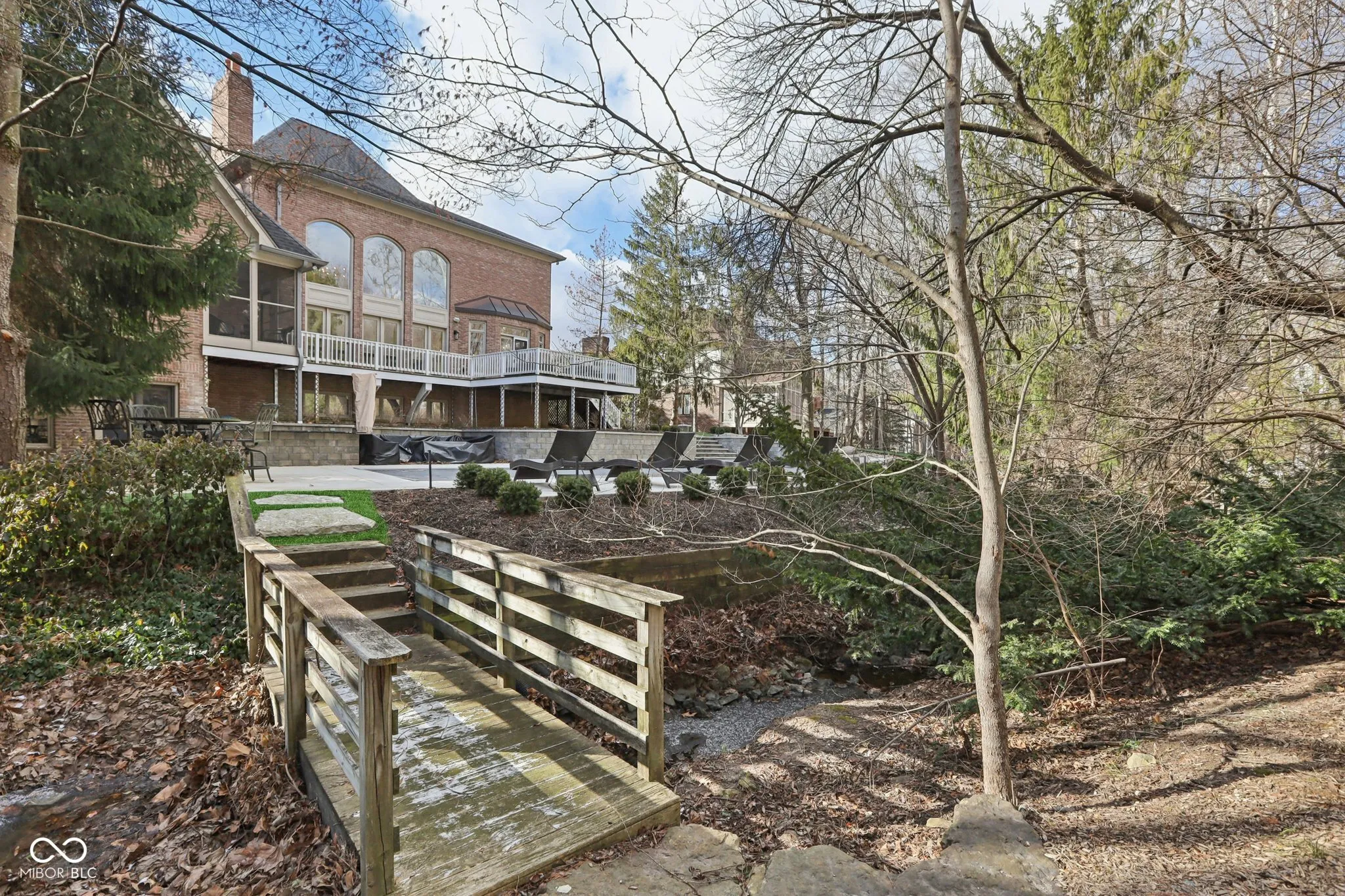 This exceptional luxury residence offers a rare blend of refined living and resort-style amenities, all set on a breathtakingly private, 1.57 Acre tree-lined homesite. The backyard is a true retreat, featuring a newly renovated inground pool area that includes new concrete patio, new pool liner, new electric cover, enhanced landscaping and new retaining walls. The outdoor serenity continues with an outdoor firepit just beyond the meandering creek accessed with a charming walk-over bridge. Inside, the home is equally impressive. The finished walk-out basement is designed for entertaining and relaxation, showcasing a full bar with cool copper hammered sink and equipped with everything you need like a kegerator, ice machine, dishwasher and mini-fridge. There is recreation space on the other side of the basement 2-sided fireplace plus a killer home theatre with ornate coffered ceiling! There is plenty of storage to go along with a bonus room (currently fitness area) and a full bath. The main level offers a serene primary suite with two walk-in closets, dual vanities, and access to a private screened-in porch. An elegant den/library features a fireplace, built-in bookshelves, and glass French doors, while the stunning two-story great room captivates with custom built-ins, a fireplace, dramatic coffered ceiling, and expansive windows overlooking the peaceful backyard. The updated kitchen is both stylish and functional with quartz countertops, center island, stainless steel appliances, breakfast bar, and sun-filled breakfast room. A butler’s pantry with wet bar, wine fridge, and abundant cabinetry seamlessly connects the kitchen to the formal dining room. Additional highlights include a spacious finished three-car garage with tall ceilings, utility tub and workshop area! There is abundant storage throughout, a NEW HVAC system, and NEW water heaters. This remarkable home delivers luxury, comfort, and privacy in every detail. Just a short drive to the airport & downtown Indy