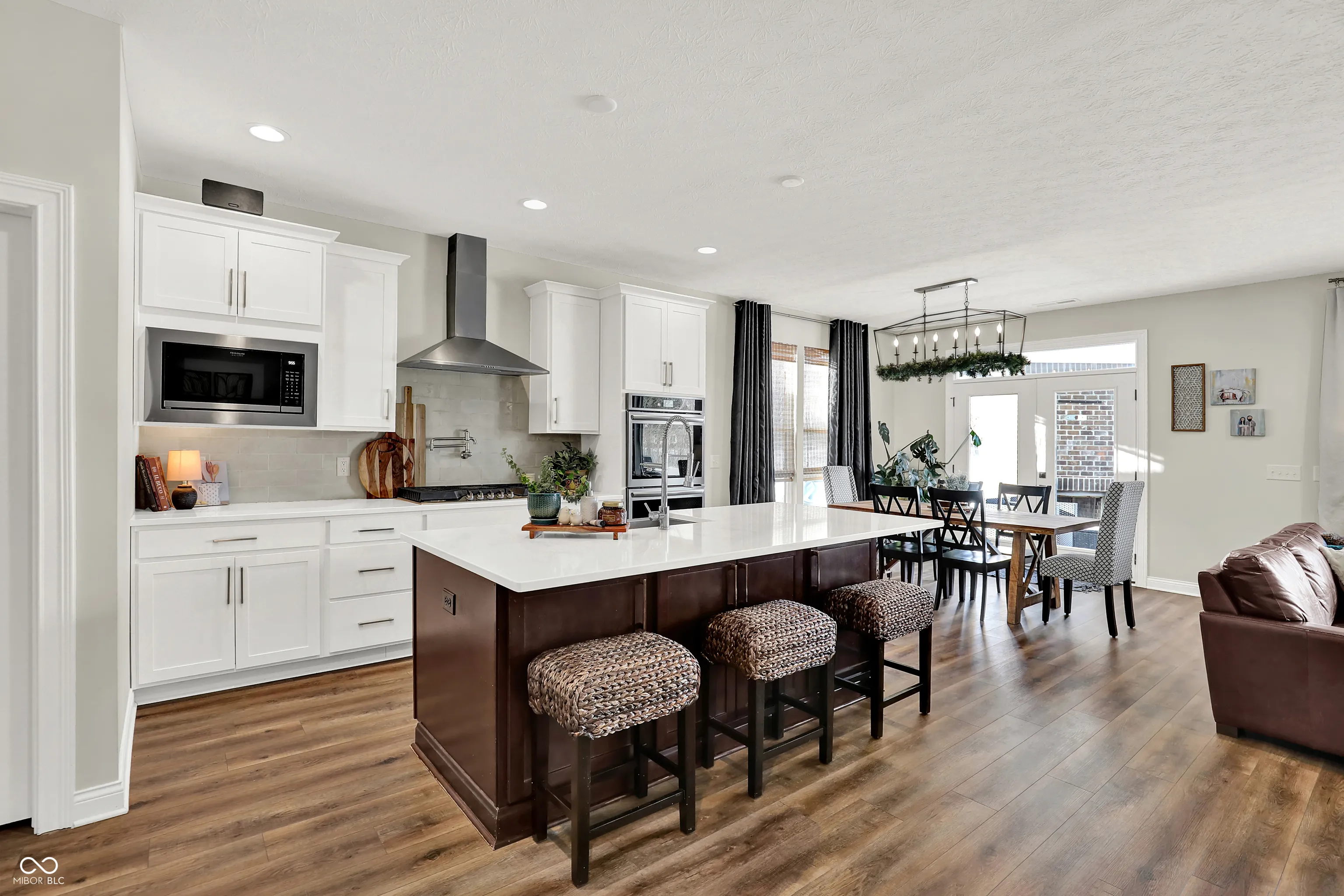 Welcome home to this truly rare 7-acre estate featuring two homes and endless possibilities! The main residence is a stunning custom ranch built in 2023 with 4 bedrooms & 3.5 baths, thoughtfully designed to capture breathtaking sunsets and expansive views through picturesque windows. A dedicated office/library provides the perfect space for working from home or quiet retreat. At the heart of the home is a chef’s gourmet kitchen featuring a gas range with pot filler, built-in double ovens, & generous workspace, ideal for everyday living & entertaining. The primary suite offers serene views of the property, a spacious ensuite bath, & a large walk-in closet with direct access to the laundry room. Two bedrooms share a Jack-&-Jill bath, while a private in-law or flex suite includes its own separate entrance. Outdoor living is exceptional with a covered patio featuring a wood-burning fireplace & TV mount overlooking the acreage, a large uncovered patio, & a welcoming covered front porch. The second home is a 3-bedroom, 1.5-bath brick ranch with both a covered front porch and covered back deck-ideal for extended family, rental income, or guest use. The land has been thoughtfully enhanced with numerous fruit trees planted over the past five years & several premium raised garden beds ready for use. Perfect for a family compound, homestead, farm, or investment, properties offering this level of acreage, flexibility, and modern construction are rarely available. Each residence is independently equipped with its own private utilities, well, and septic, providing added value & the option to easily parcel the properties separately. Listing details, square footage, and room counts reflect both homes combined (Main house 2538sq ft, brick house 1440sq ft). Don’t miss out on this special property!