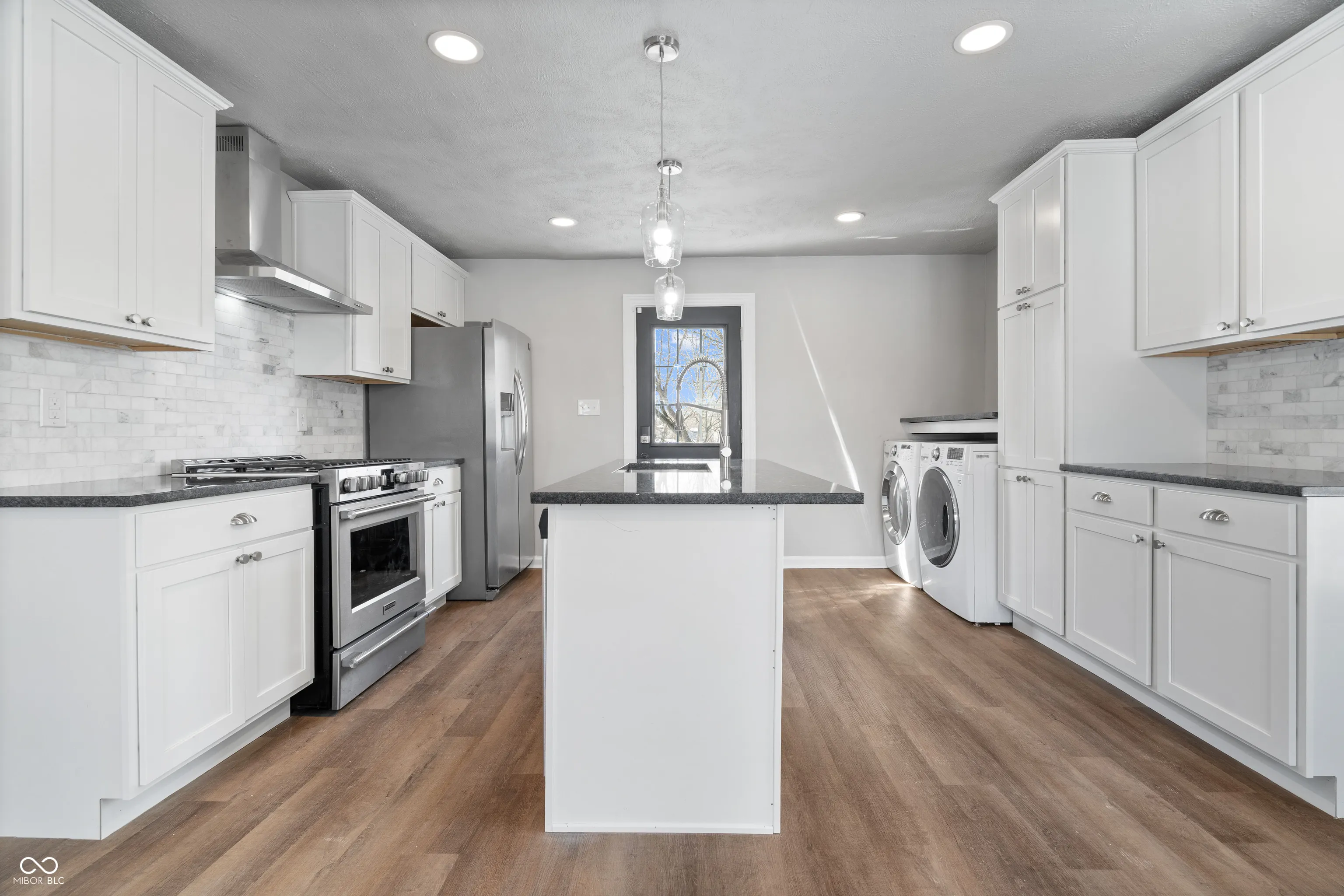 This showstopper will give you just what you need, all on one level. Here, you will find a nicely renovated 2 bedroom home with open living spaces. The new kitchen provides lots of soft-close cabinetry with crown molding, a large center island, pendant lighting, a deep basin sink and motion sensor faucet. The kitchen also features a tall pantry cabinet, granite countertops, tile backsplash, and stainless steel appliances. Front load washer and dryer included with a granite top for additional counter space. New roof, windows, plumbing, water heater, commercial grade HVAC system, flooring, and freshly painted inside and out. The wood deck overlooks the big backyard, great for pets and entertaining. Near the new 38th Street bus line.