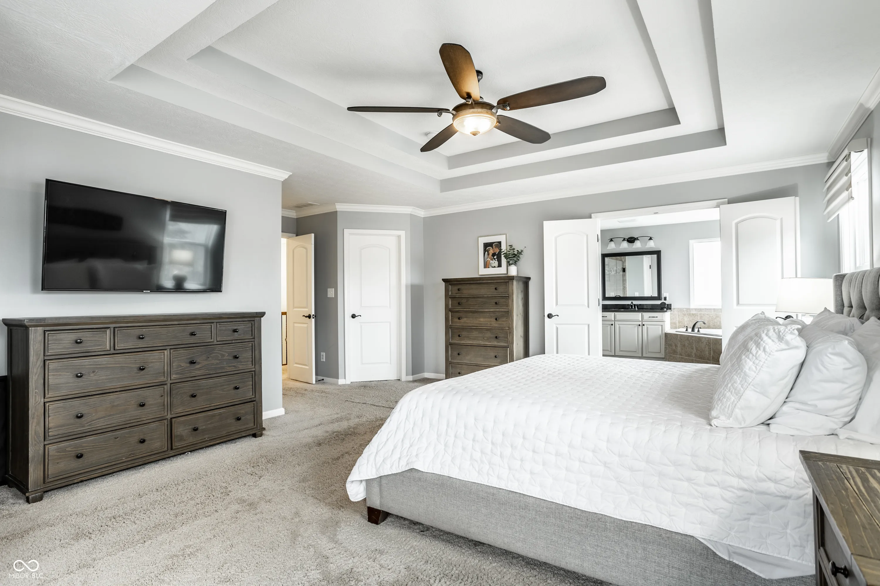 Nestled within the pocket community of Abney Glen in Carmel, this spacious two-story residence is ideally positioned on a quiet cul-de-sac in one of the area’s most desirable neighborhoods. Set on a generous lot of over half an acre, the property features a fully fenced rear yard and a charming Craftsman-style facade, highlighted by a welcoming front porch. Inside, the main level offers a gracious entry that opens to a refined office and formal dining room, both enhanced by plantation shutters and thoughtfully curated details. The rear of the home is lined with expansive windows, flooding the interior with natural light and creating bright, inviting living spaces. The kitchen is beautifully appointed for both everyday living and entertaining, featuring an oversized center island with breakfast bar, a large sink, and crisp white Cambria quartz countertops. Open sightlines to the breakfast room and family room provide a seamless and functional flow, while a sunroom adds additional space for relaxation and gatherings. The backyard serves as a private retreat, complete with a spacious covered patio featuring a built-in grill, bar area, refrigerator, gas fireplace, and television. A stone patio extends the outdoor living space, offering even more opportunities to enjoy the serene setting. The lower level is partially finished and includes an impressive theater room with a stylish wet bar. Upstairs, the primary suite is a true sanctuary, boasting an ensuite bath with an oversized shower, soaking tub, and dual vanities. Three additional bedrooms, a convenient laundry room, and an expansive bonus room complete the upper level. With its generous layout, refined finishes, and exceptional indoor and outdoor living spaces, this Carmel home offers so much to love.