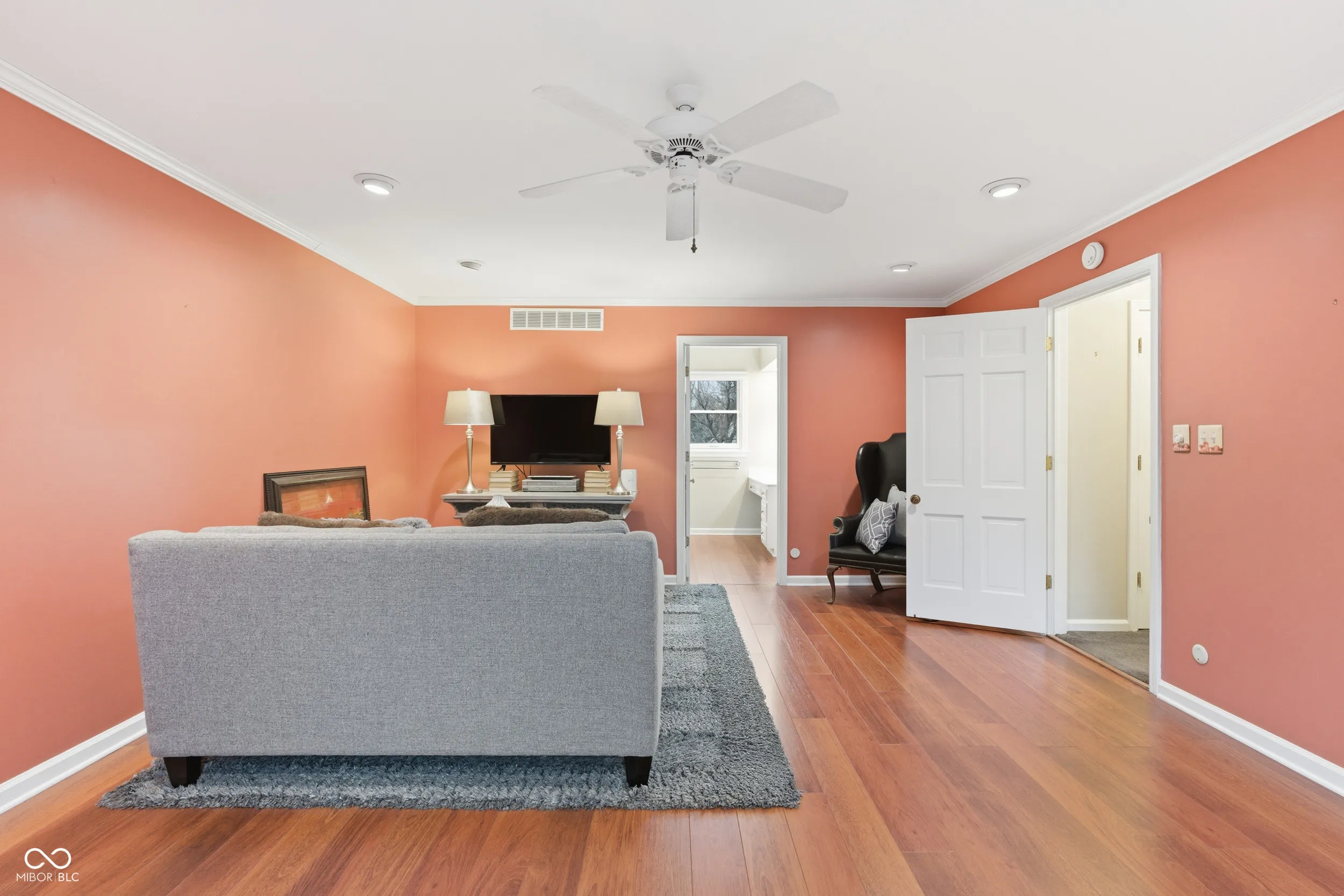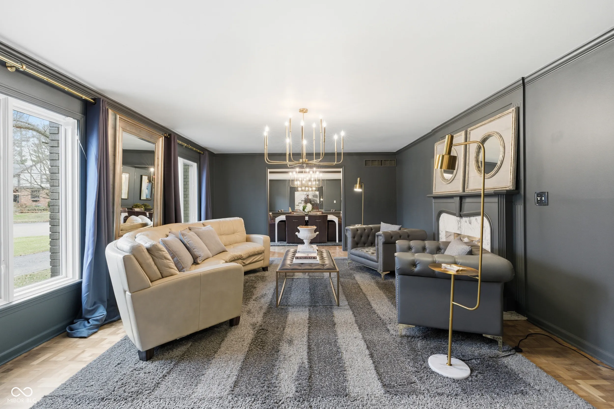 Nestled at 9025 Kirkham CT, INDIANAPOLIS, IN, this attractive single-family residence awaits. The living room provides an inviting atmosphere, featuring a fireplace that serves as a focal point for gatherings, a vaulted ceiling that enhances the sense of spaciousness, a skylight that bathes the room in natural light, and wood wall features complemented by crown molding. The kitchen offers both beauty and functionality with its stone countertops and shaker cabinets providing ample storage, a kitchen peninsula offering a casual dining spot or extra workspace, a stylish backsplash, and a stovetop perfect for culinary creations. The bedrooms provide private retreats, each designed for comfort and relaxation, with the added convenience of an ensuite bathroom. The bathrooms are designed with a double vanity and walk in shower. This property boasts a circular driveway, a laundry room, a sunroom, and a patio, offering spaces for relaxation and practical living. With six bedrooms and five and a half bathrooms offers a blend of comfort and style that is ready to welcome you home.